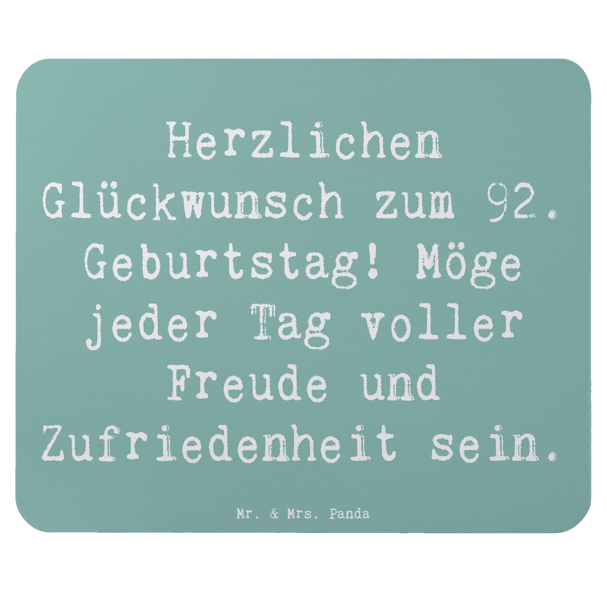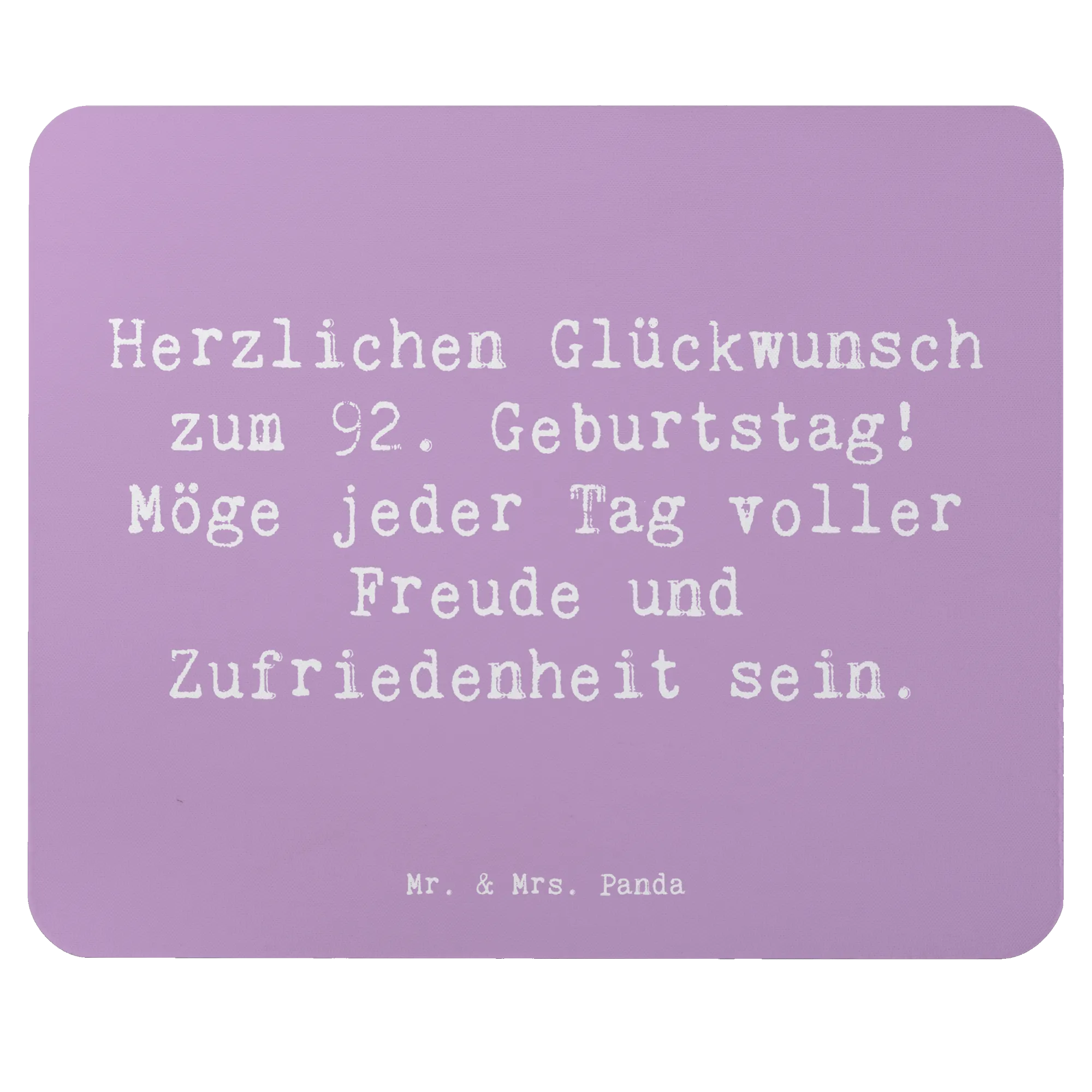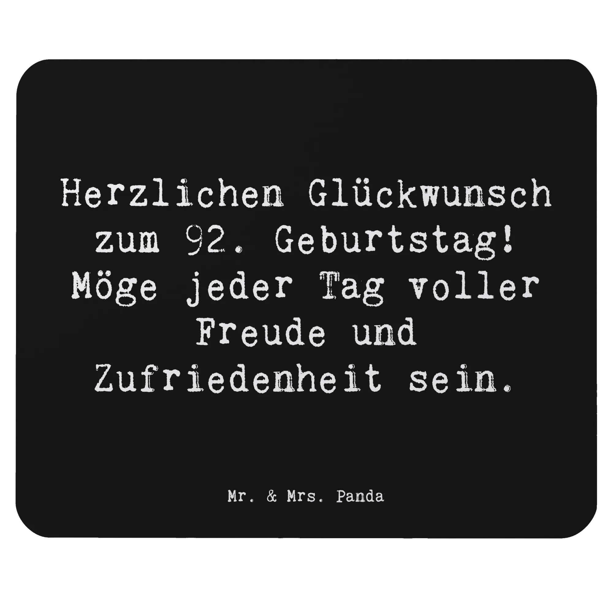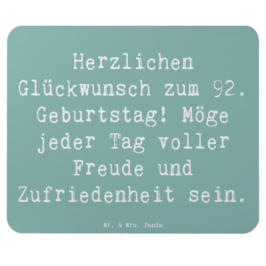 Suchst du nach dem perfekten Geschenk zum 92. Geburtstag eines lieben Menschen? Dann ist unser Mauspad "Herzlichen Glückwunsch zum 92. Geburtstag! Möge jeder Tag voller Freude und Zufriedenheit sein" von Mr. & Mrs. Panda genau das Richtige!