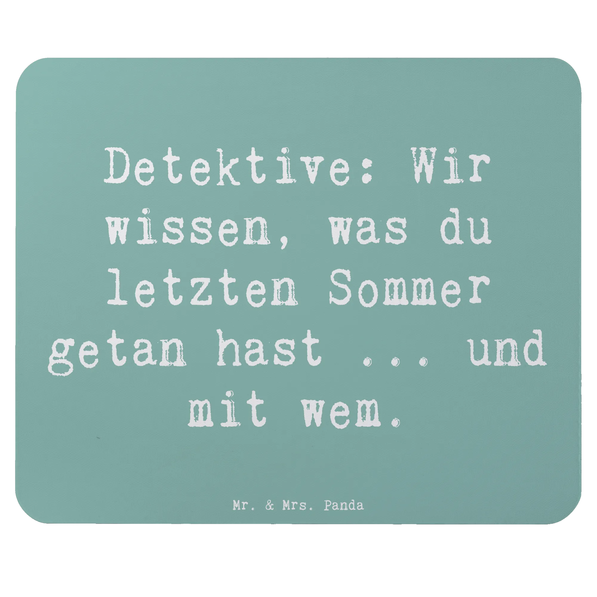 Du bist auf der Suche nach dem perfekten Geschenk für den passionierten Detektiv oder einfach für jemand, der beim Arbeiten ein wenig Spaß vertragen kann? Dann ist das Mauspad "Detektiv" von Mr. & Mrs. Panda genau das Richtige! Mit einem humorvollen Spruch wie "Detektive: Wir wissen, was du letzten Sommer getan hast ... und mit wem." bringt es Freude in jeden Arbeitsalltag.