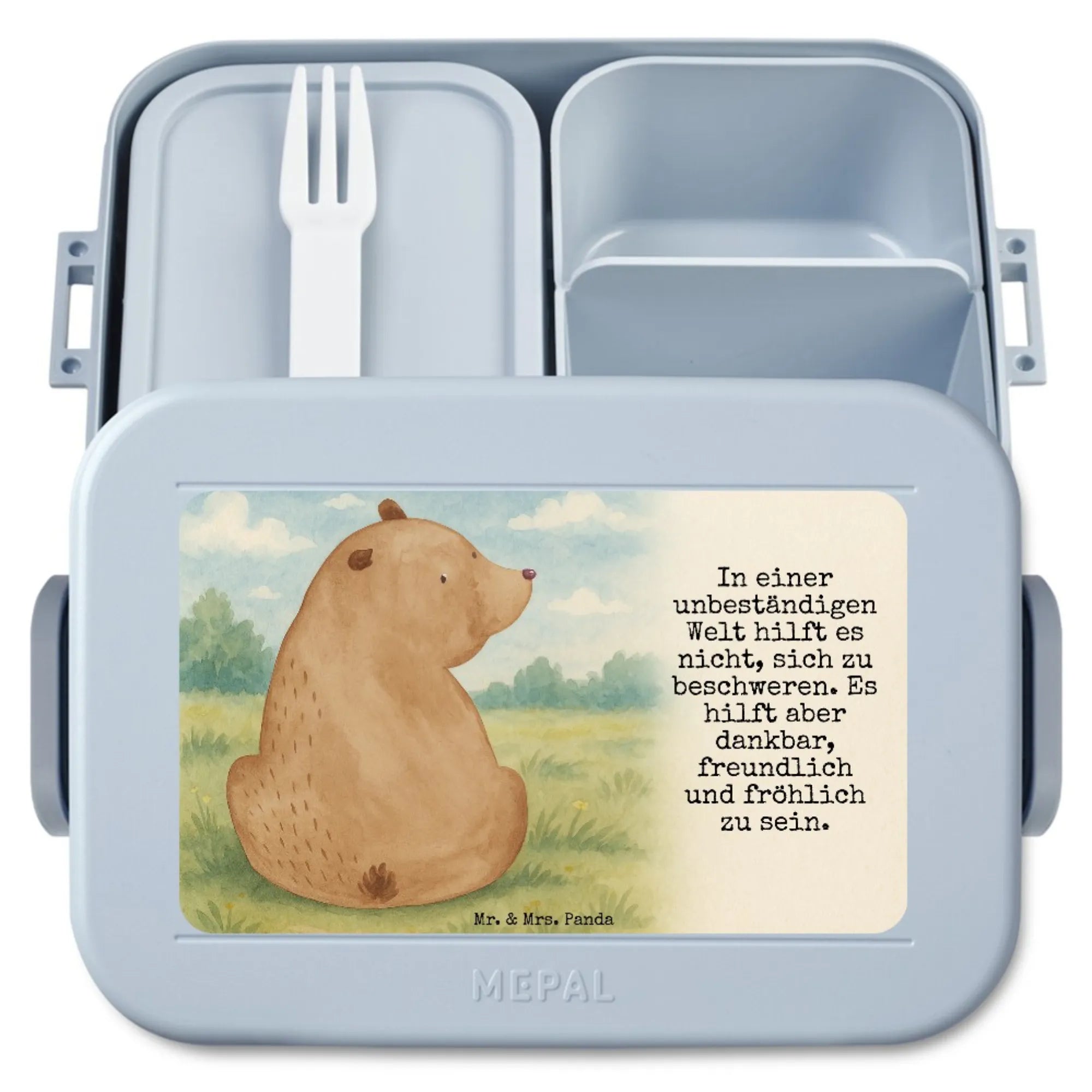 MEPAL Bentobox Bär Schulterblick Design - mit Spruch - Blau Pastell