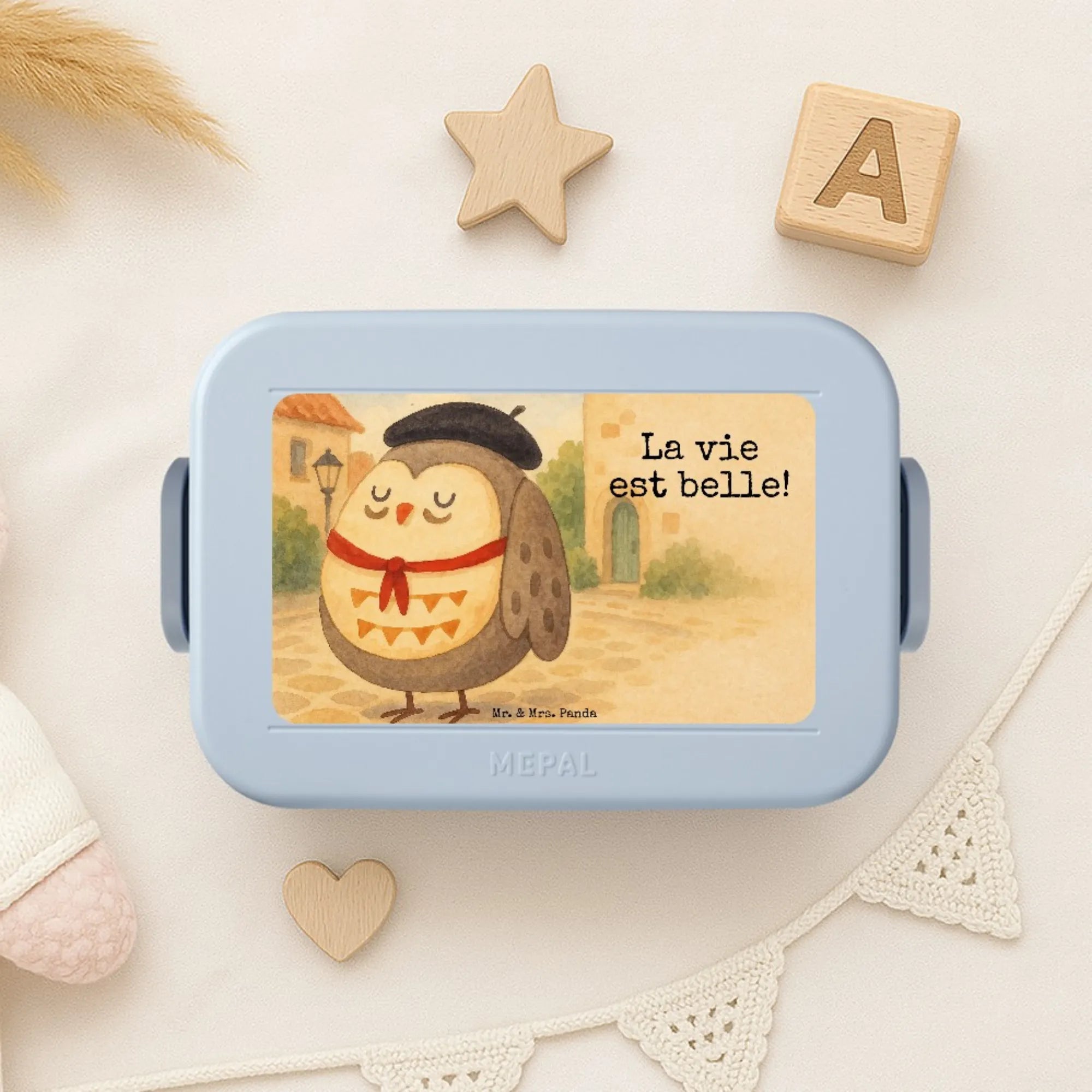 MEPAL Bentobox Eule Frankreich Design - mit Spruch - Blau Pastell