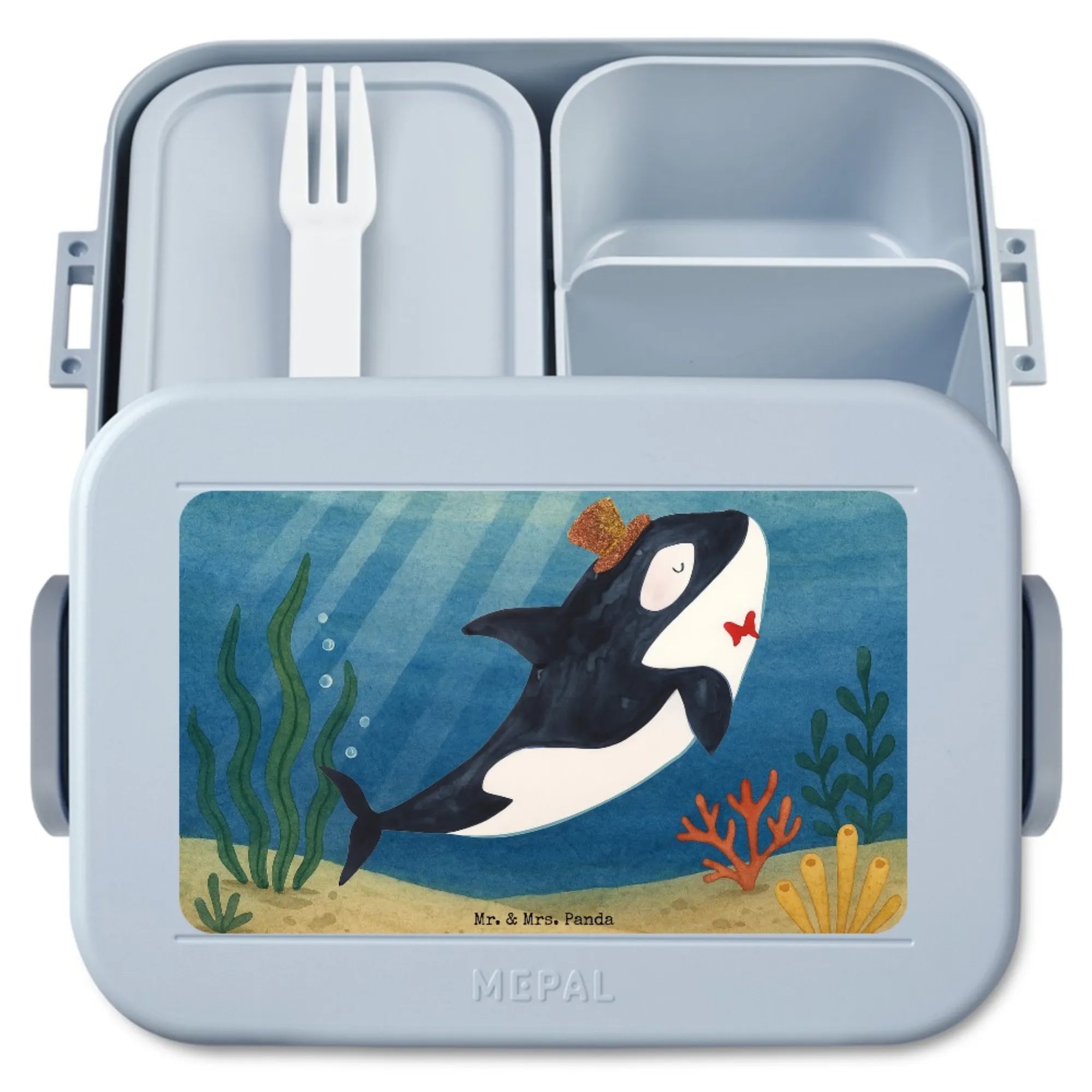 MEPAL Bentobox Orca Zylinder Design - mit Spruch - Blau Pastell