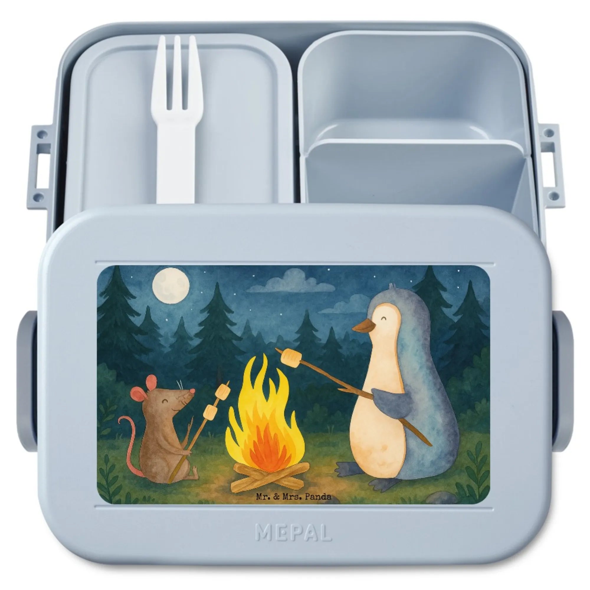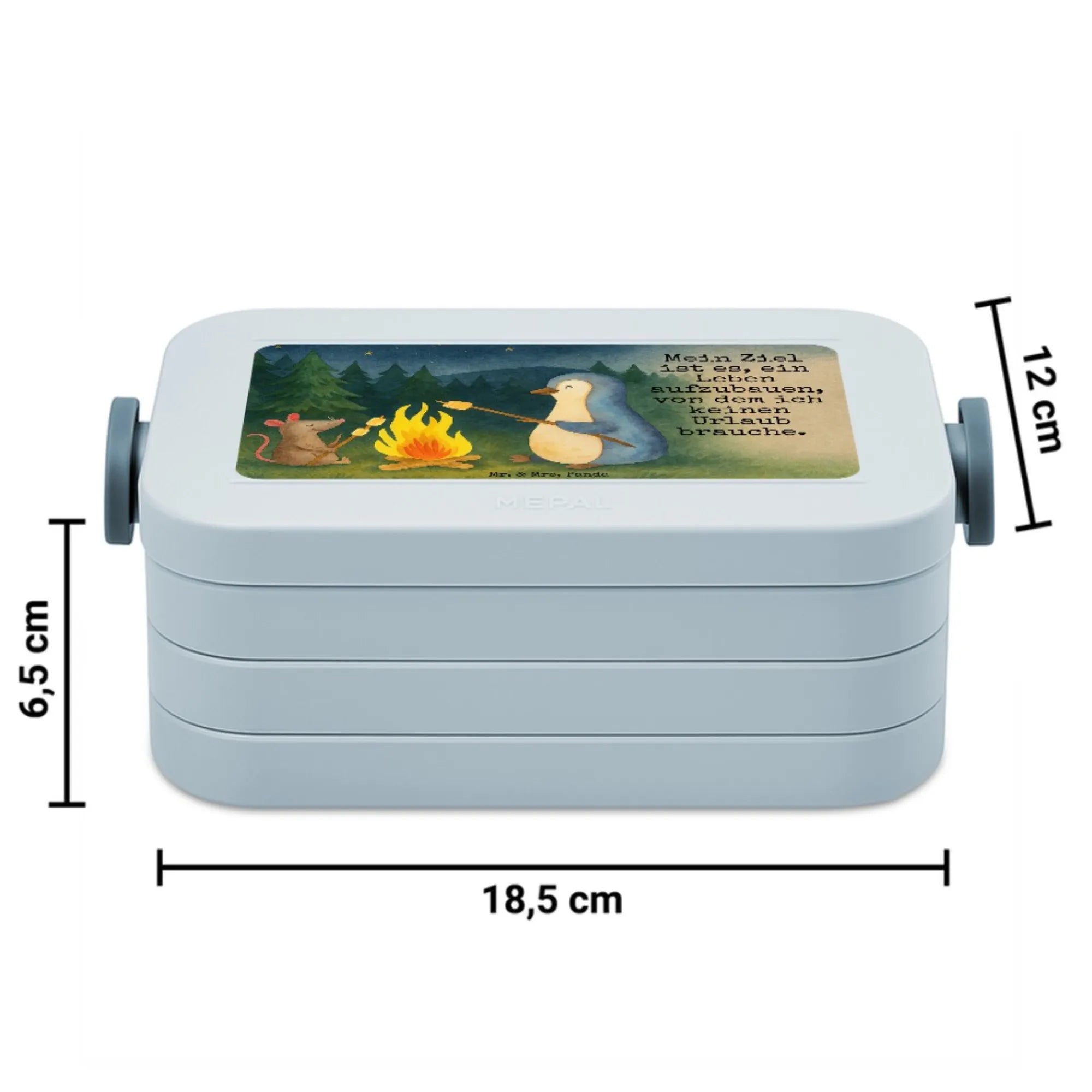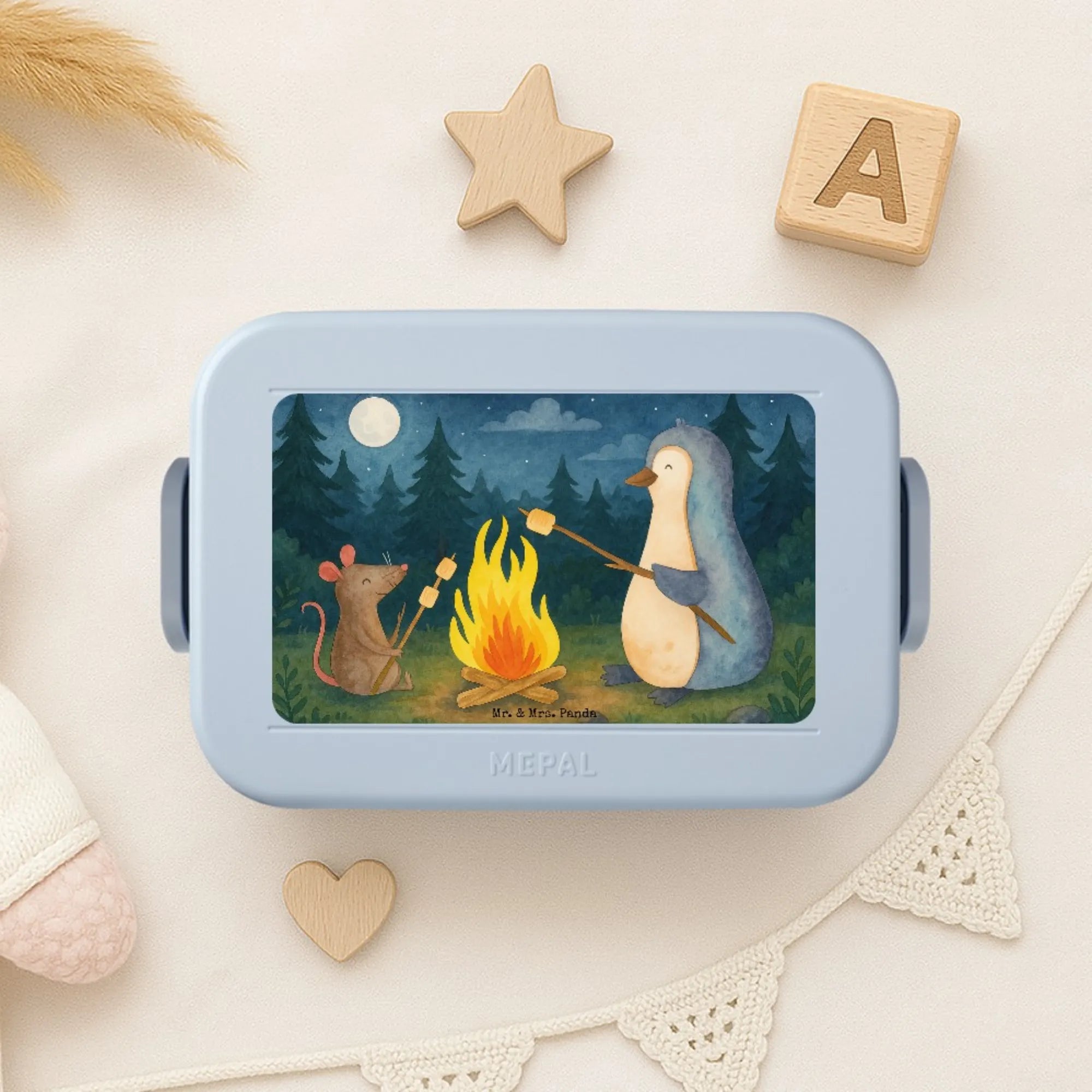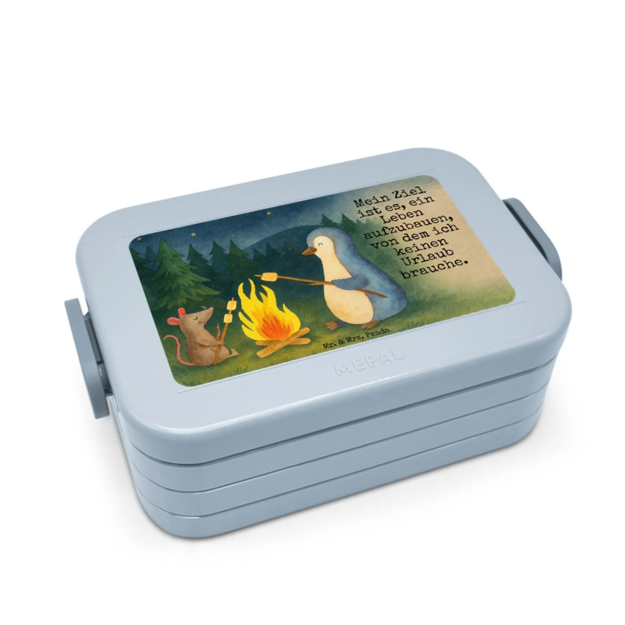 MEPAL Bentobox Pinguin Lagerfeuer Design - mit Spruch - Blau Pastell