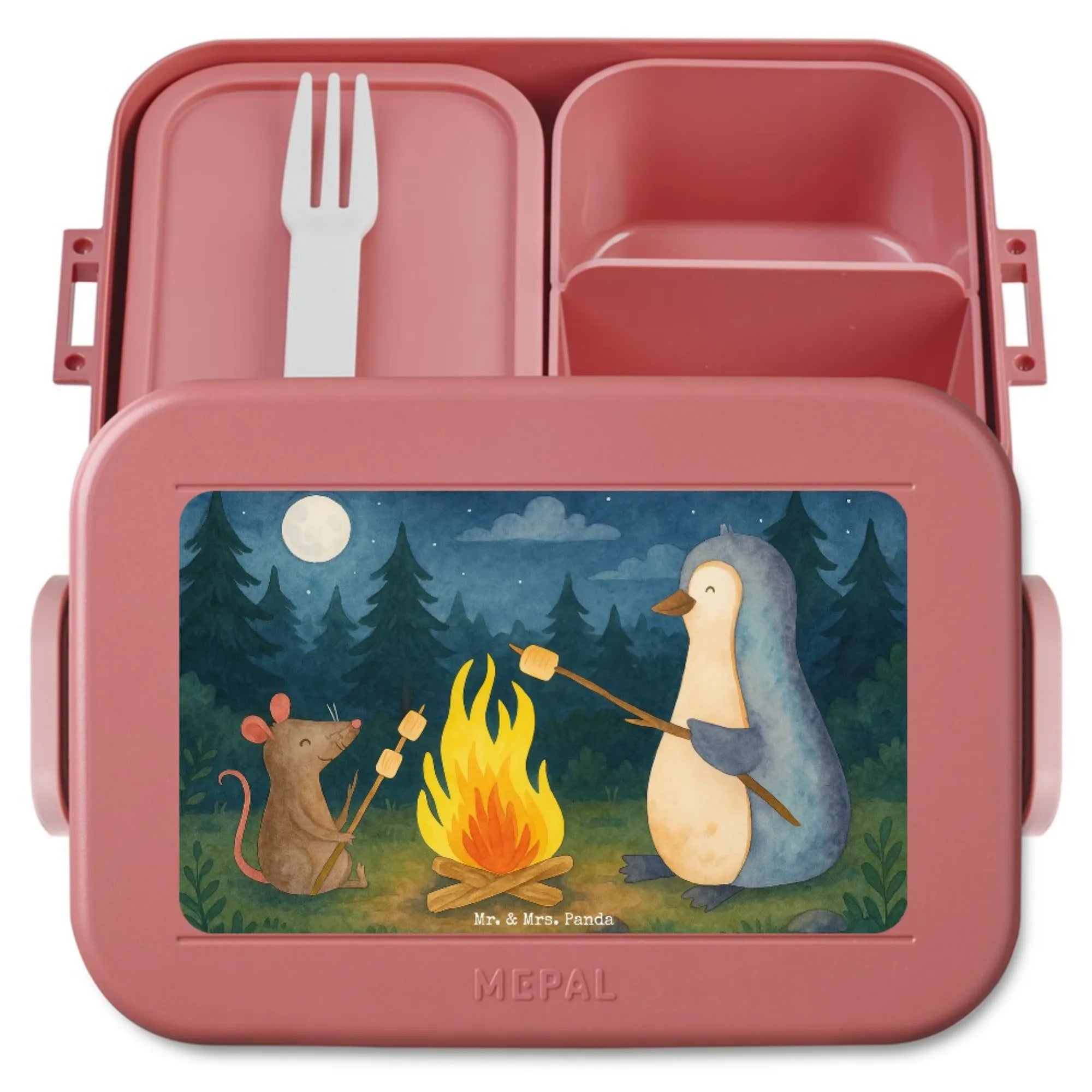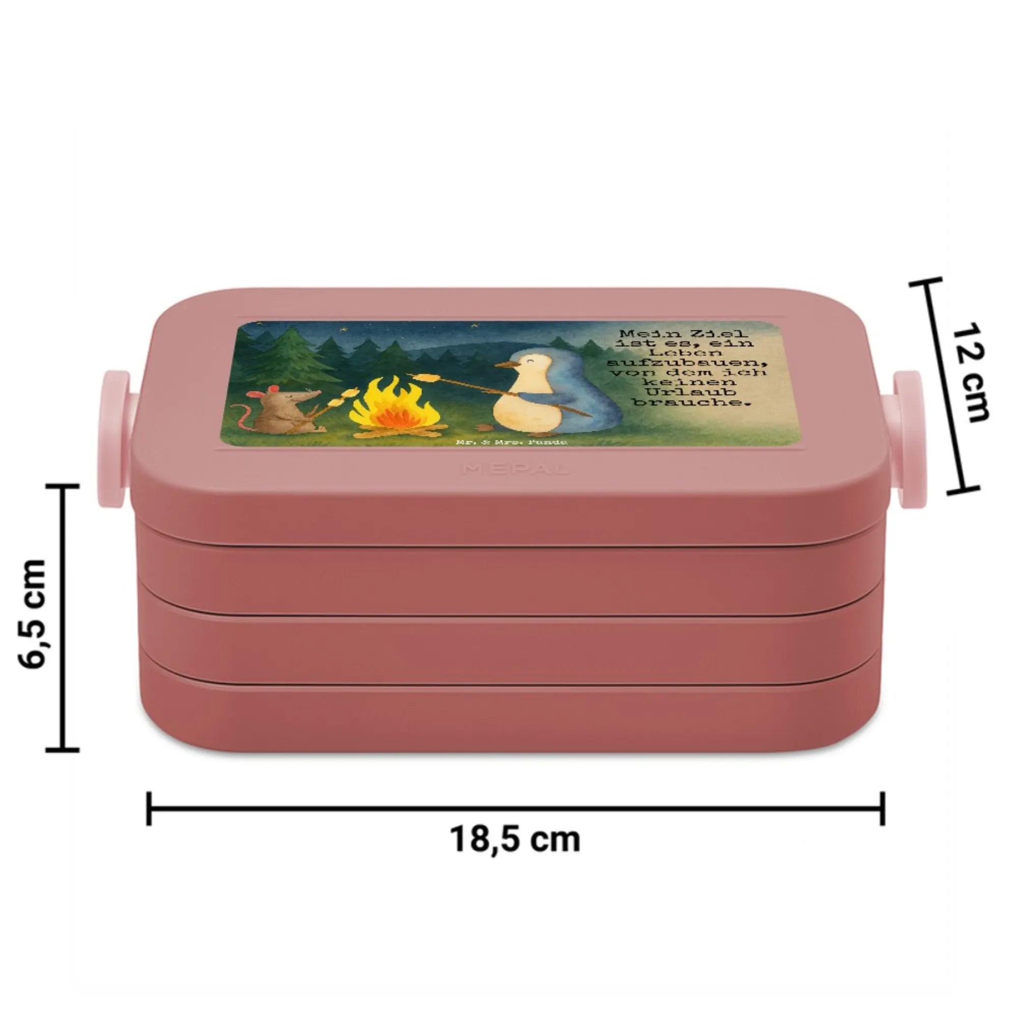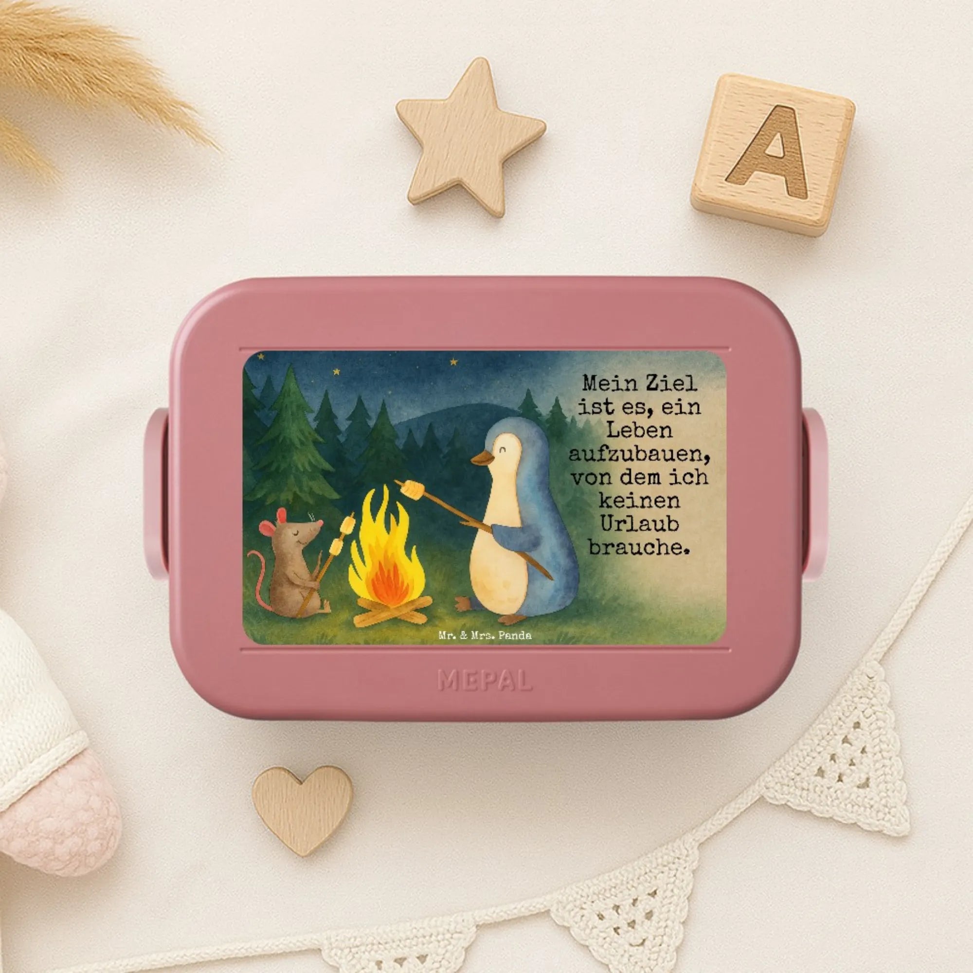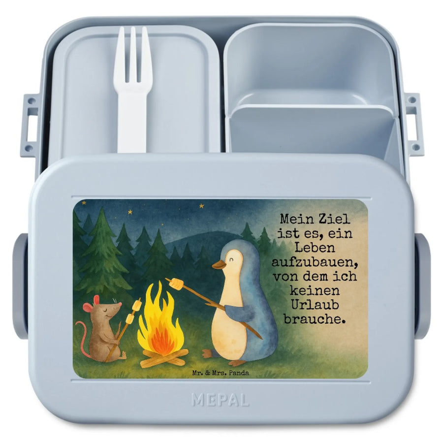 MEPAL Bentobox Pinguin Lagerfeuer Design - mit Spruch - Blau Pastell