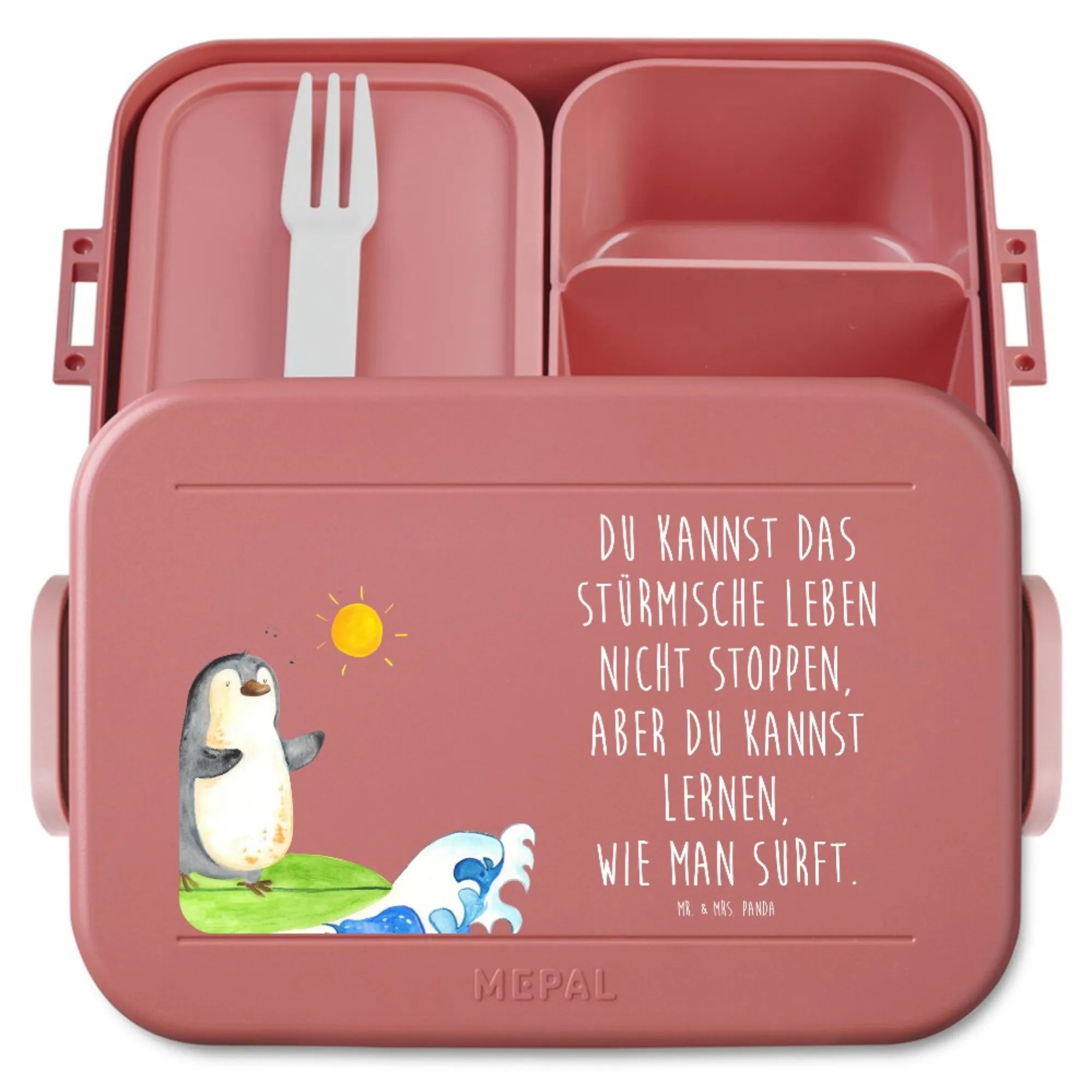 MEPAL Bentobox Pinguin Surfer Motiv - Rot Pastell