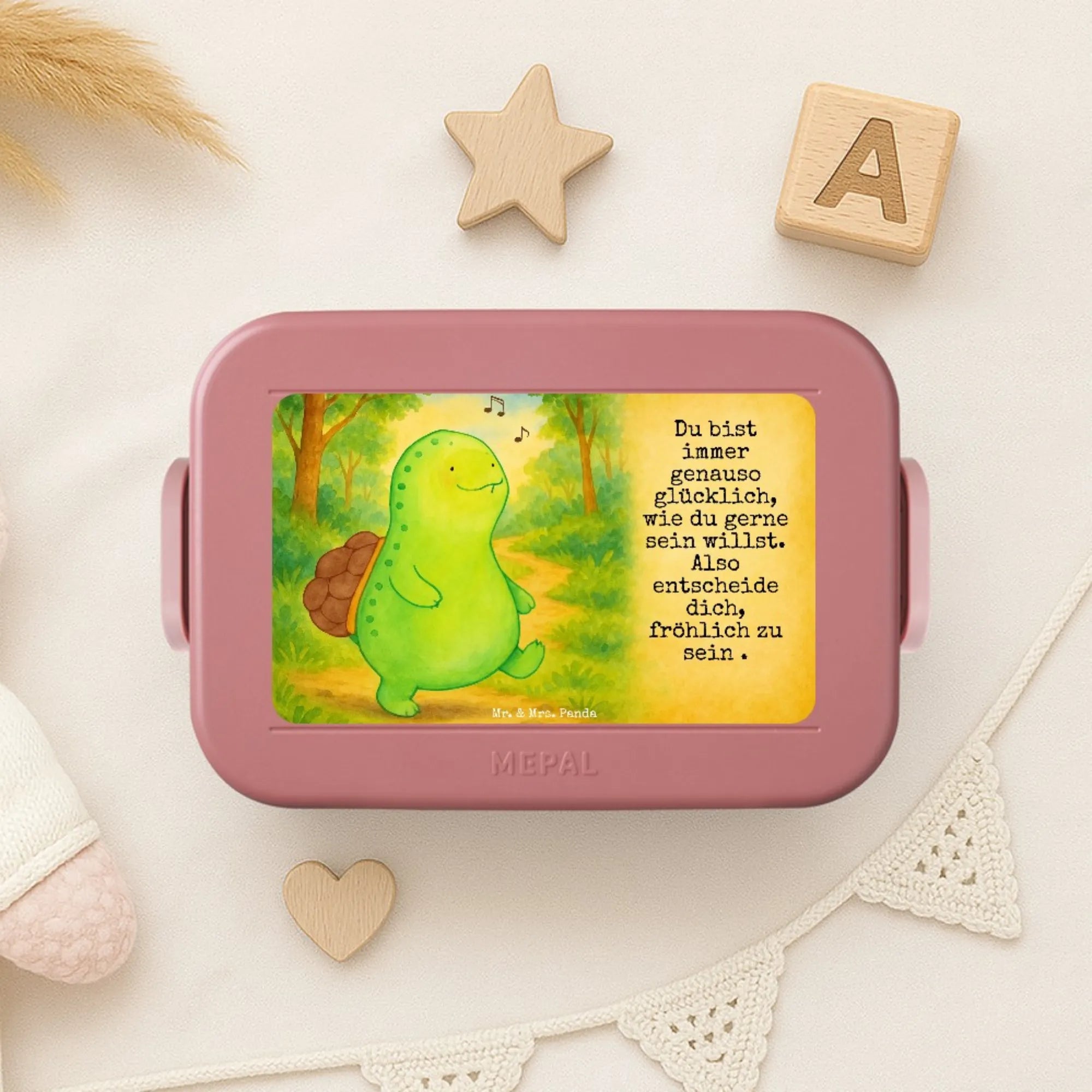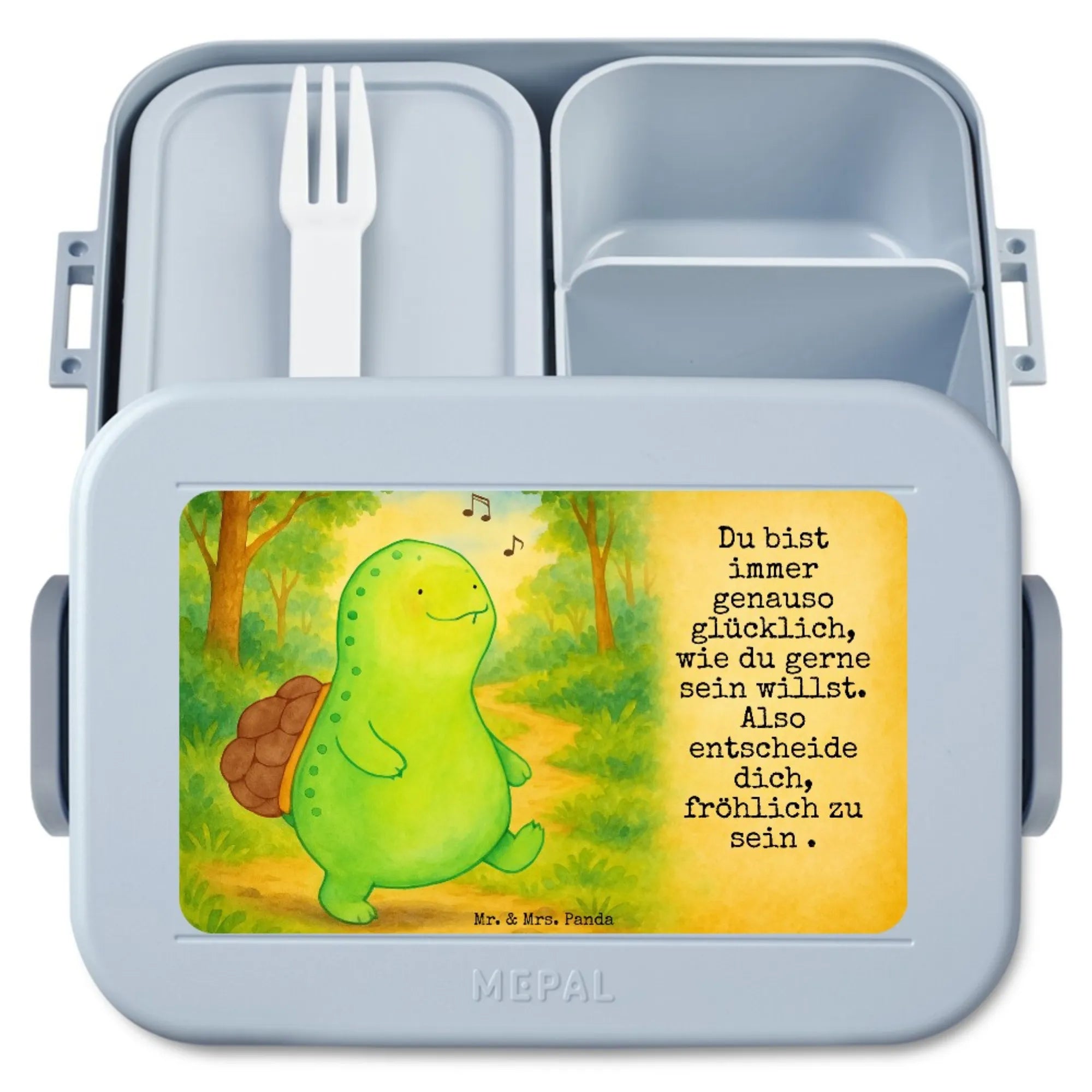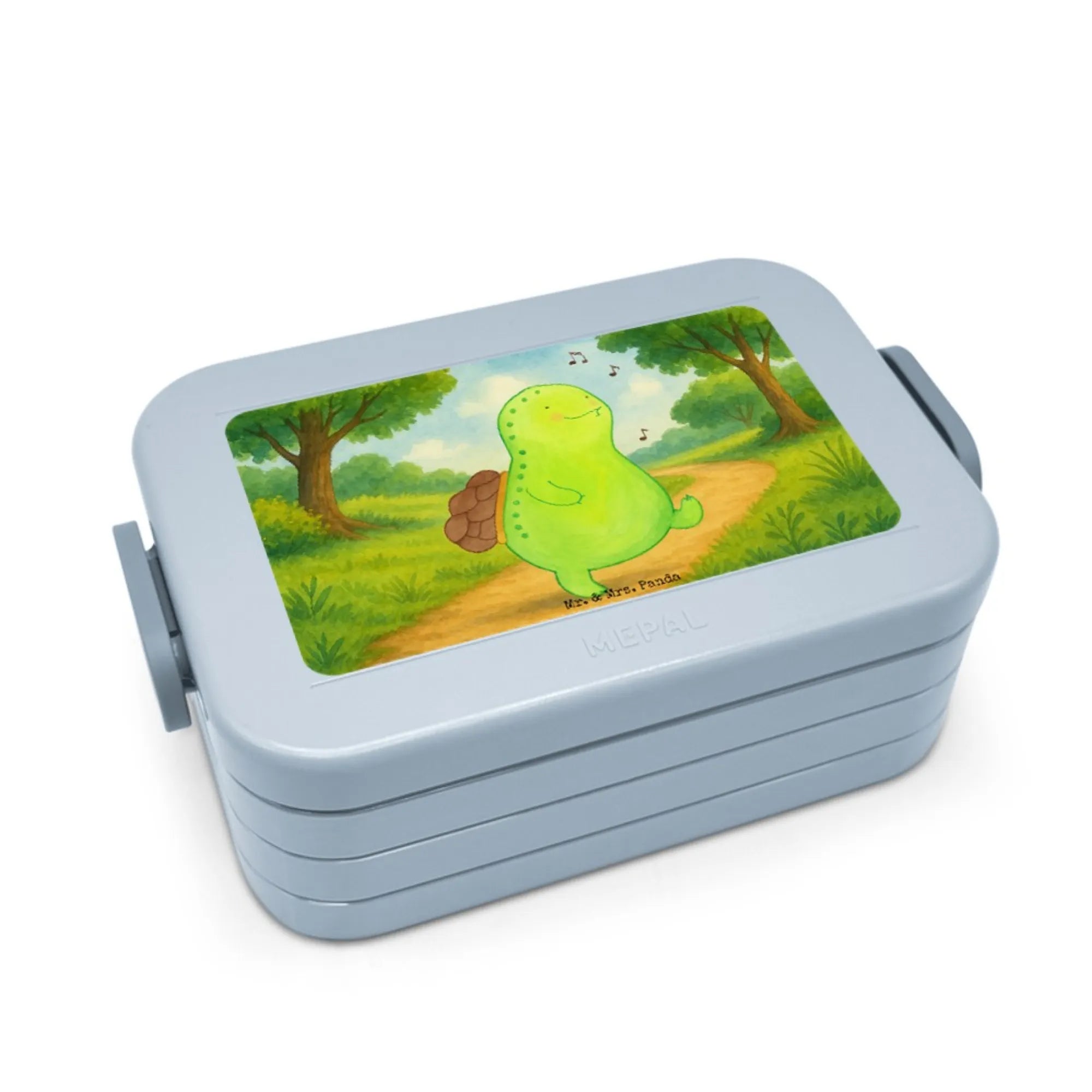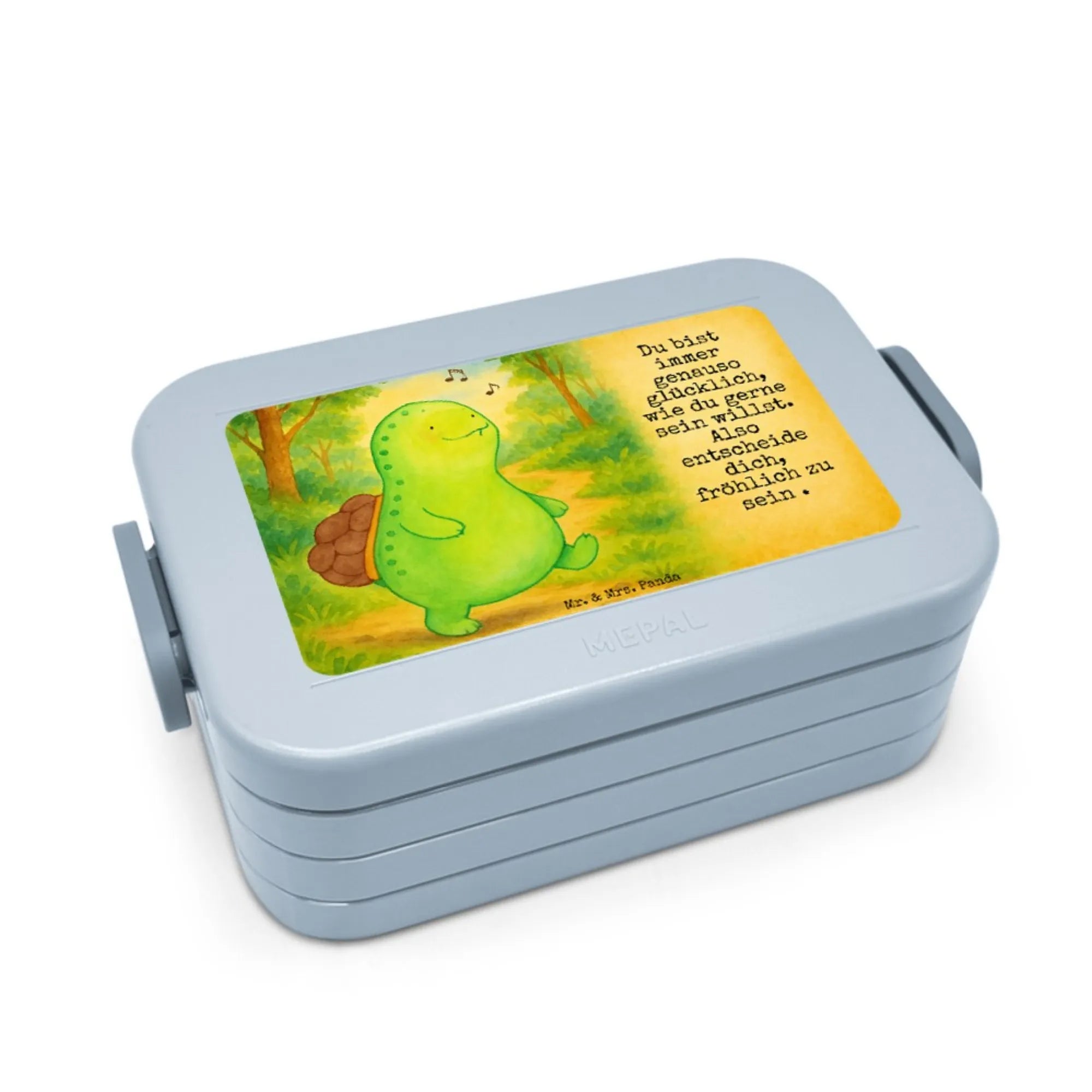 MEPAL Bentobox Schildkröte Pfeifen Design - mit Spruch - Blau Pastell