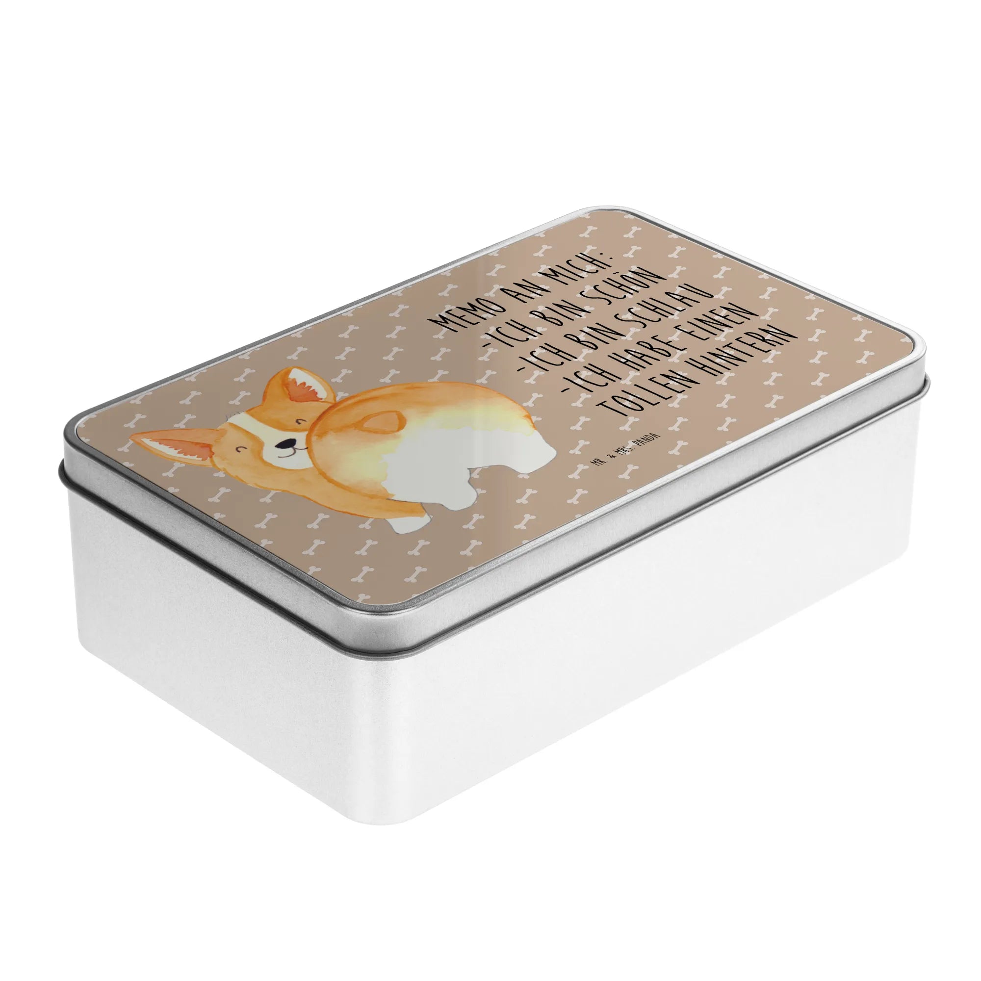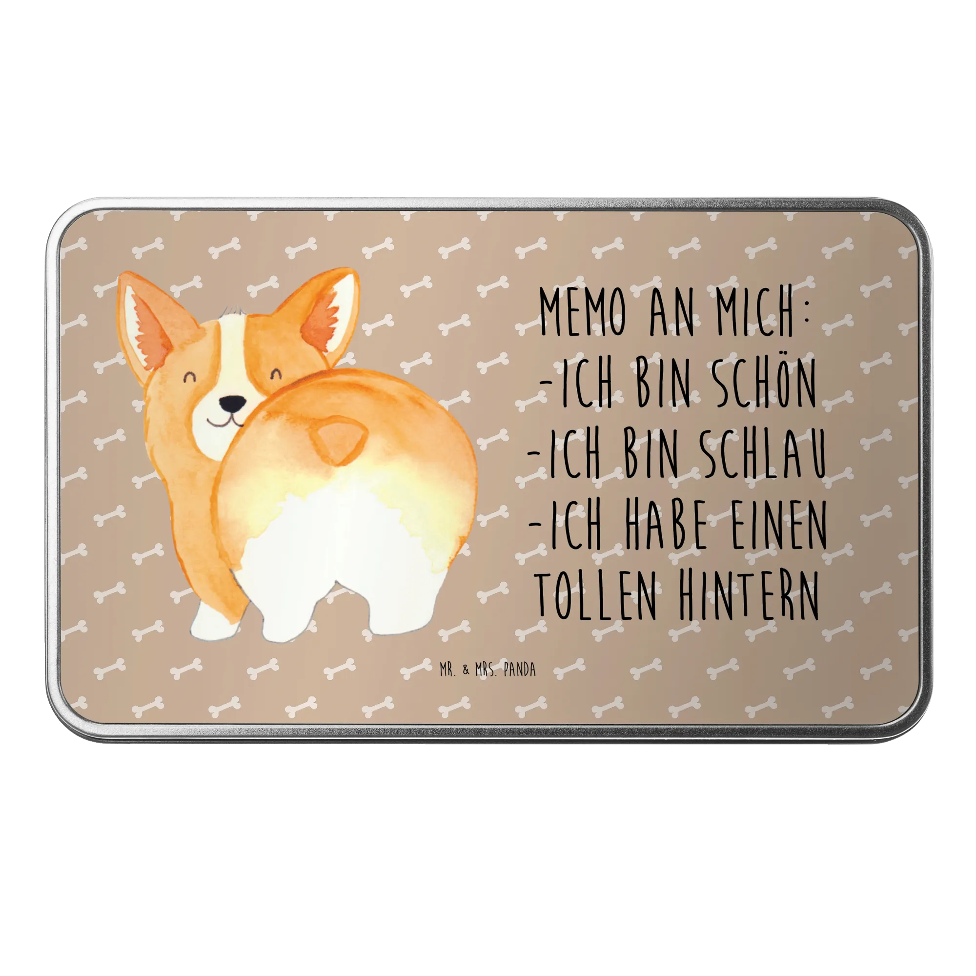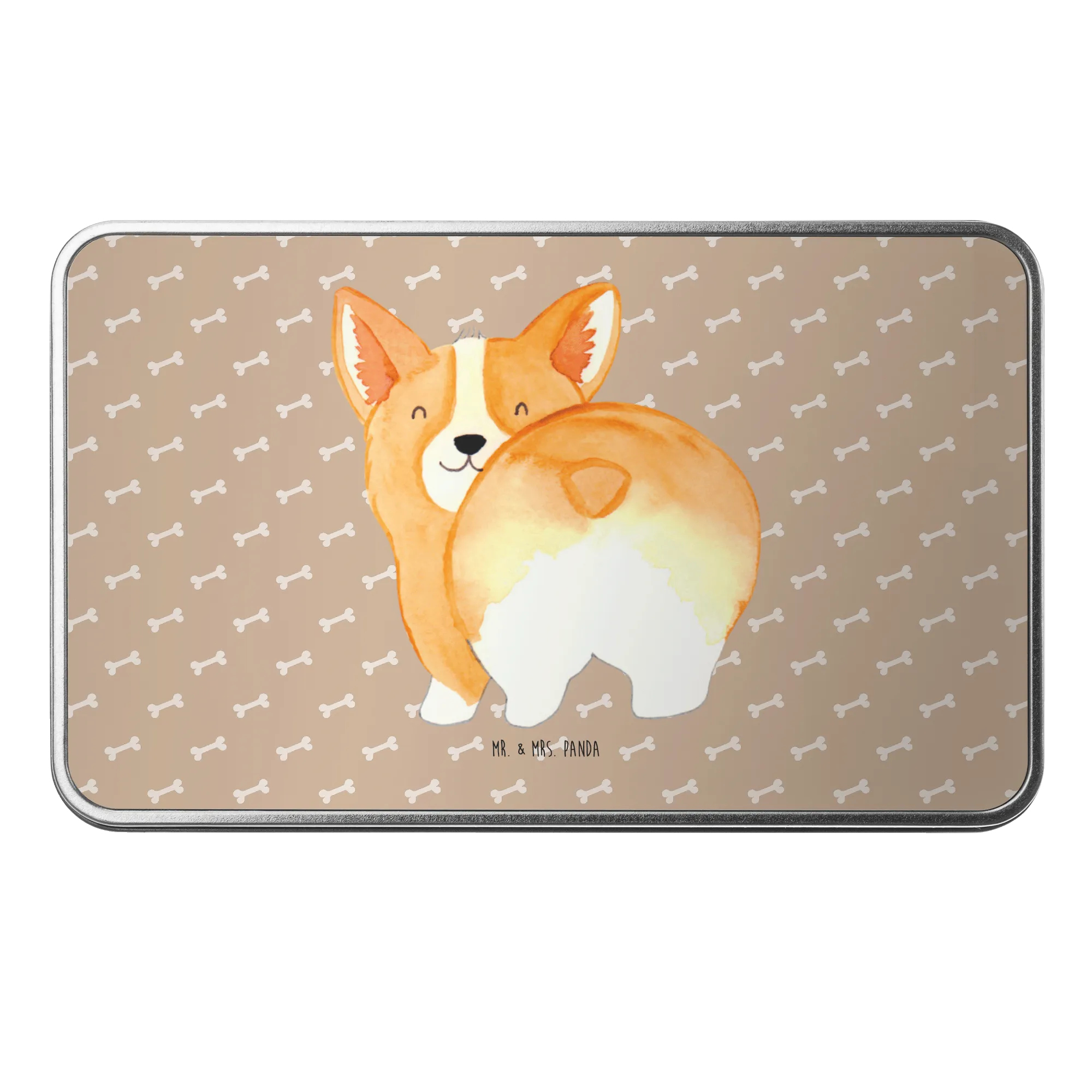 Metalowa puszka Corgi tyłek - z napisem
