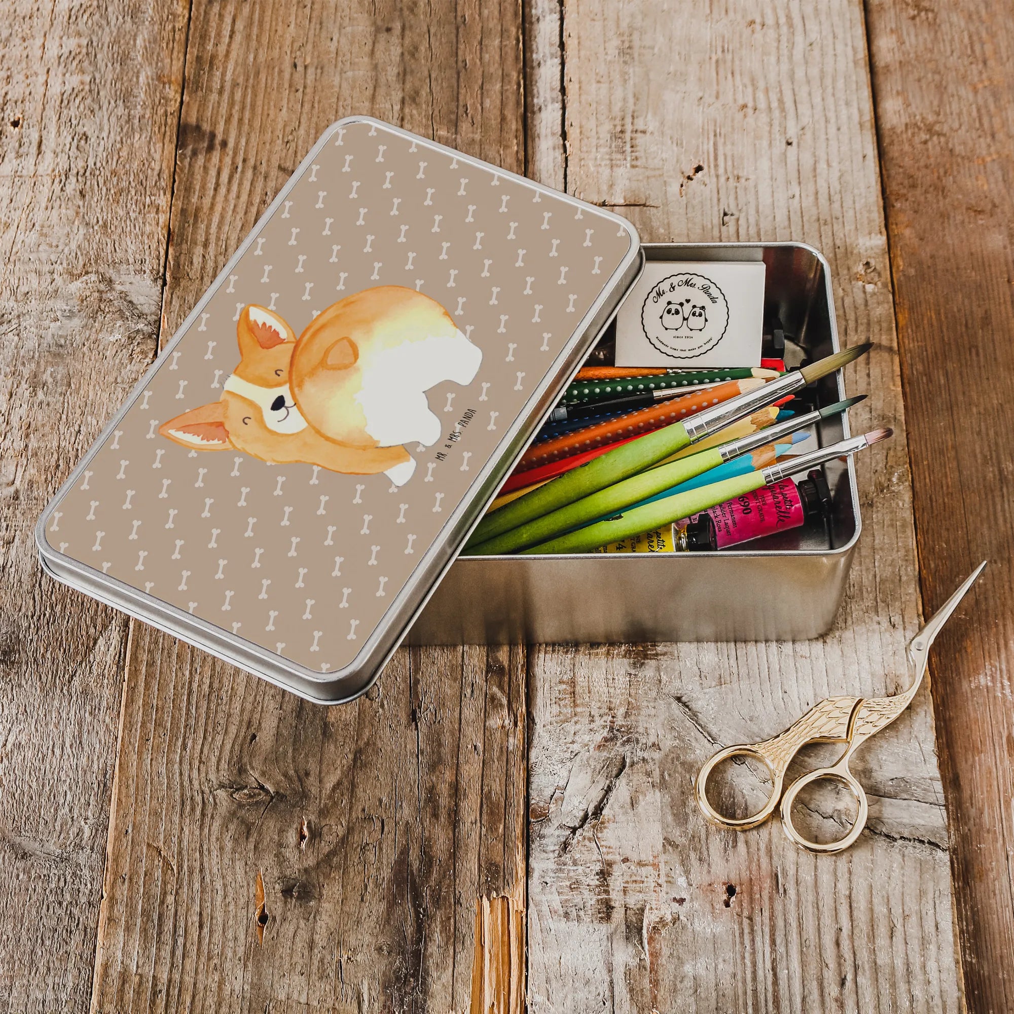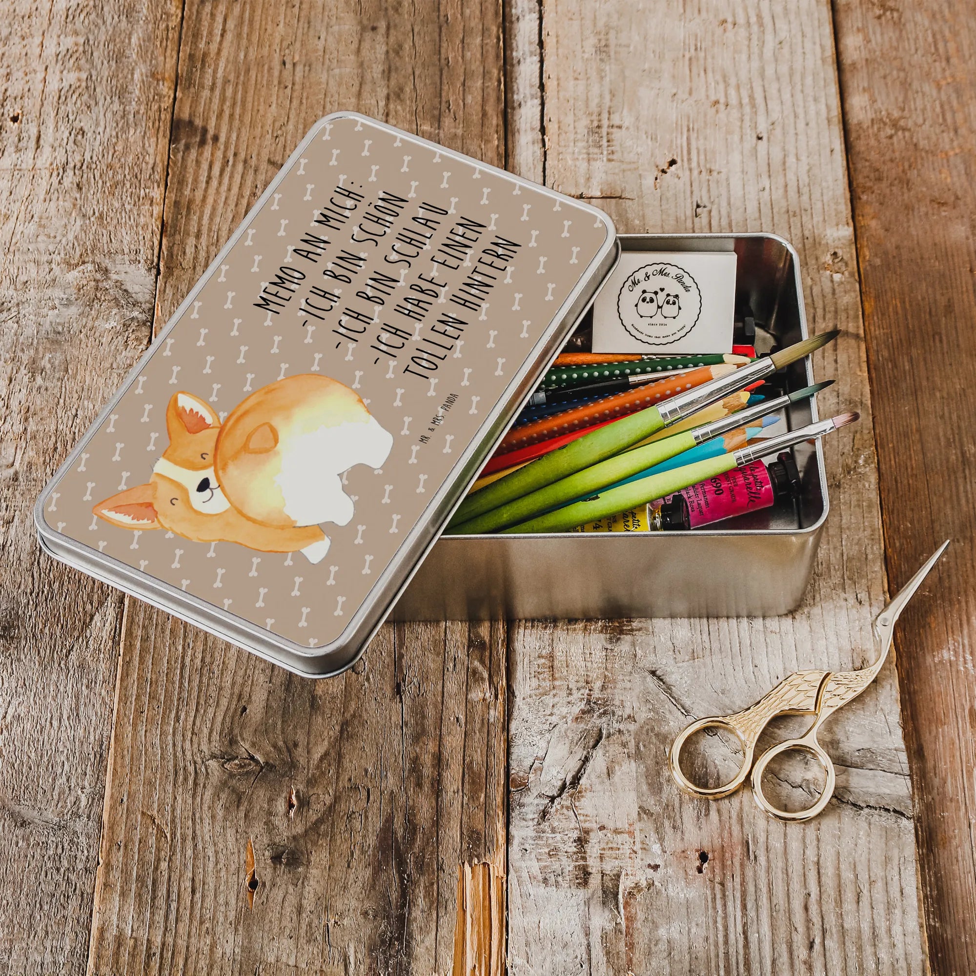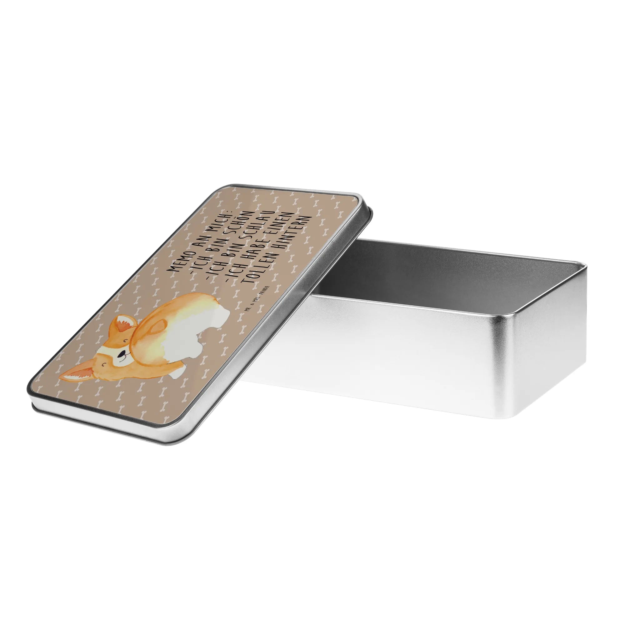 Metalowa puszka Corgi tyłek - z napisem