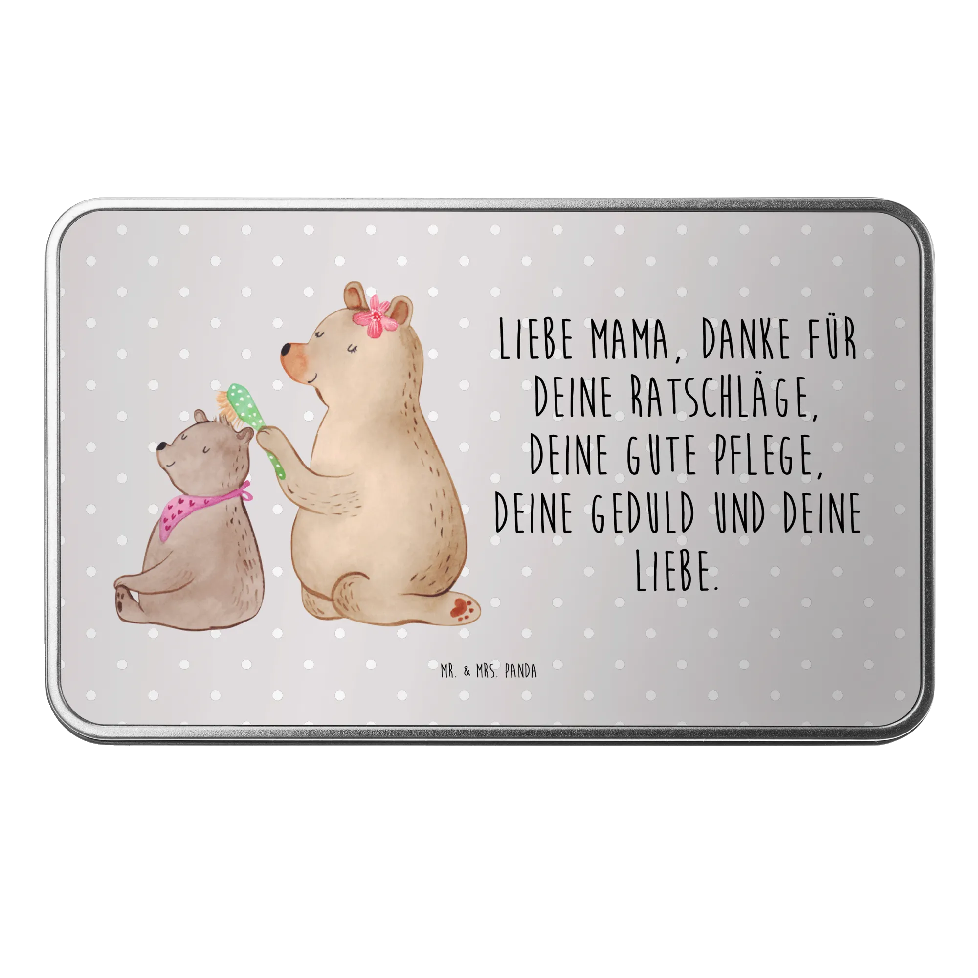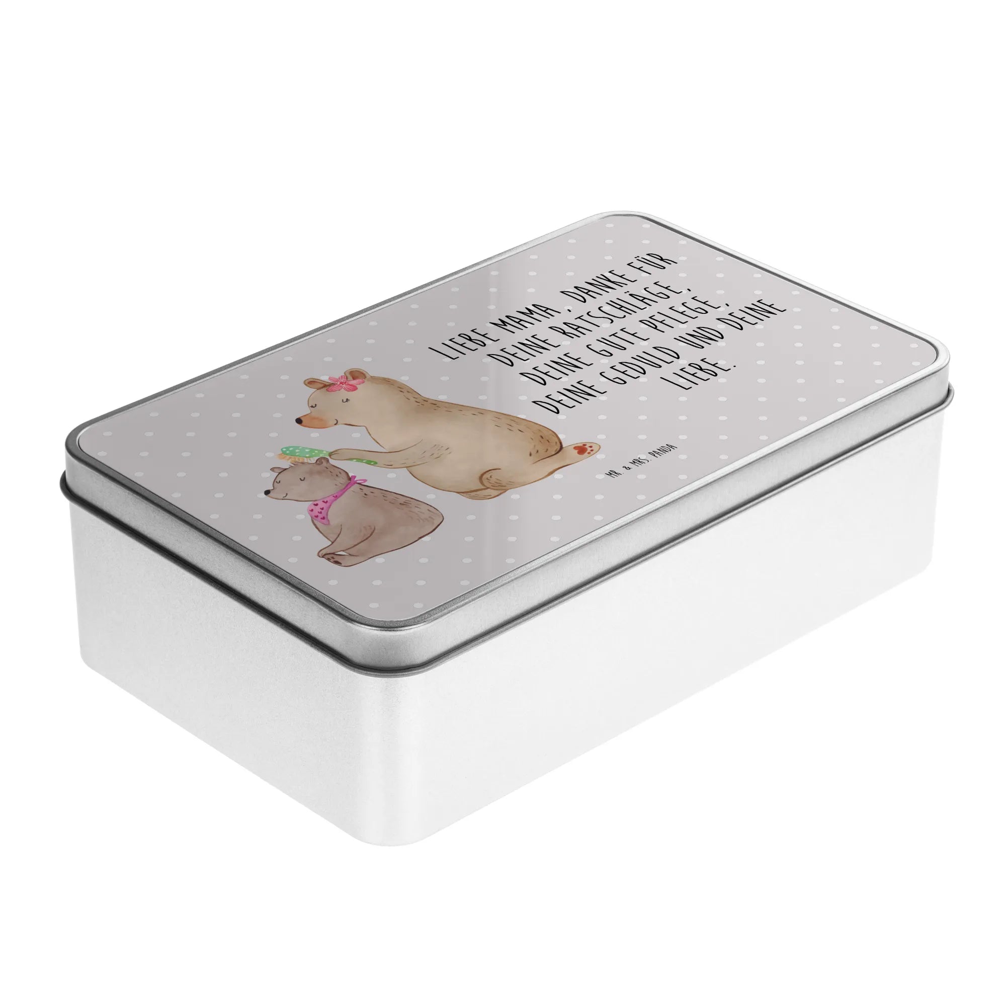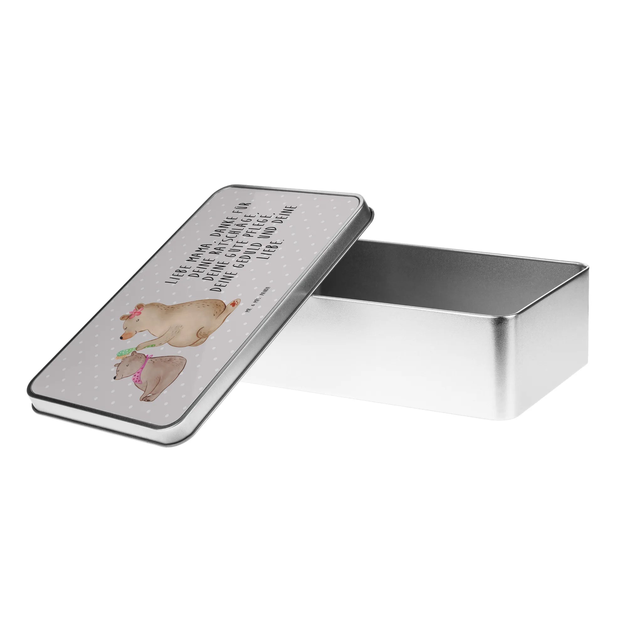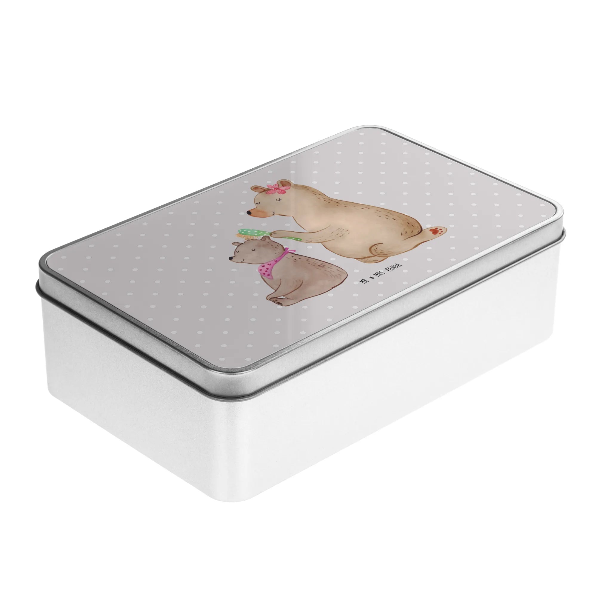 Metalowa puszka niedźwiedź dziecko - z napisem - Pastelowy szary