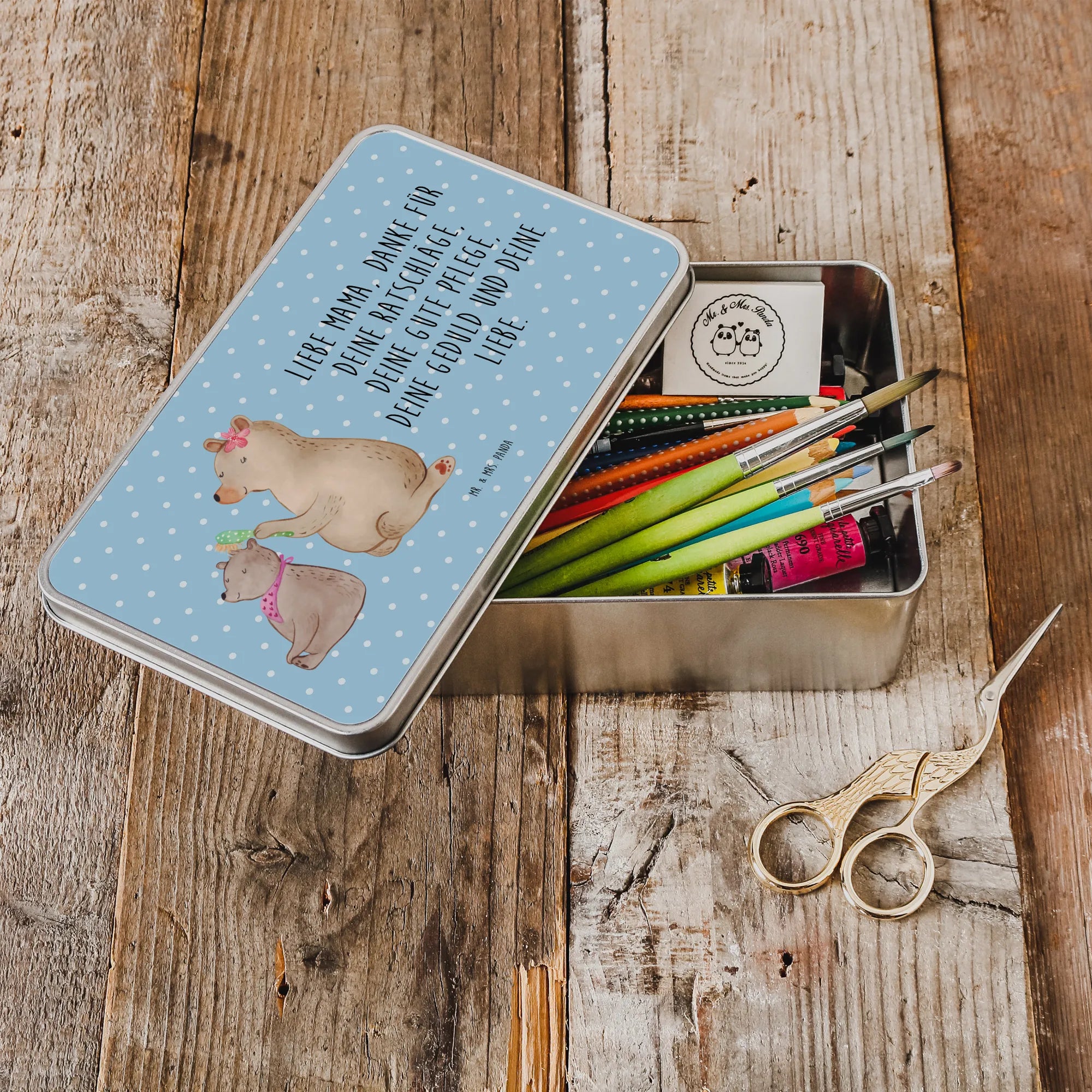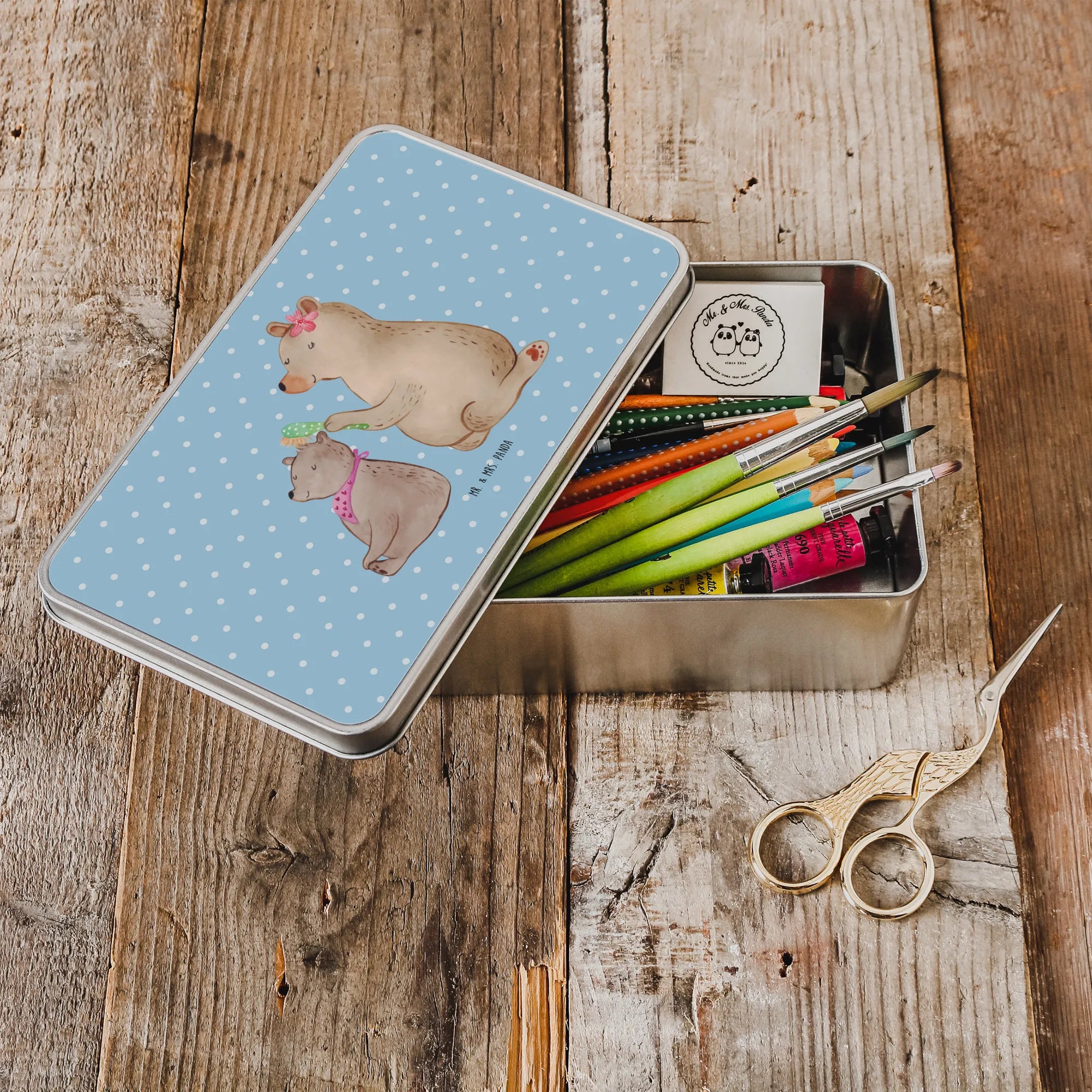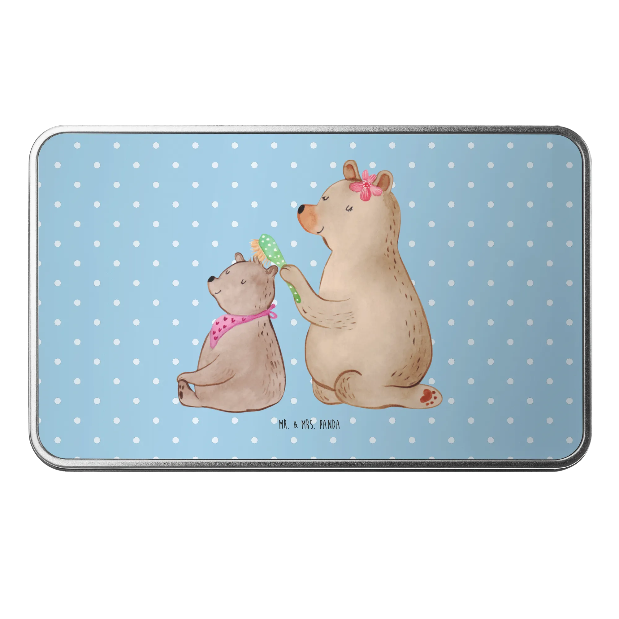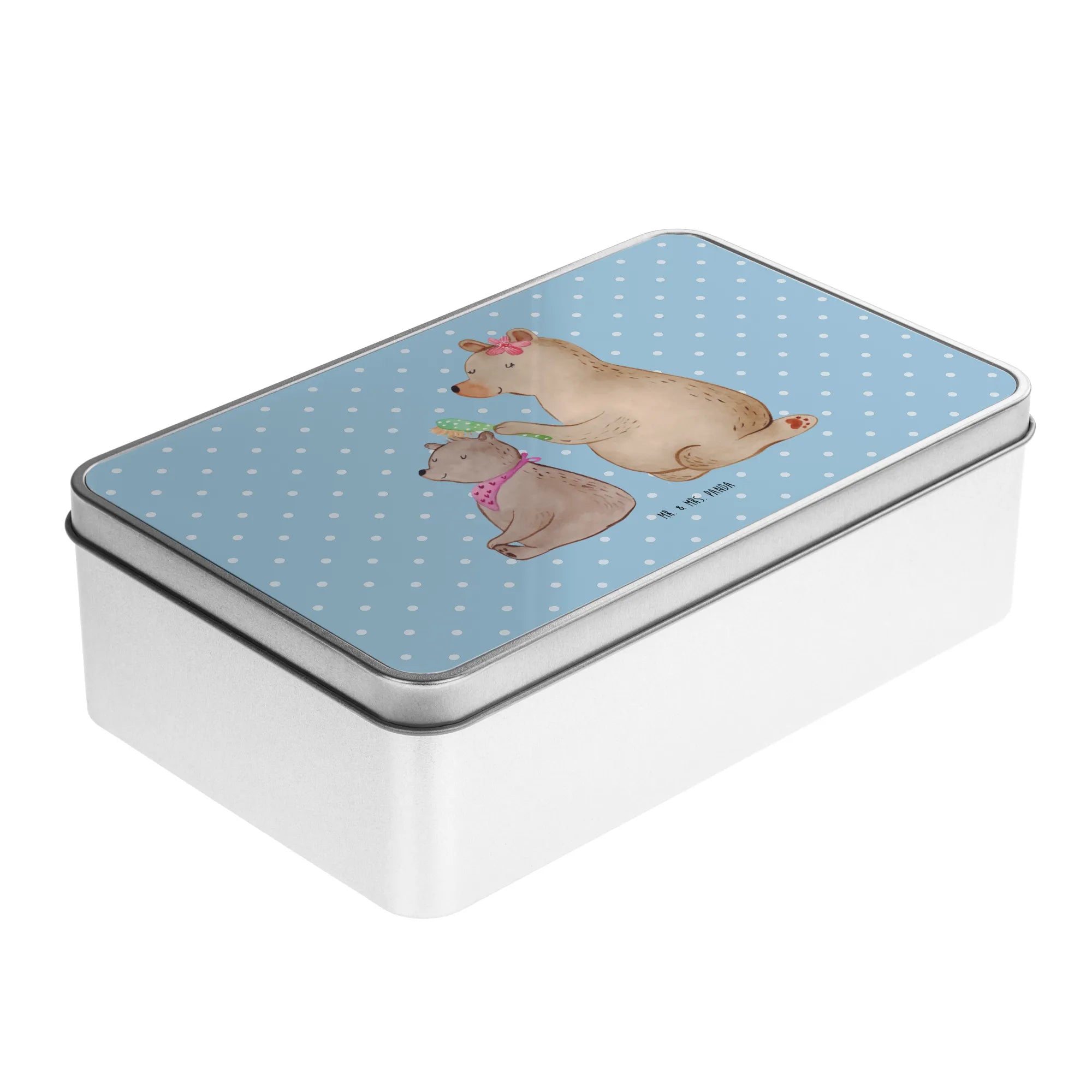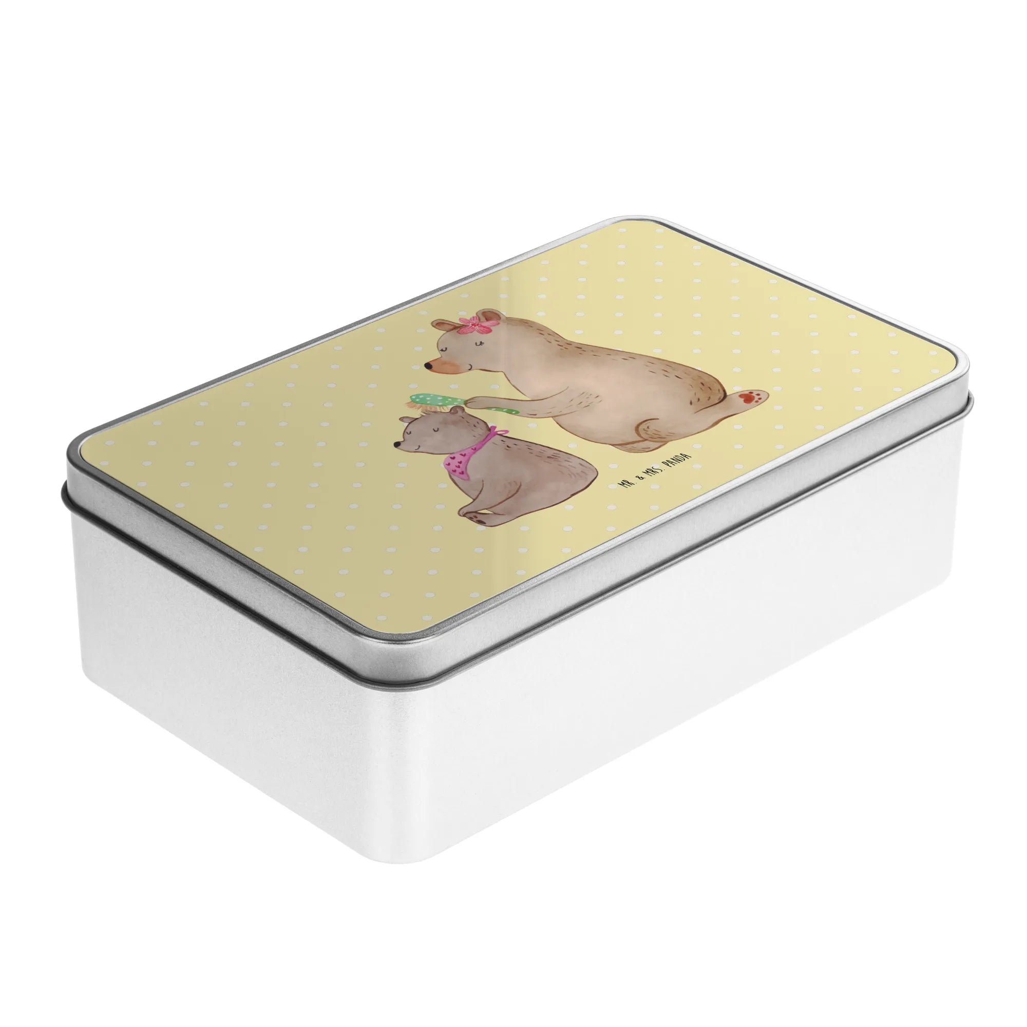 Metalowa puszka niedźwiedź dziecko - z napisem - Pastelowy szary