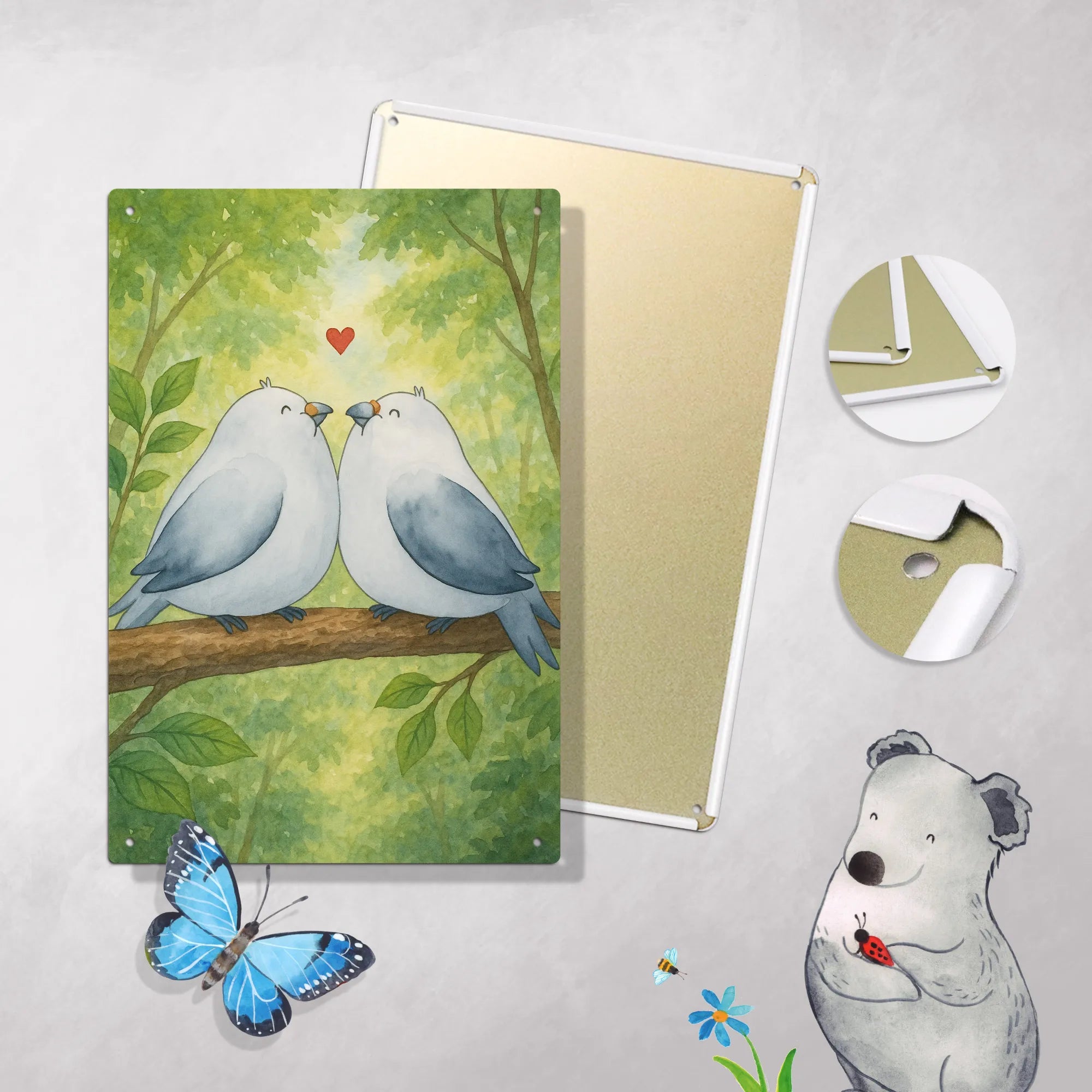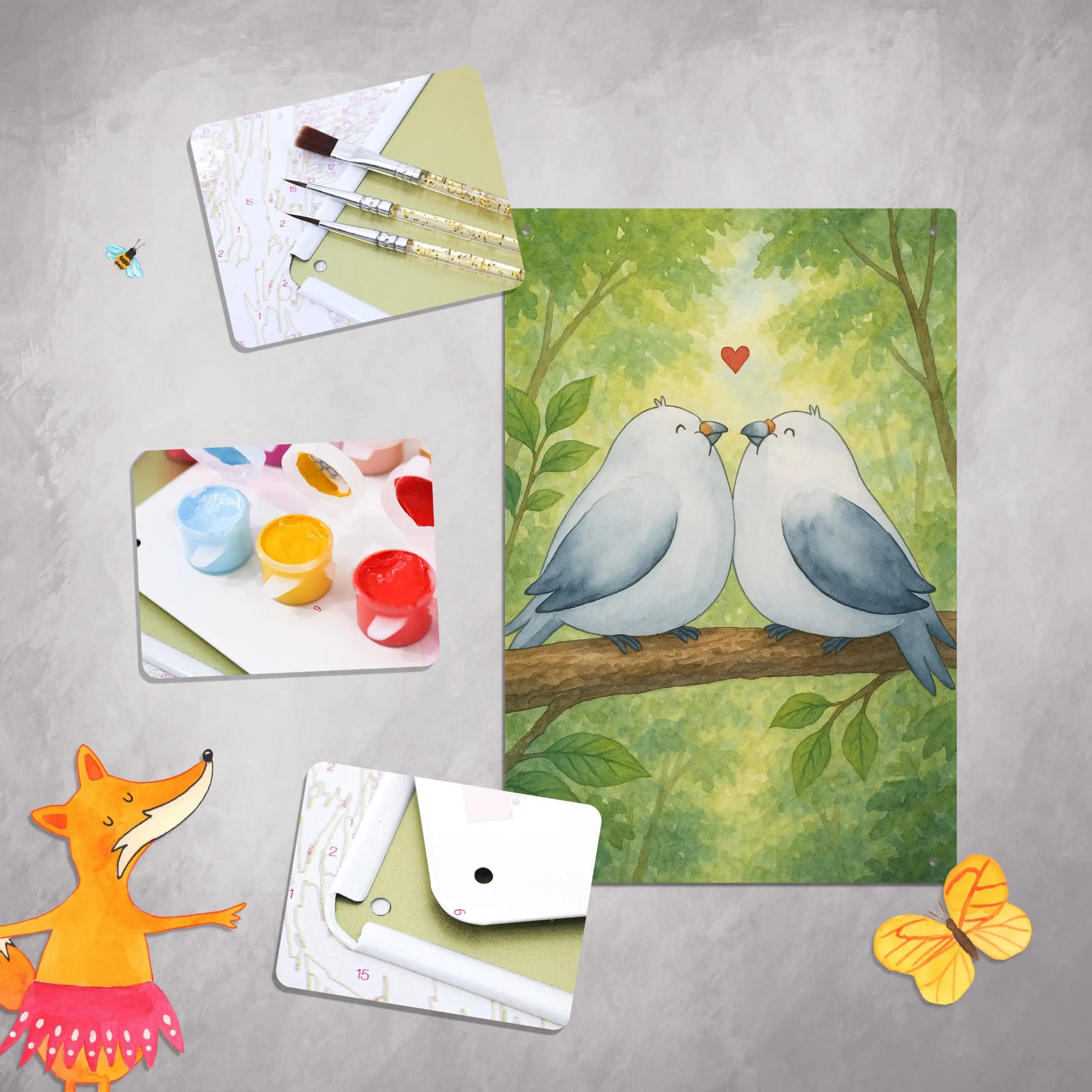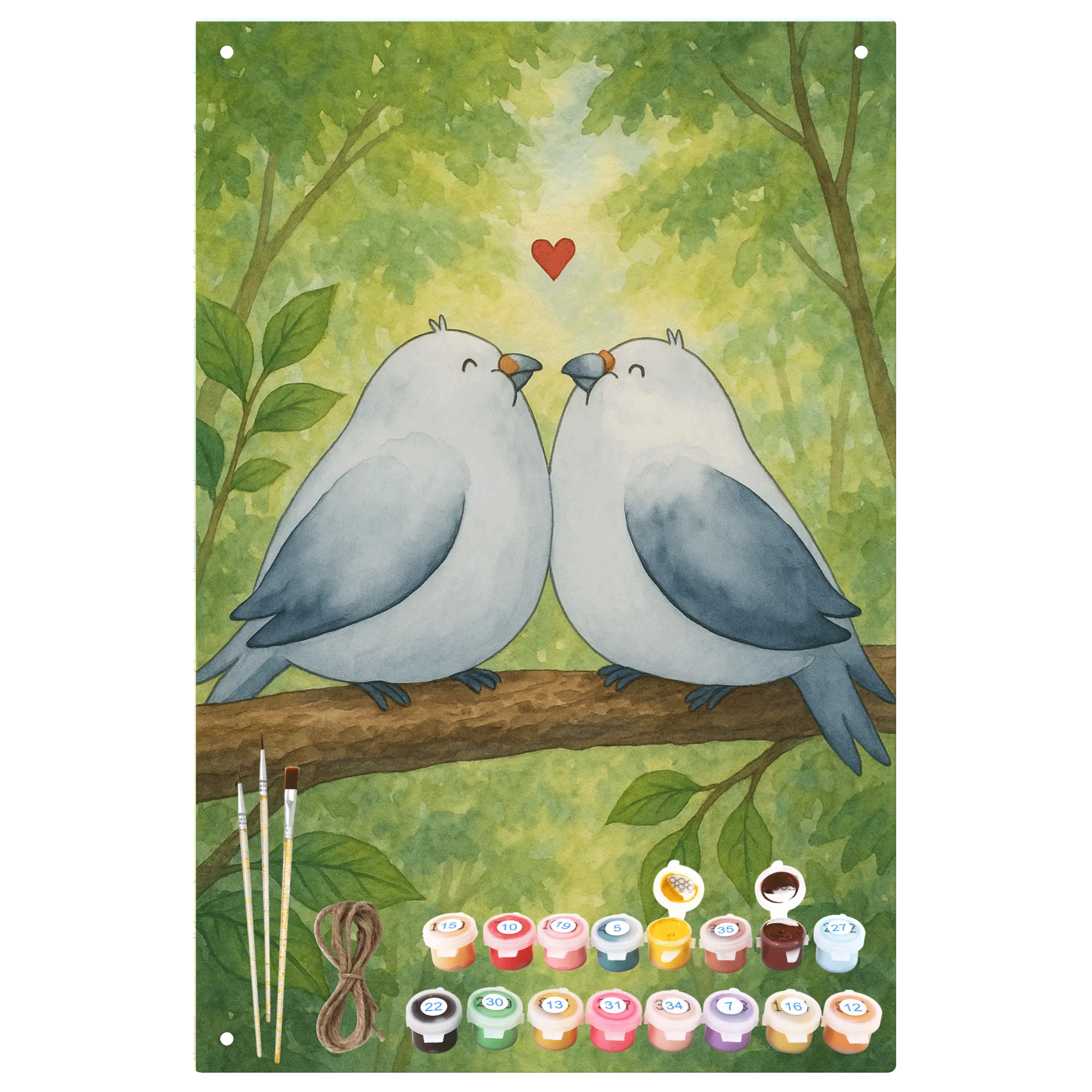 • Malen nach Zahlen Metallschild mit liebevollem Turteltauben-Motiv
