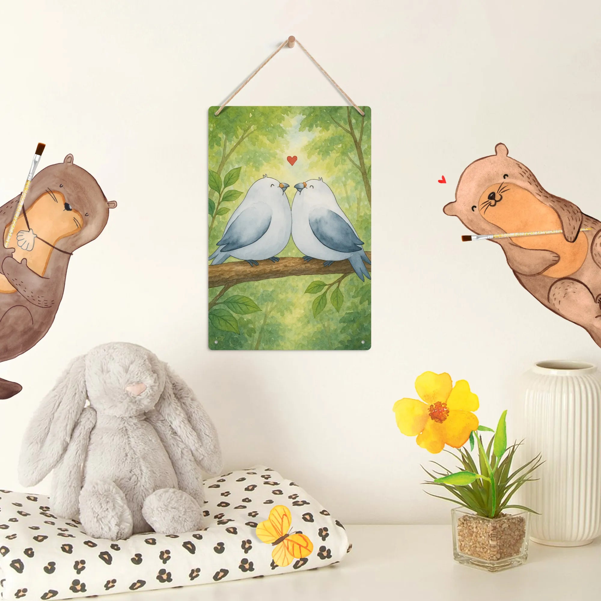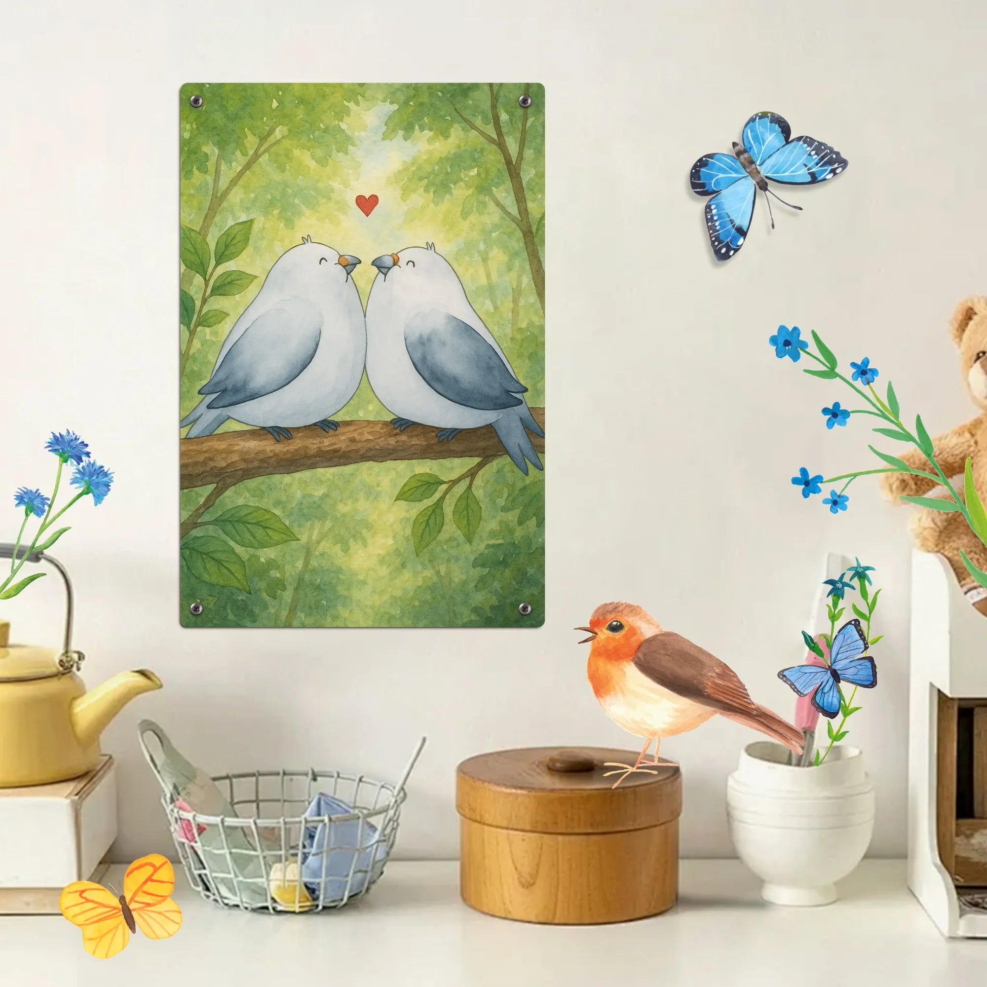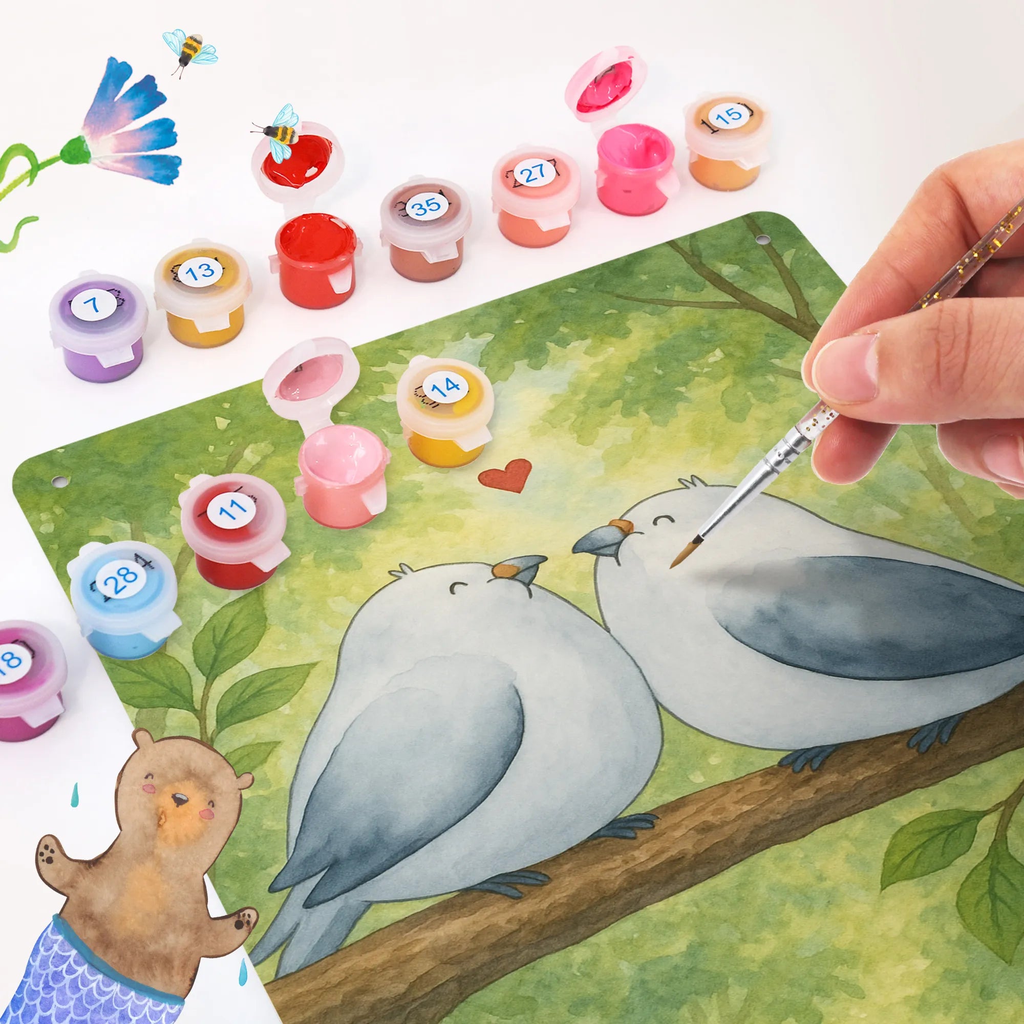 • Malen nach Zahlen Metallschild mit liebevollem Turteltauben-Motiv