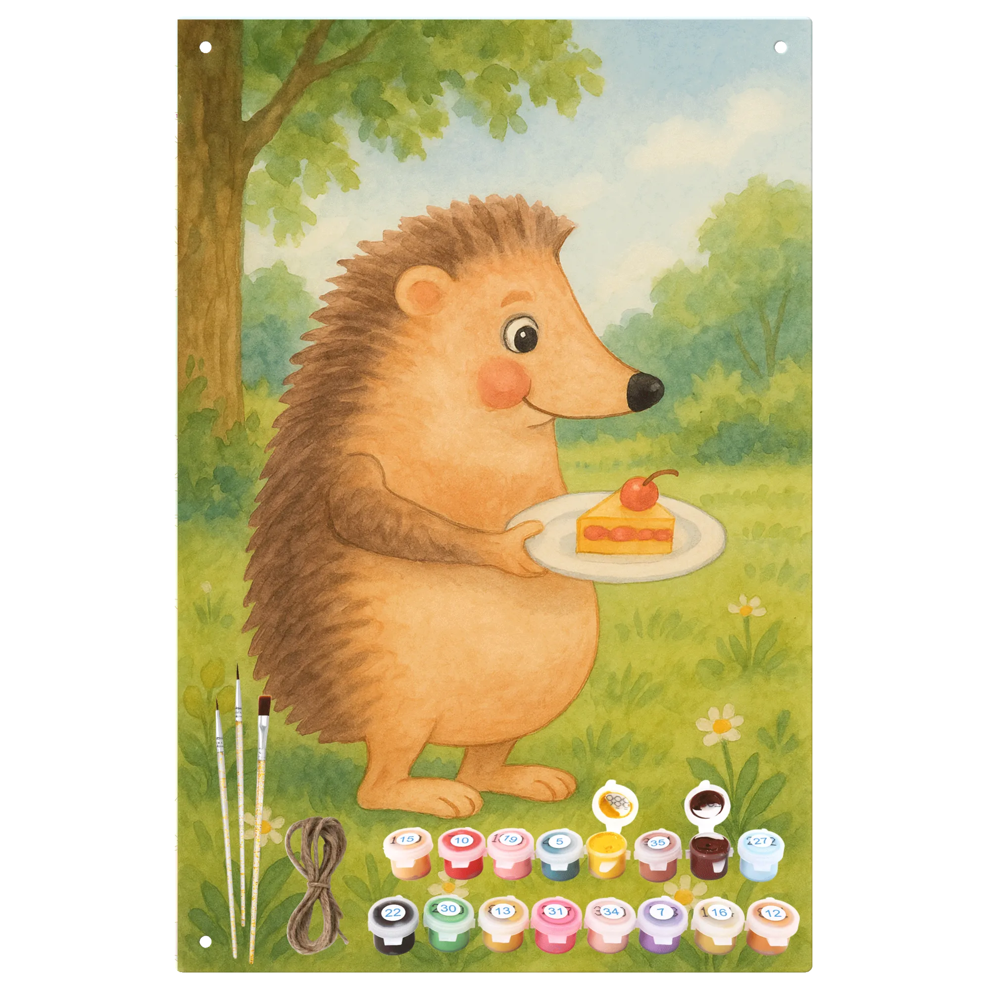 Metalowy szyld do malowania po numerach jeż kawałek ciasta Design