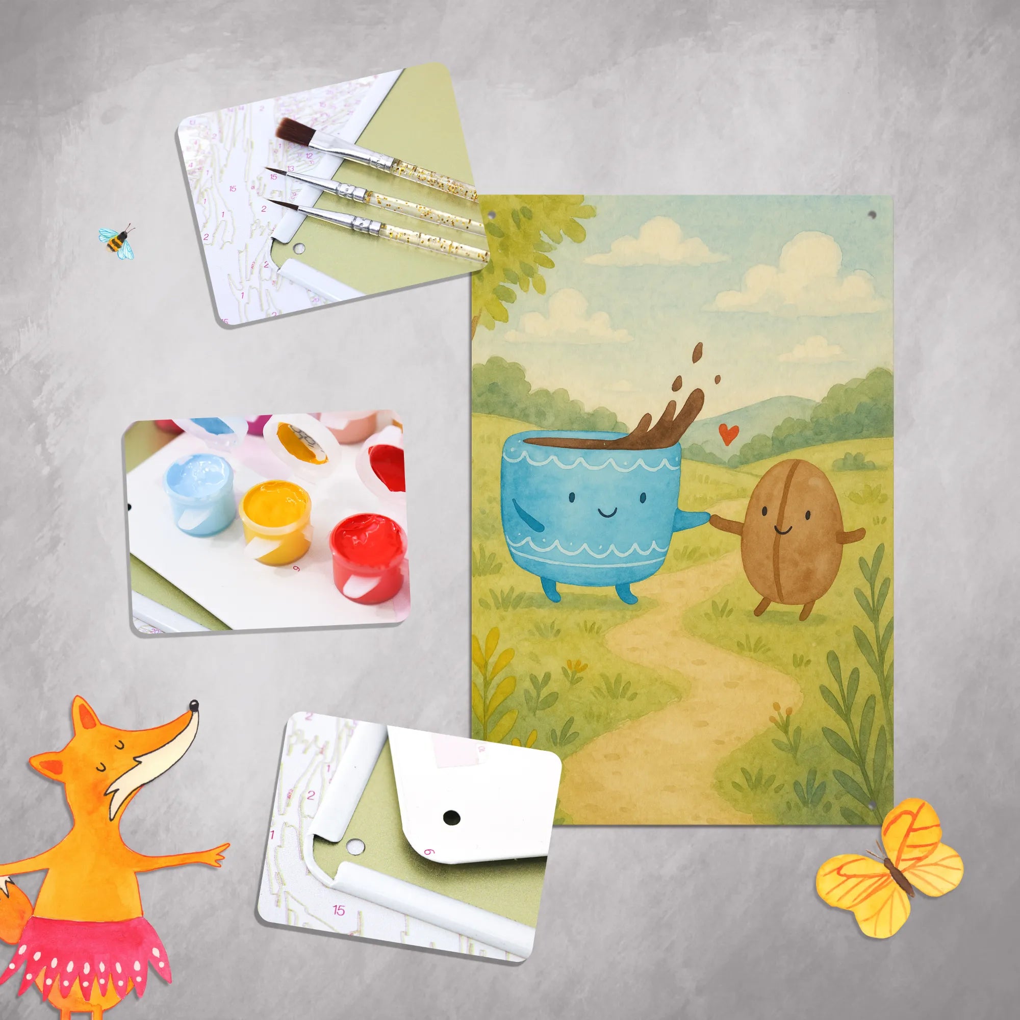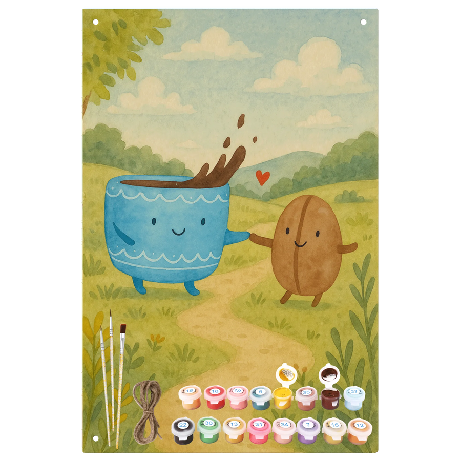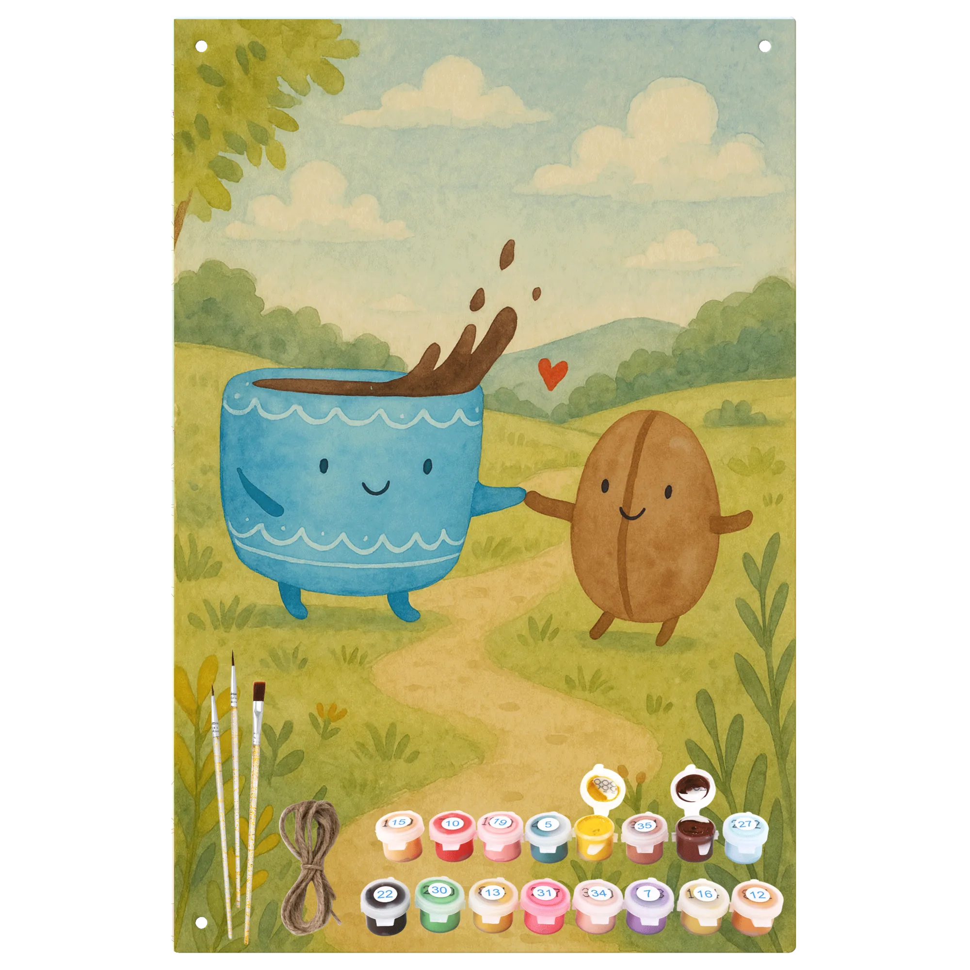 Metalowy szyld do malowania po numerach kawa ziarno Design