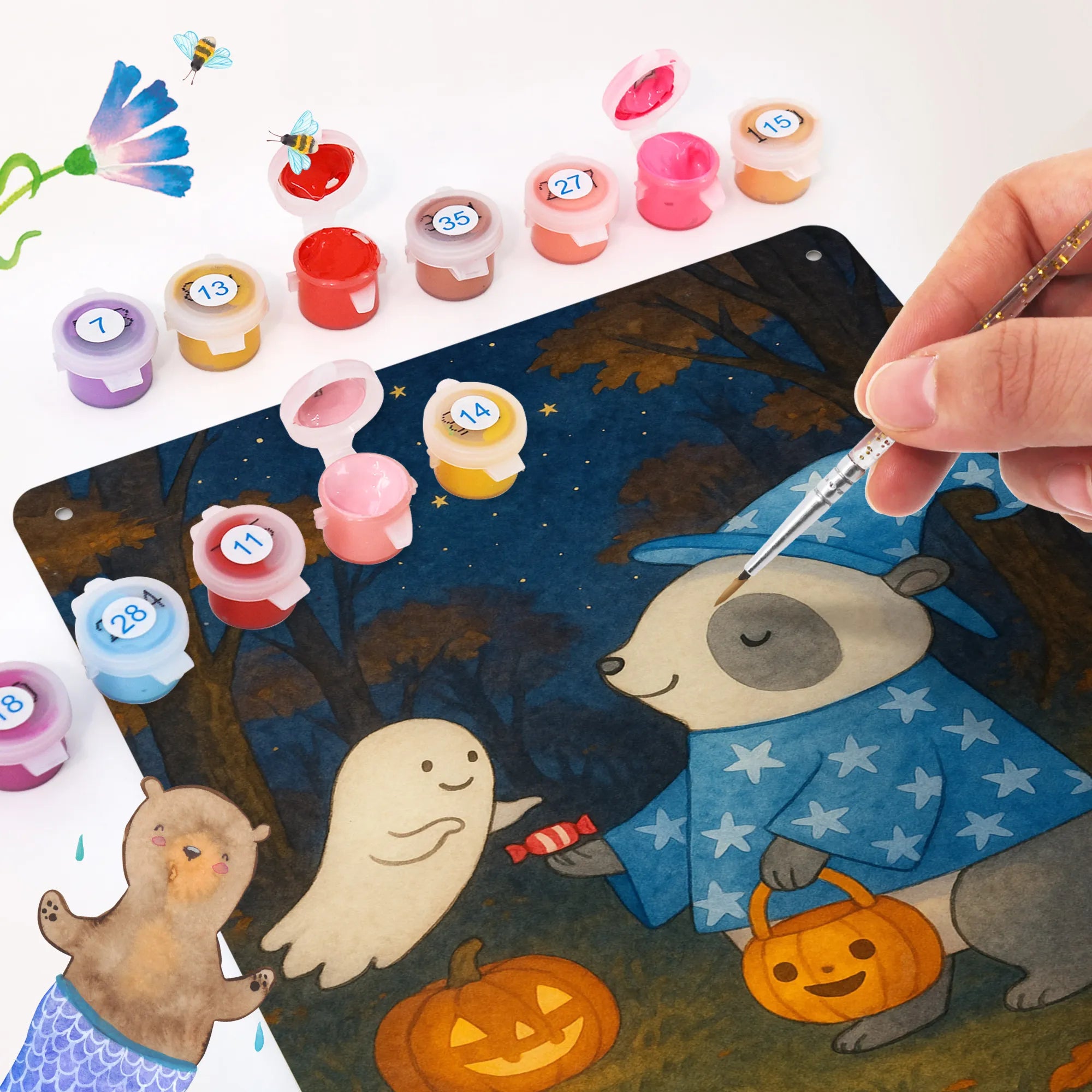 Metalowy szyld do malowania po numerach Panda Czarodziej Design