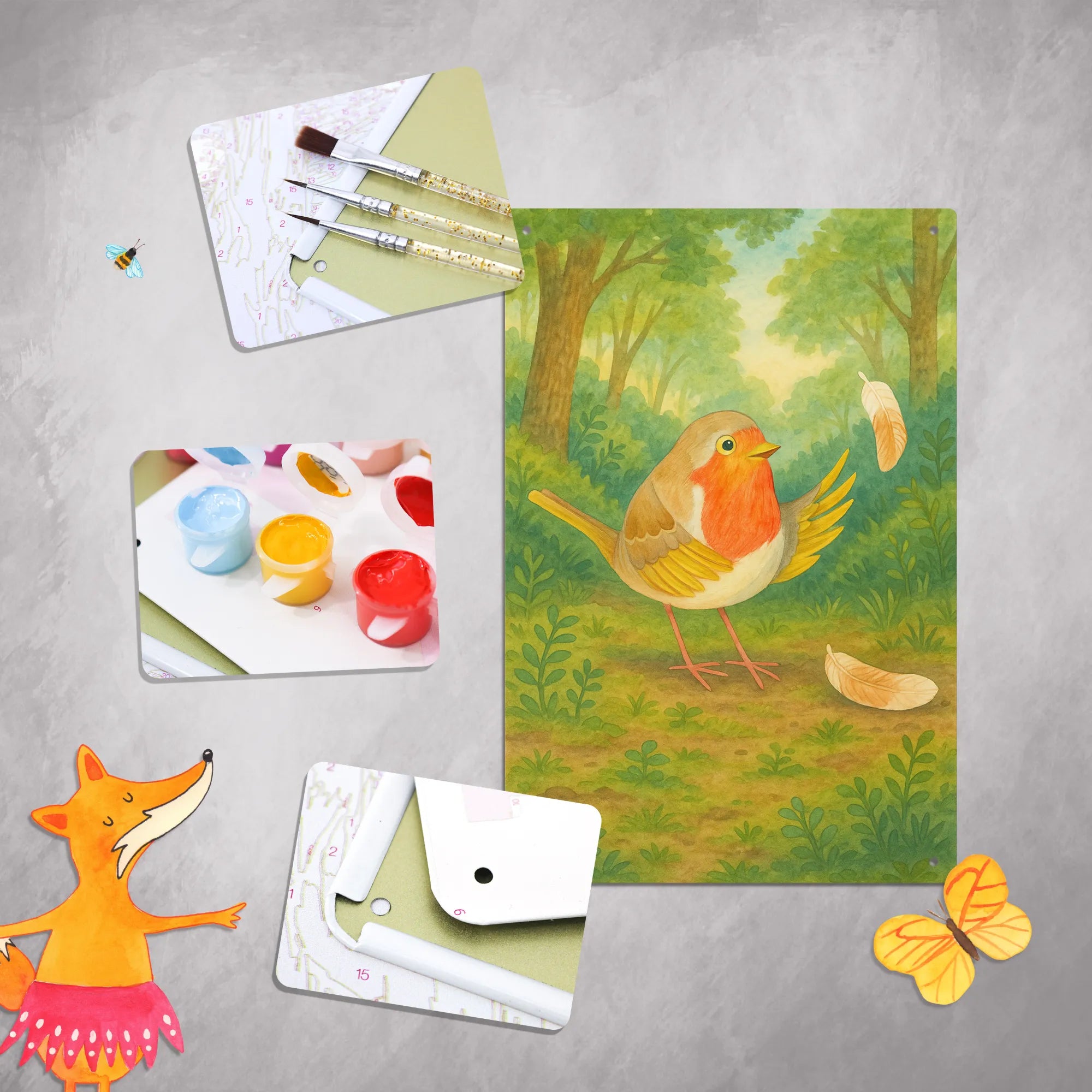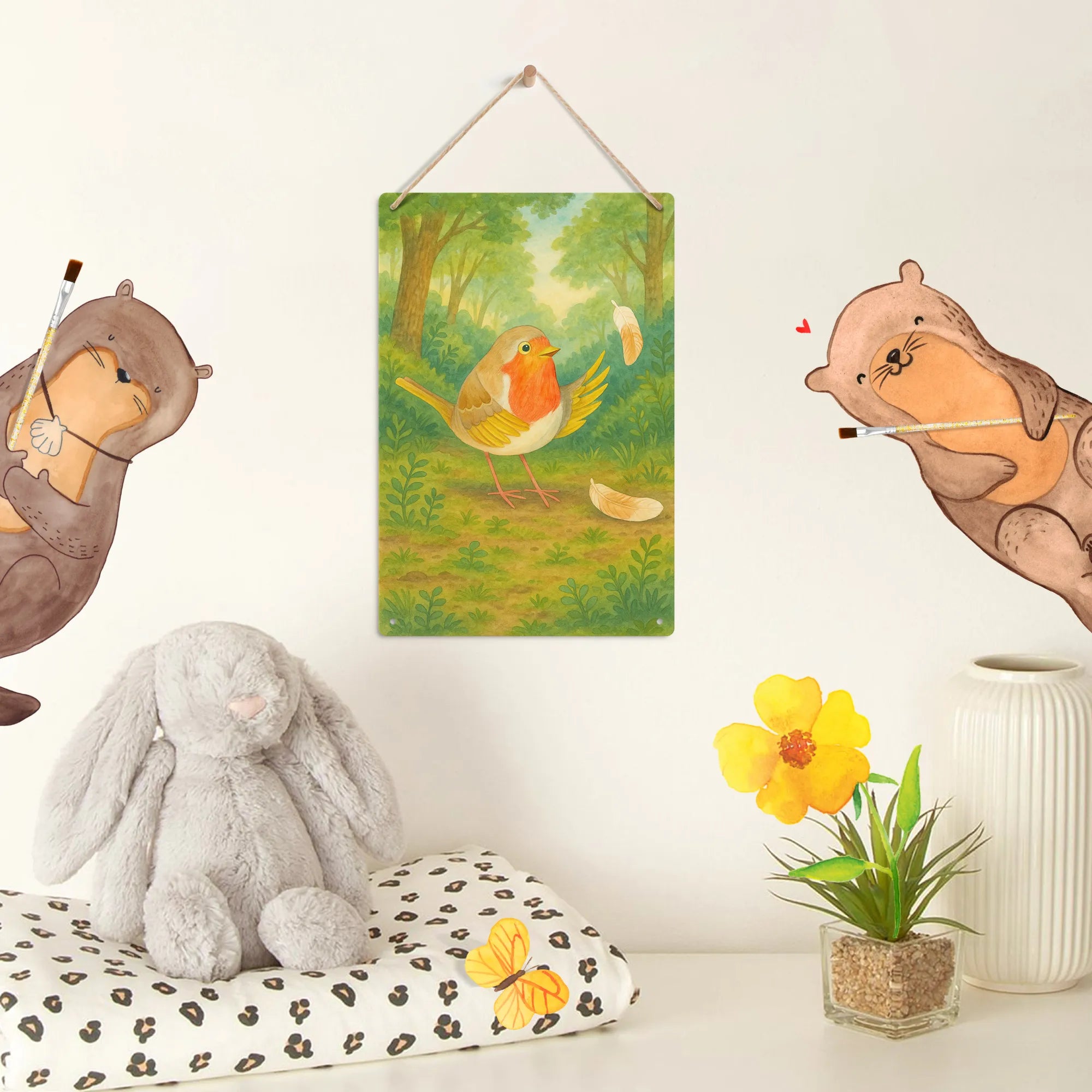 Metalowy szyld do malowania po numerach rudzik Pióra Design – Mr. & Mrs. Panda
