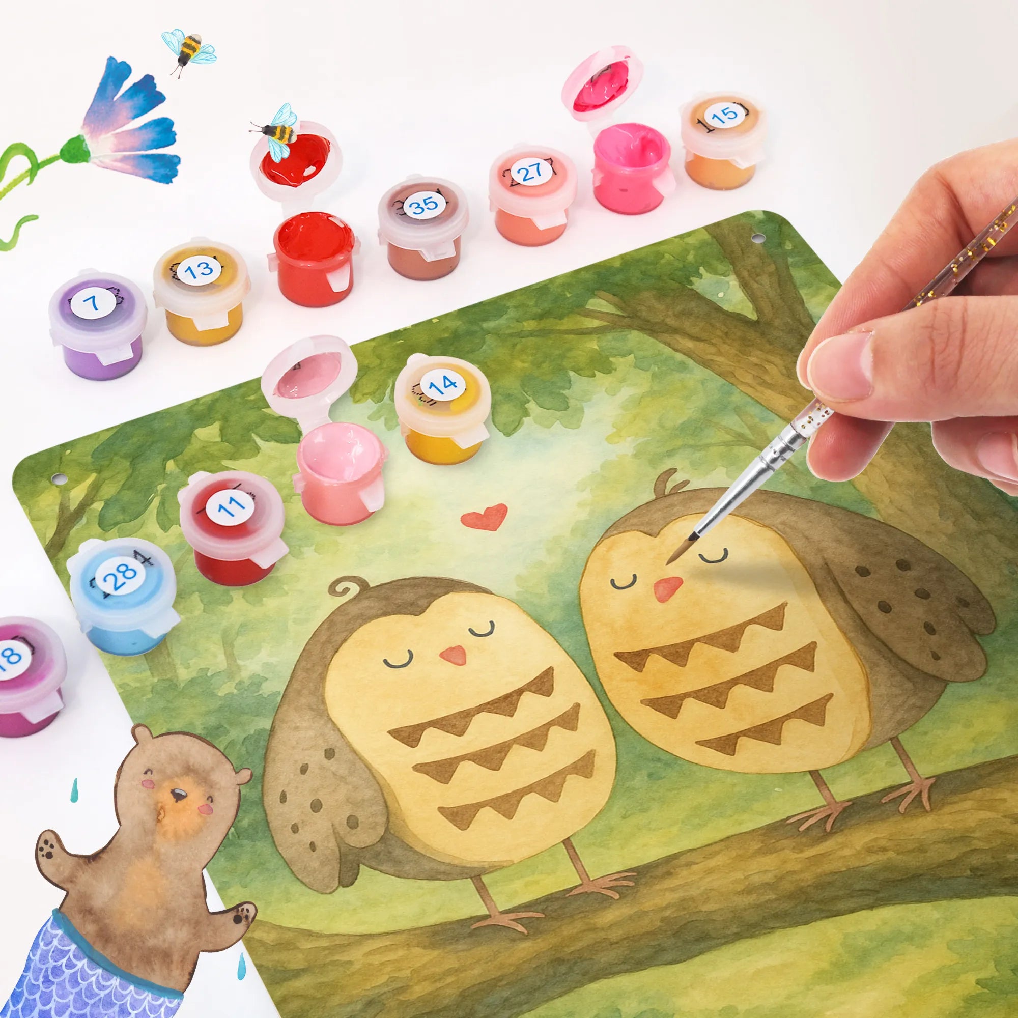 Metalowy szyld do malowania po numerach sowy miłość Design