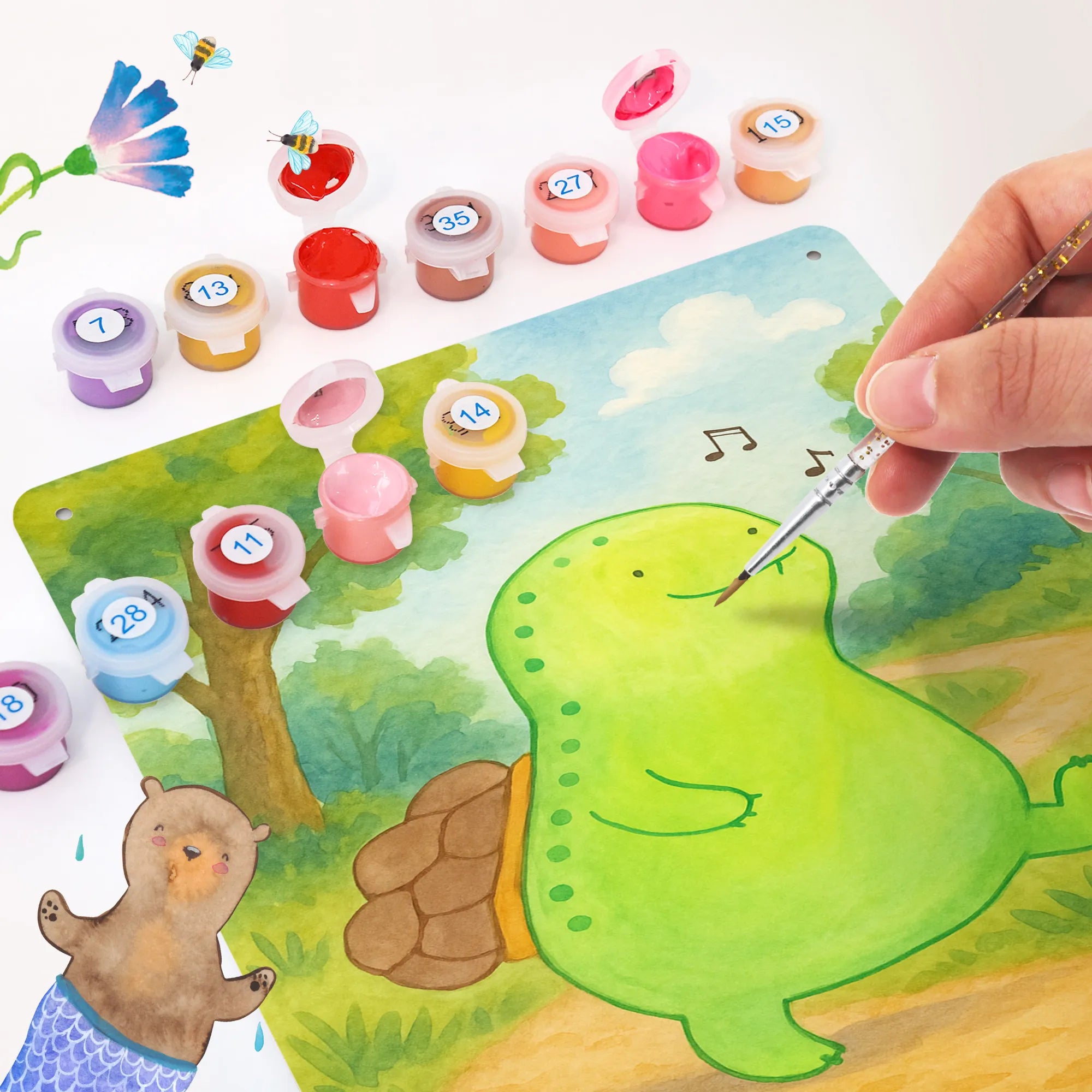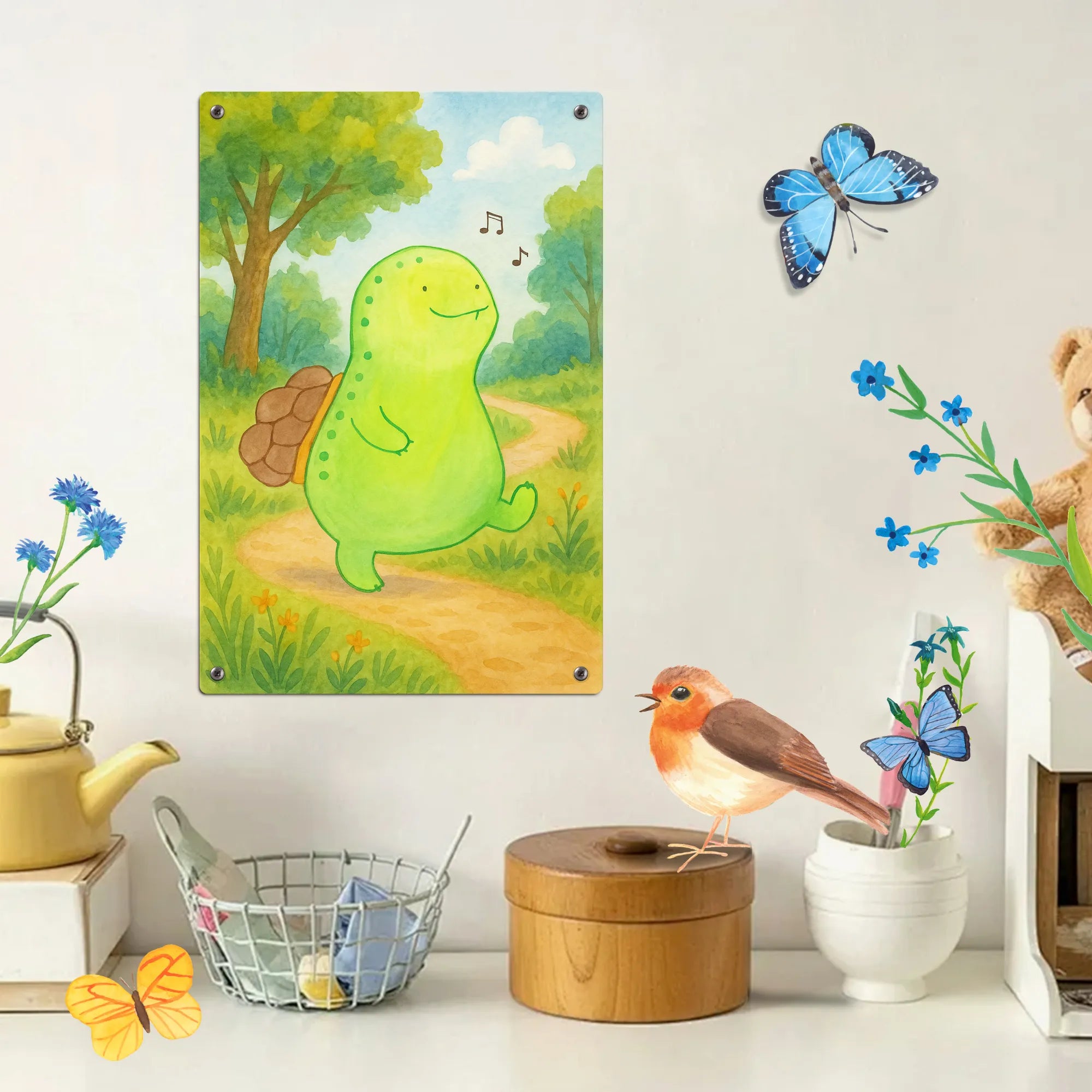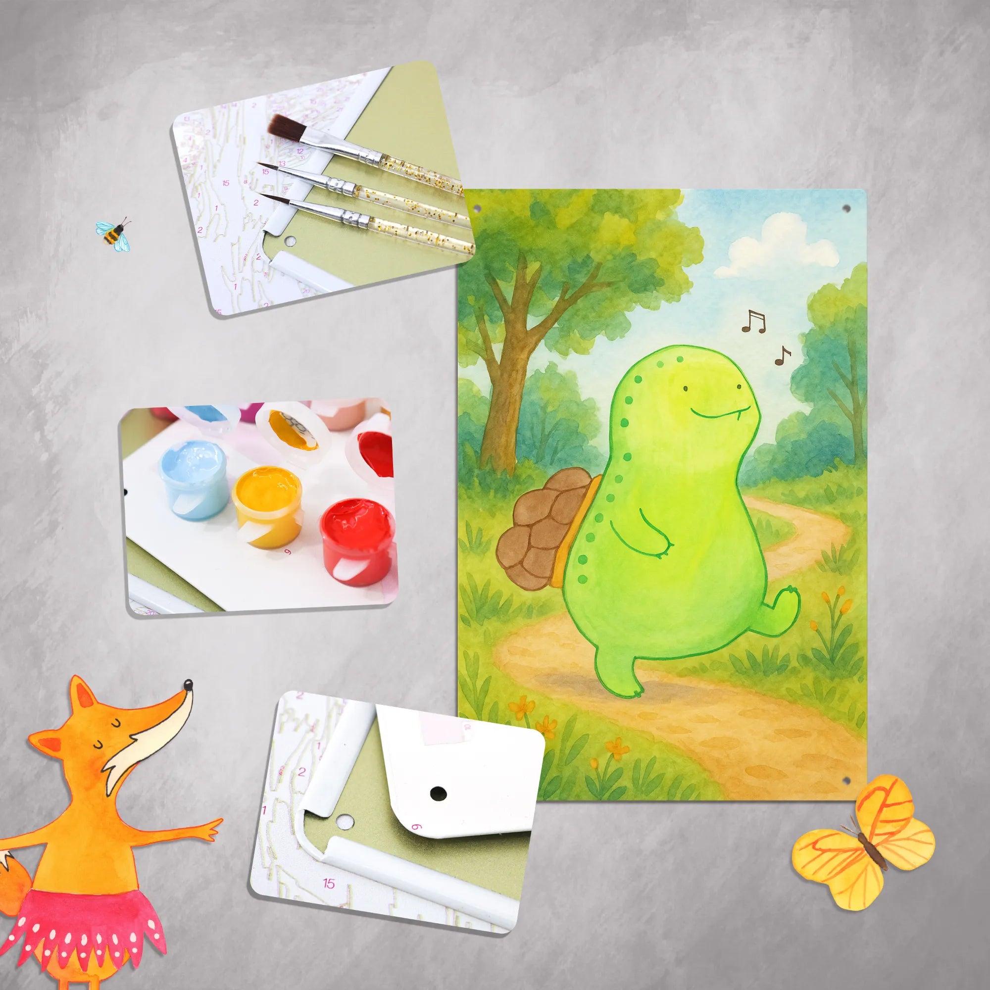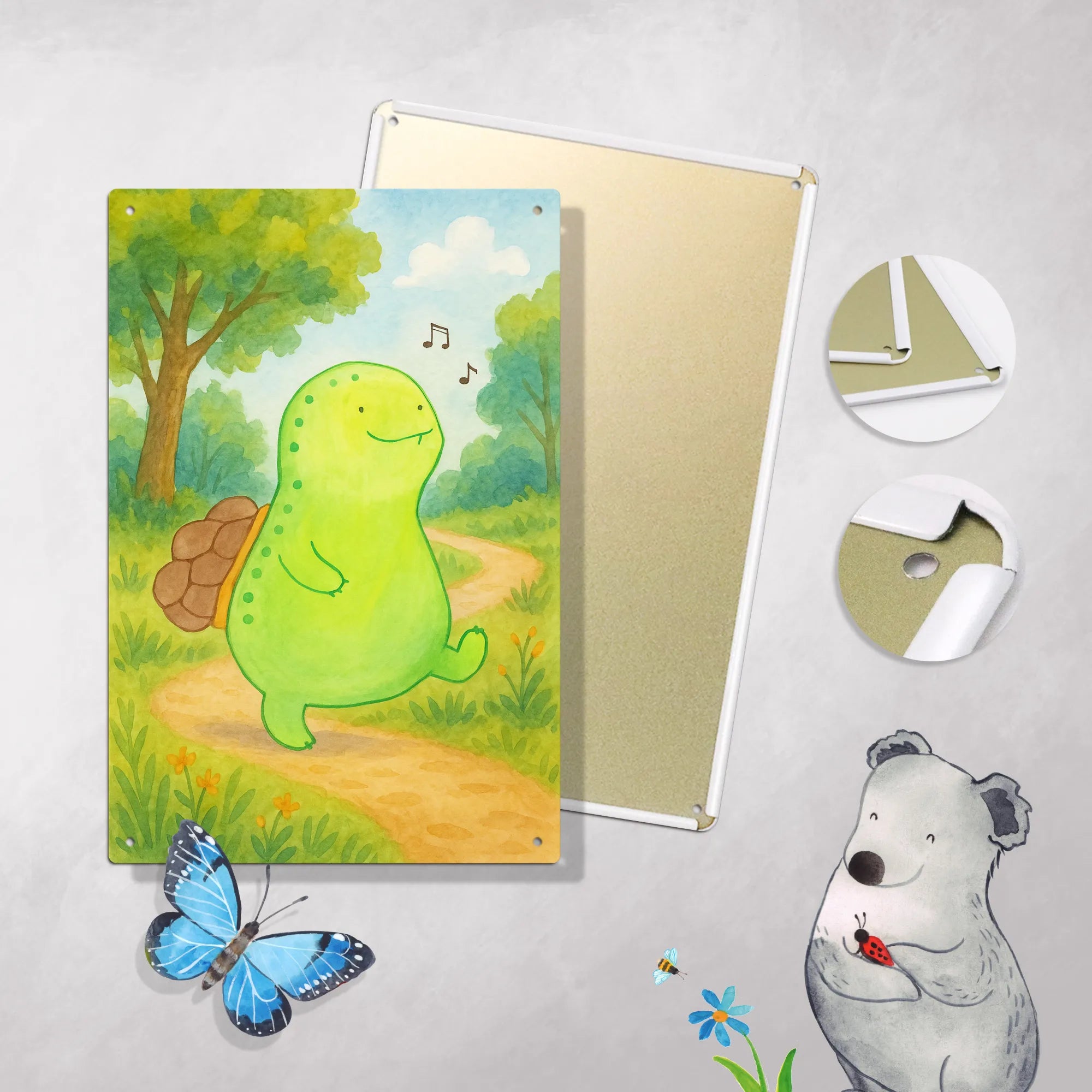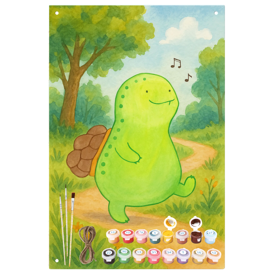 Metalowy szyld do malowania po numerach żółw gwizdać Design