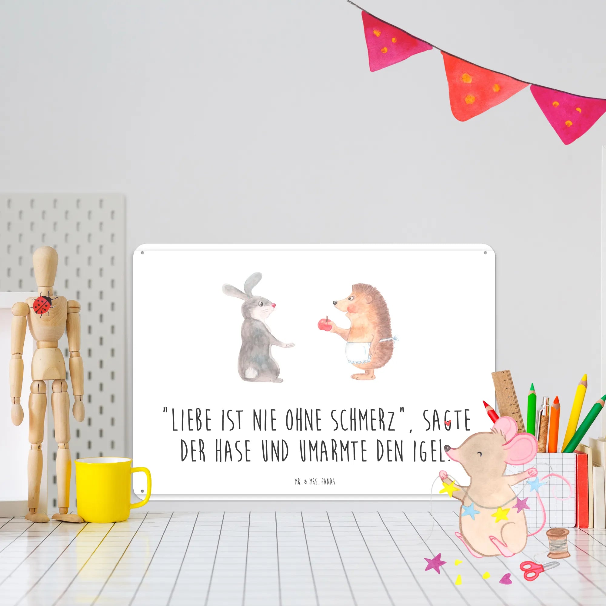 Metalowy szyld królik jeż - DIN A6 - biały