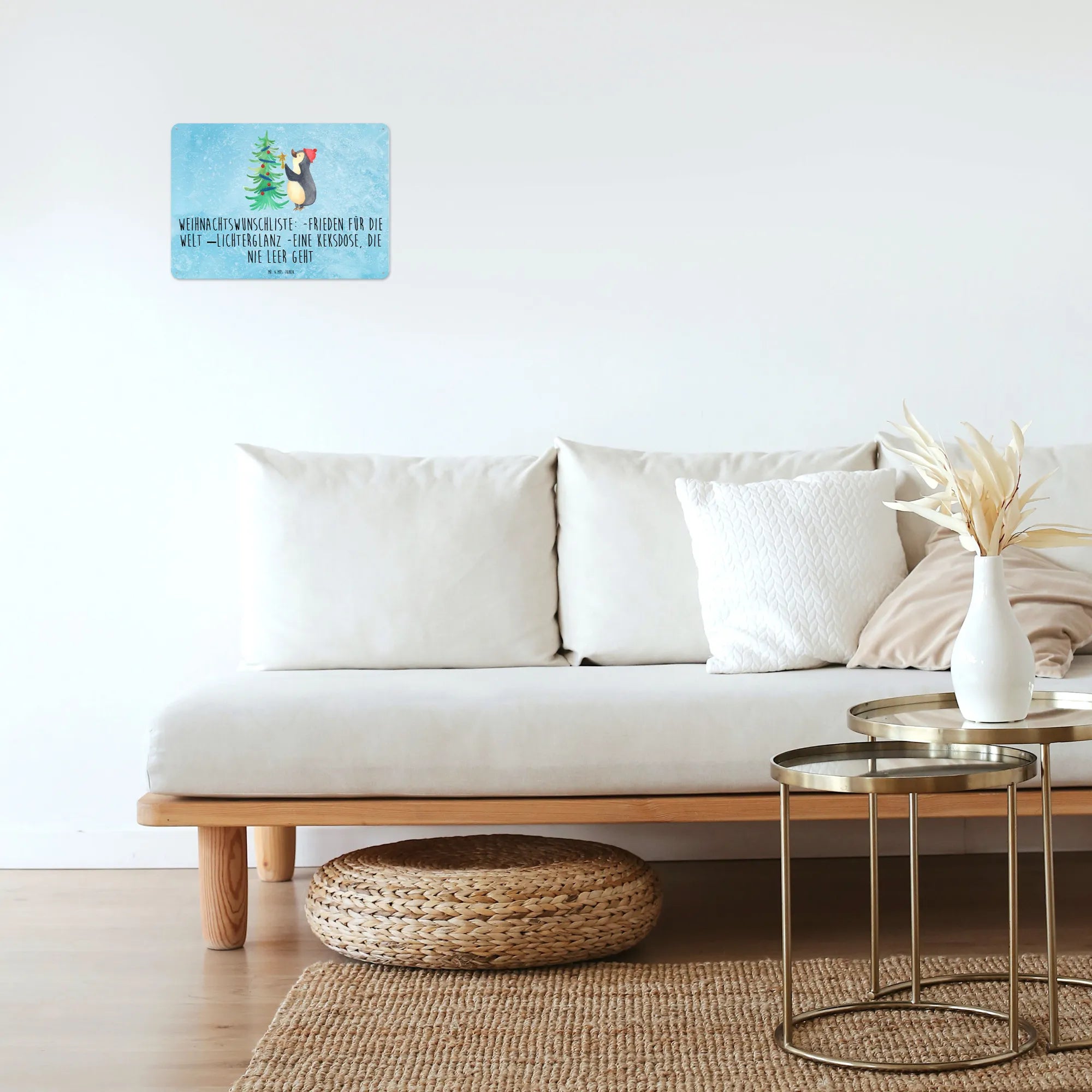 Metalowy szyld Pingwin choinka - DIN A6 - biały
