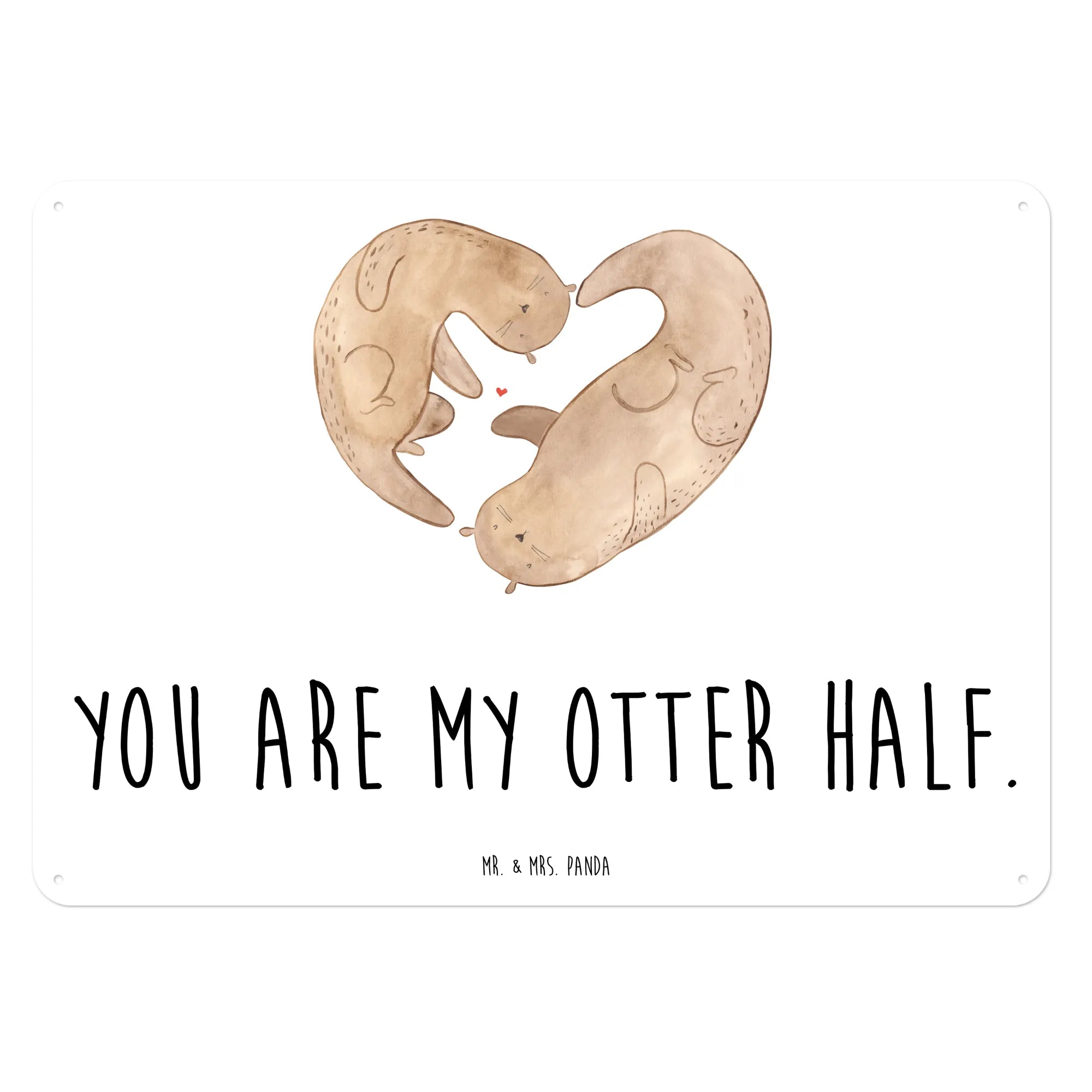 Metalowy szyld wydra serce - DIN A6 - Pastelowy szary