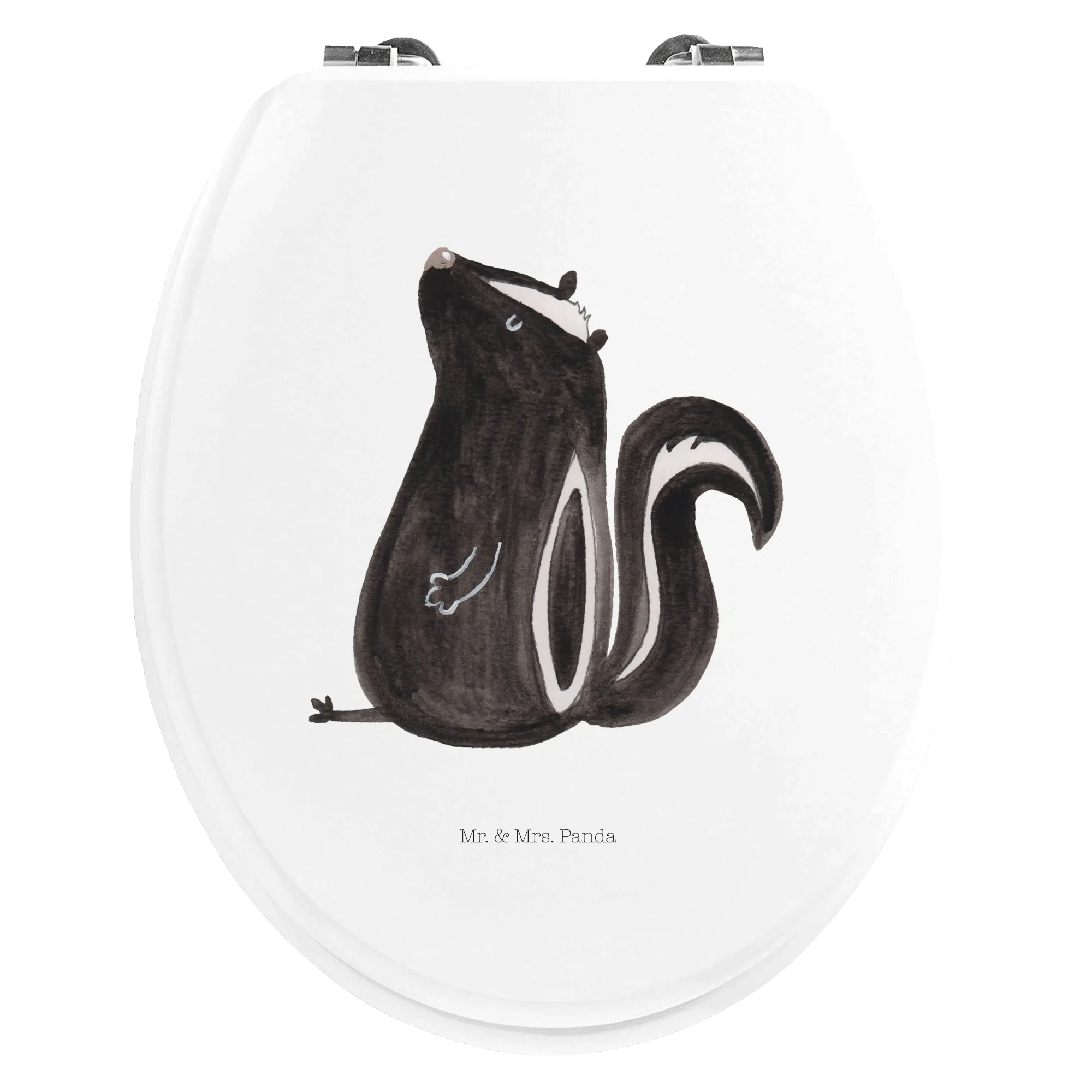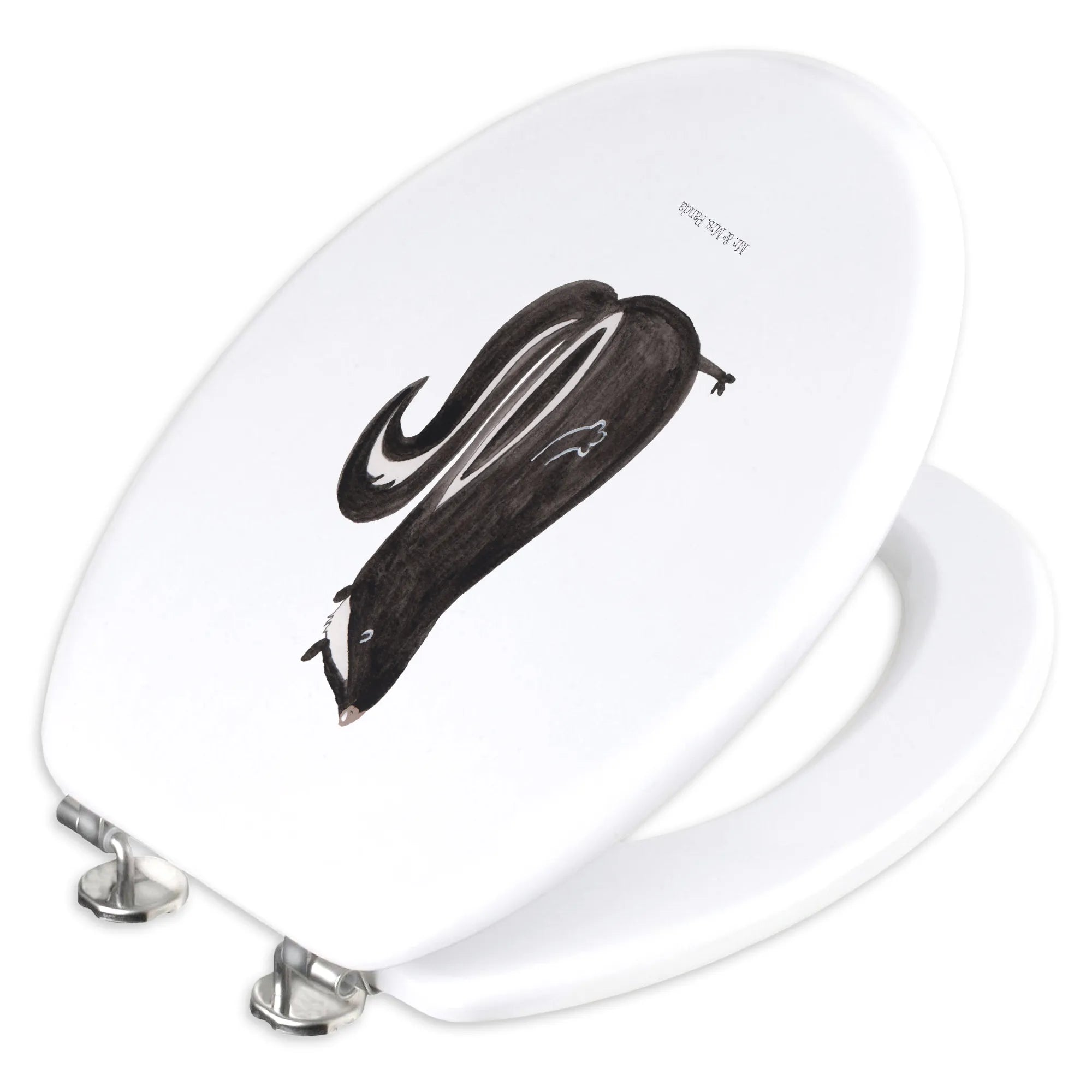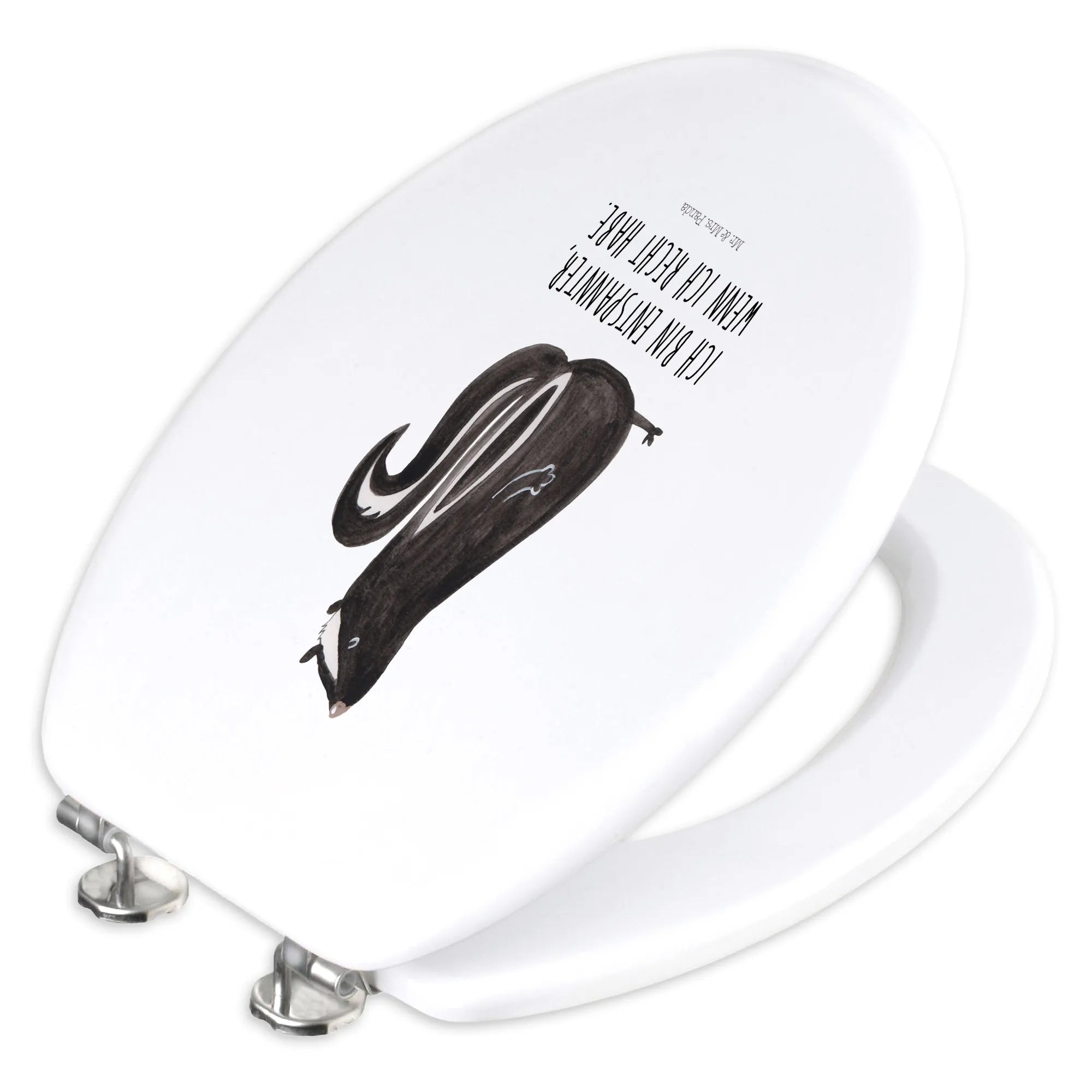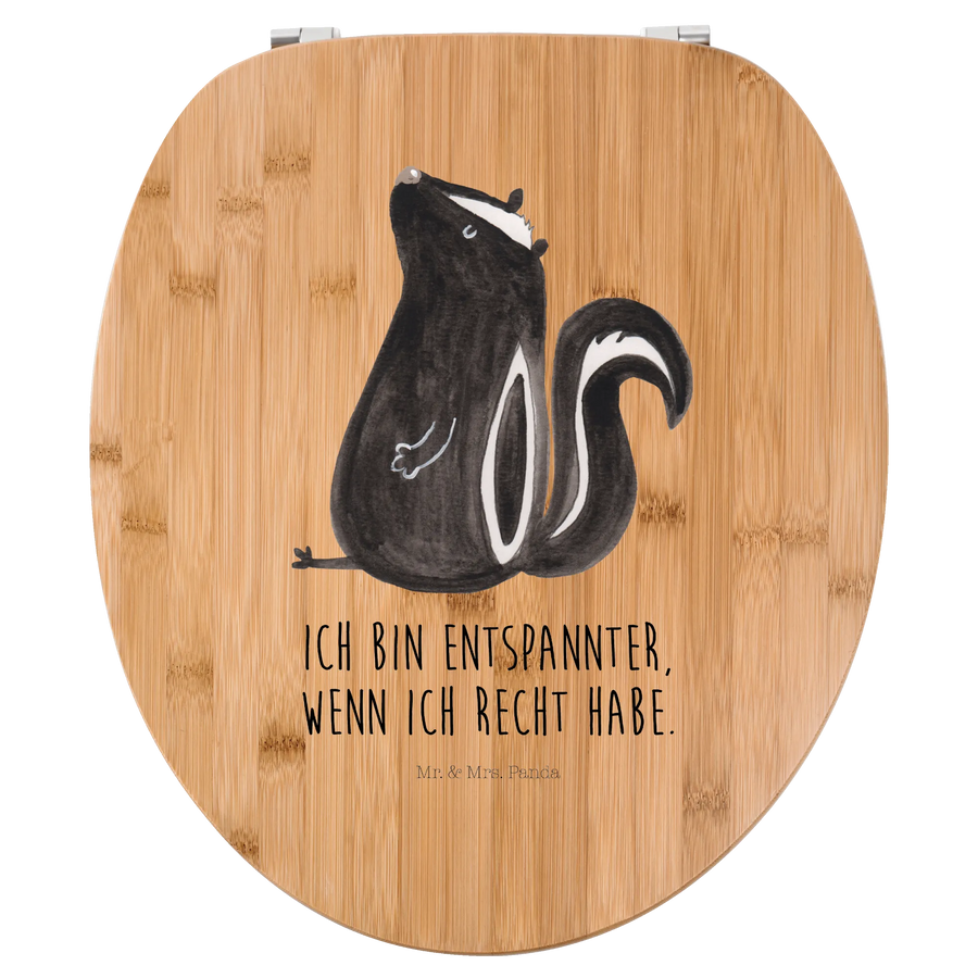 Bringe Charme ins Badezimmer mit dem Motiv WC Sitz „Stinktier sitzend“ aus der Stinktier - Kollektion von Mr. & Mrs. Panda. Dieses liebevoll in Aquarell gemalte Stinktier sitzt zufrieden und vermittelt Ruhe, Humor und ein Stück Natur. Der Slogan „Ich bin entspannter, wenn ich Recht habe.“ macht das Motiv zur perfekten Geschenkidee für Freunde, Kollegen und den eigenen Haushalt.