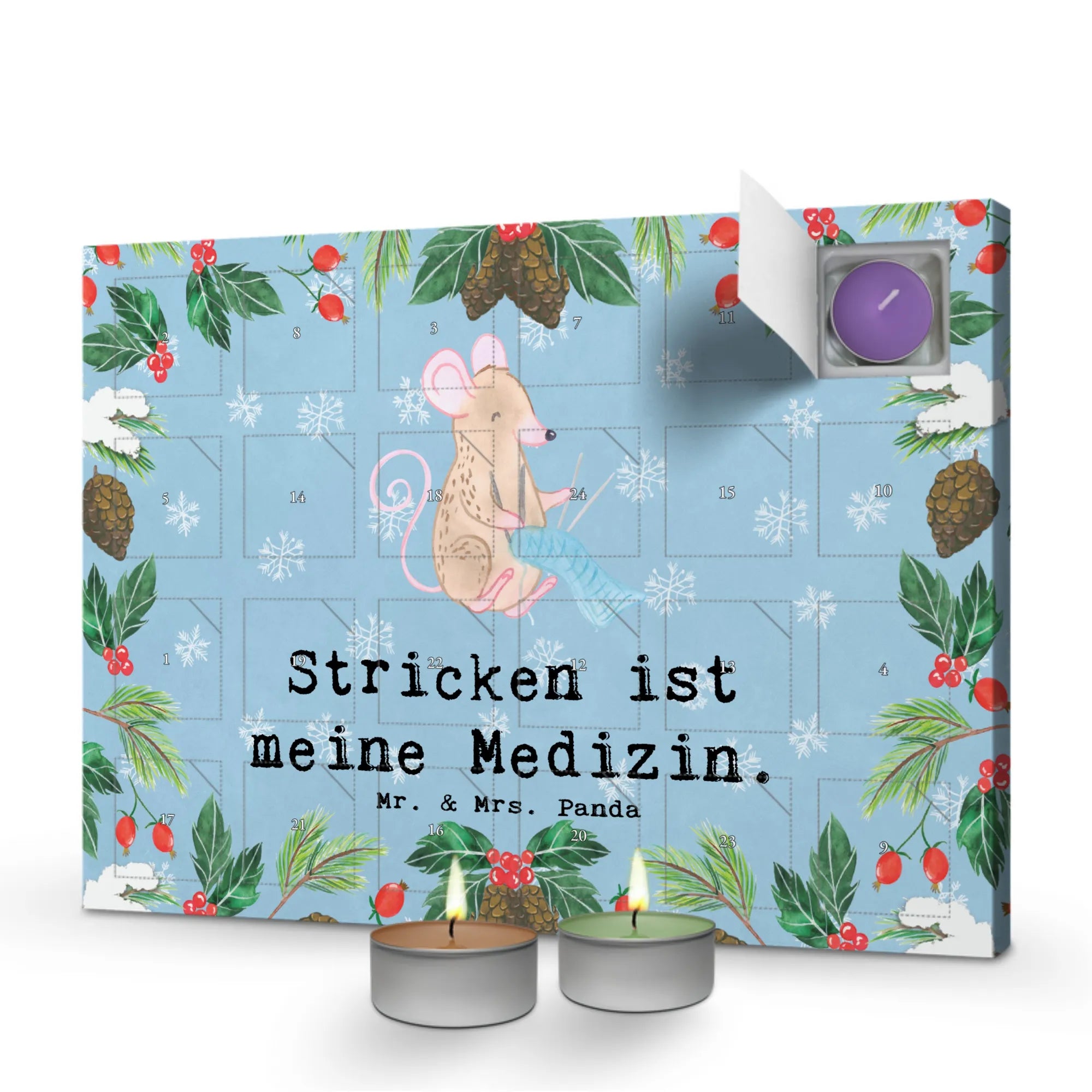 Der Duftkerzen Adventskalender Maus Stricken Medizin von Mr. & Mrs. Panda ist das perfekte Geschenk für alle Strickfans und Hobbyisten! 🌟 Mit einem zauberhaften Motiv einer süßen Maus, die voller Begeisterung ihren Schal strickt, bringt dieser Adventskalender nicht nur Weihnachtsfreude, sondern auch die richtige Portion Entspannung in die kalte Jahreszeit. In der einzigartigen Hobby & Sport Kollektion bieten wir mehr als 200 liebevoll handgezeichnete Motive, und dieser Kalender sticht ganz besonders hervor. Täglich erwartet dich ein neuer, weihnachtlicher Duft – ob Vanille, Lavendel, Apfel-Zimt oder Oud Wood, jeder Tag bringt ein neues olfaktorisches Erlebnis!