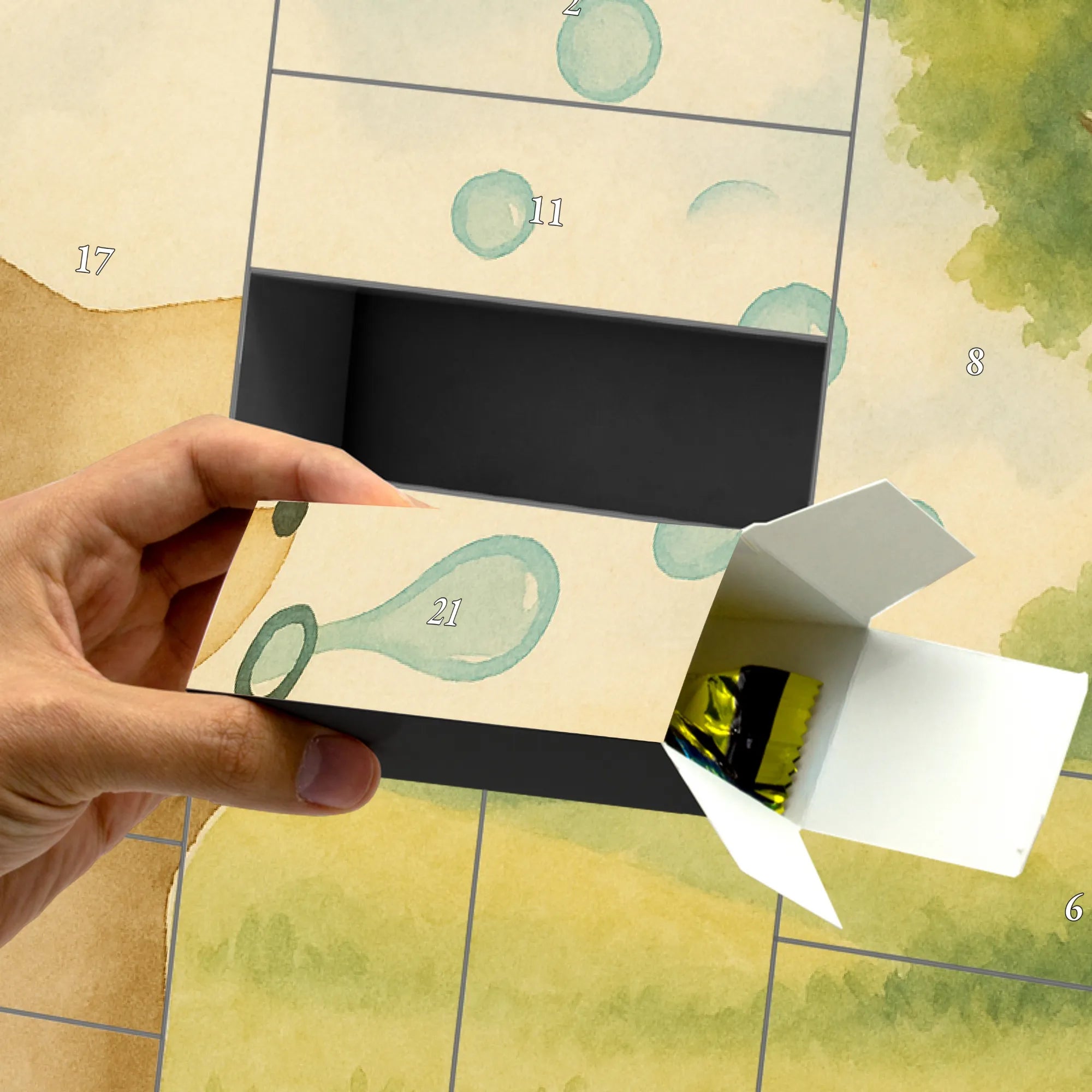 Warum er so besonders ist: Dieser Adventskalender ist befüllbar und bietet dir die Freiheit, 24 ganz persönliche Überraschungen zu verstecken. Ob kleine Süßigkeiten, Mini-Geschenke, Gutscheine oder selbstgeschriebene Botschaften – du entscheidest, welche Freuden dahinterstecken. So wird jeder Dezembertag zu etwas Einzigartigem.