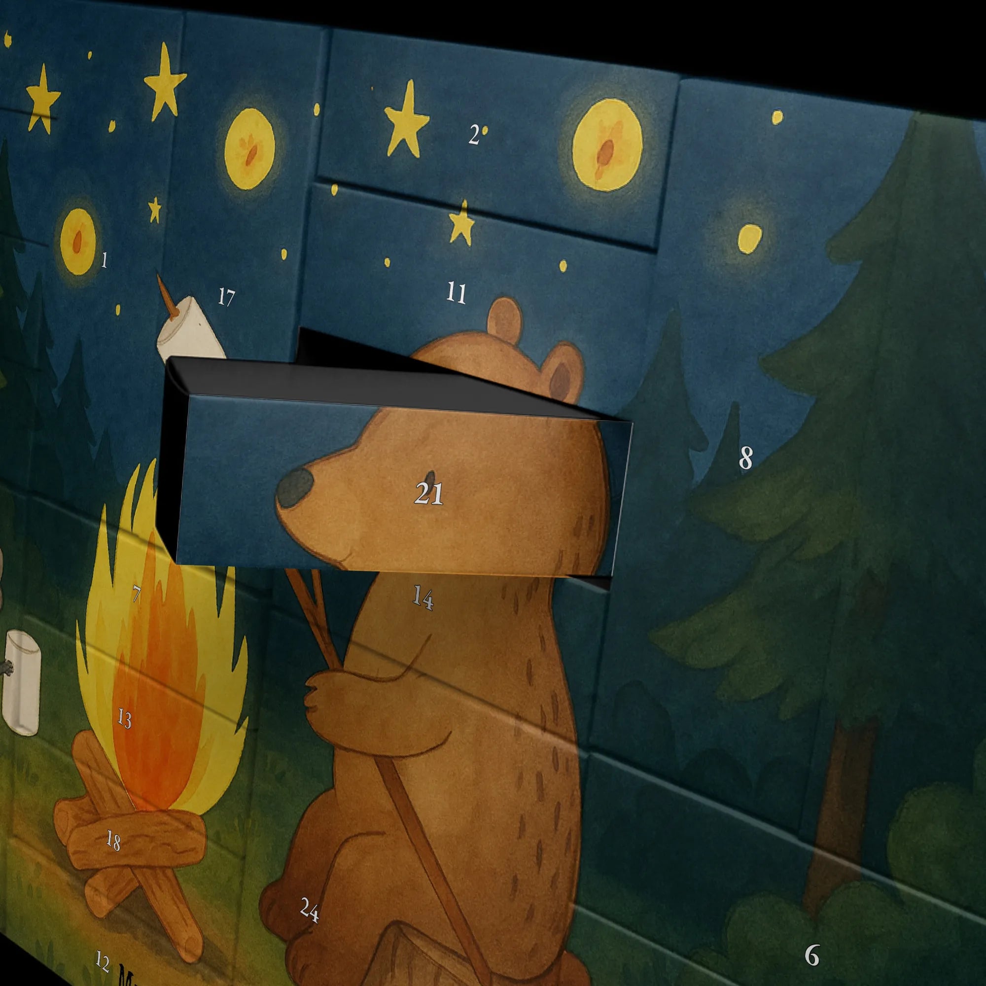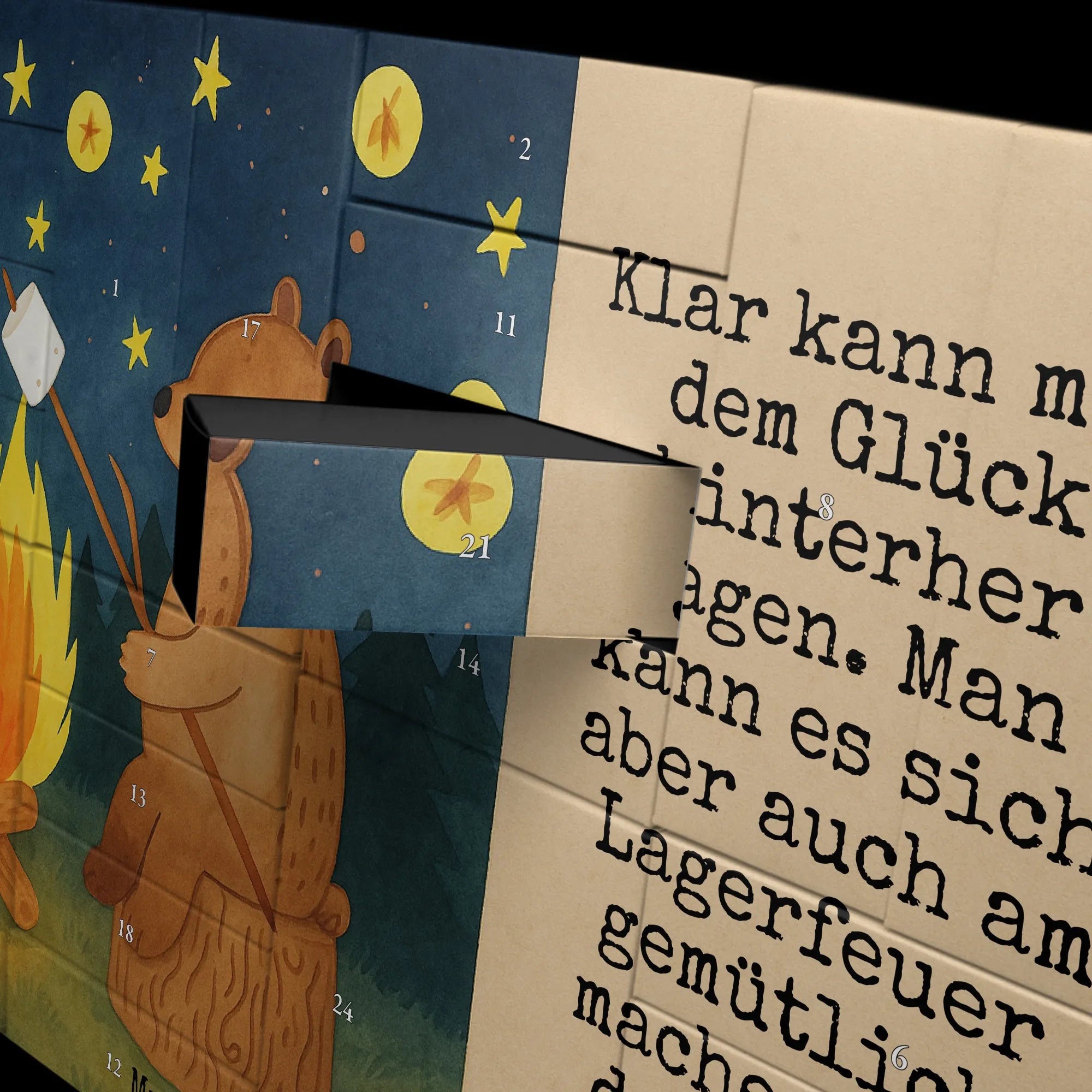 Niedźwiedź i biedronka przy ognisku Design - z napisem