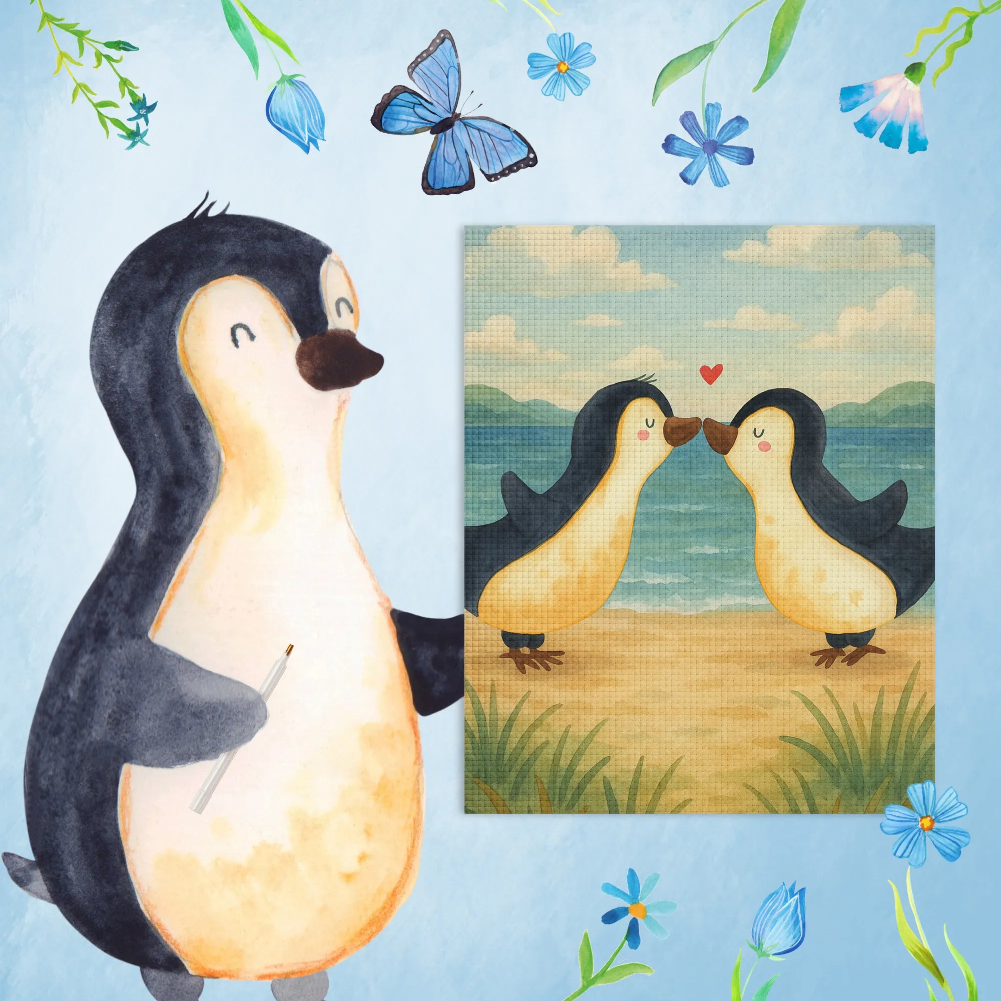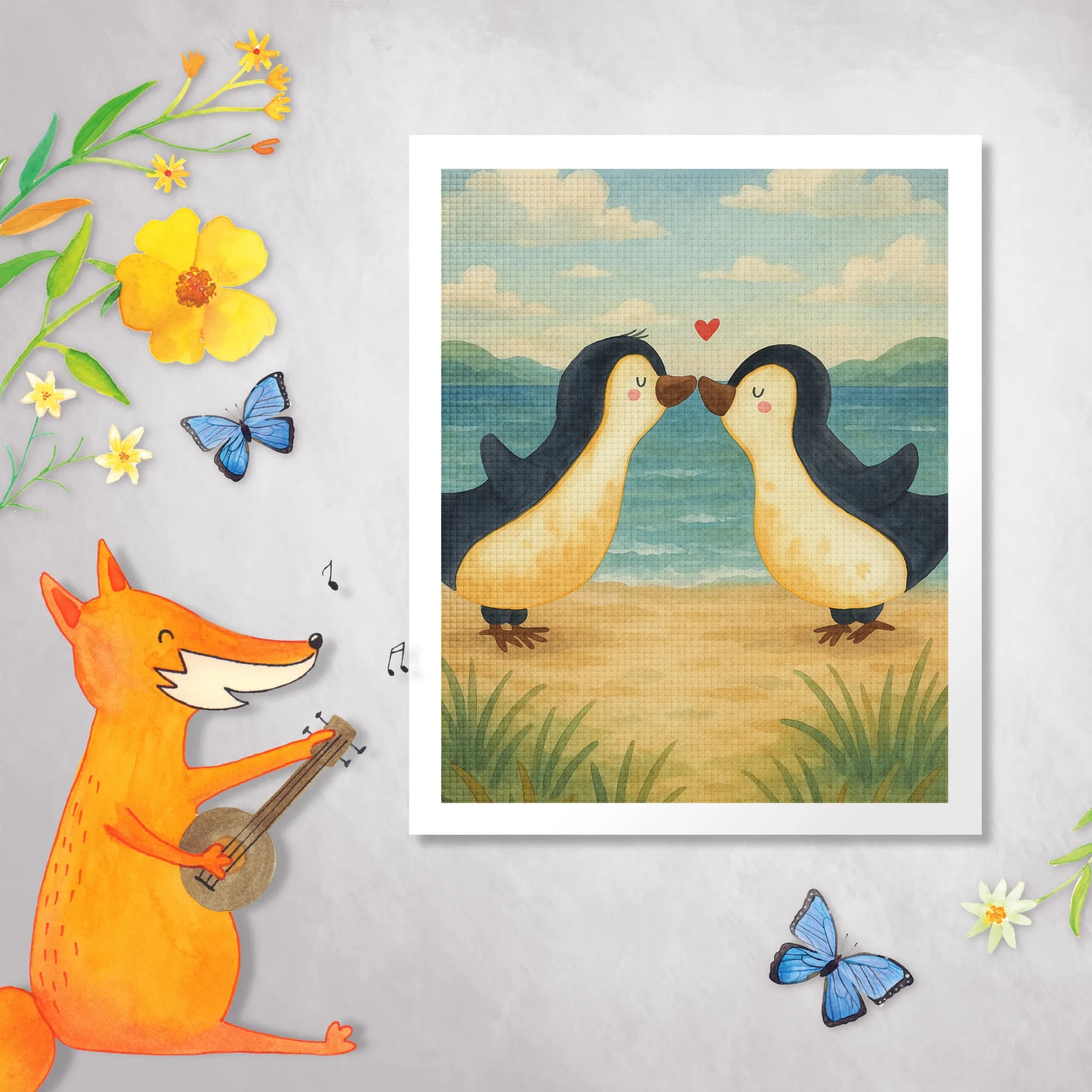 Obraz diamentowy Pingwiny Pocałunek Design - Ohne Rahmen