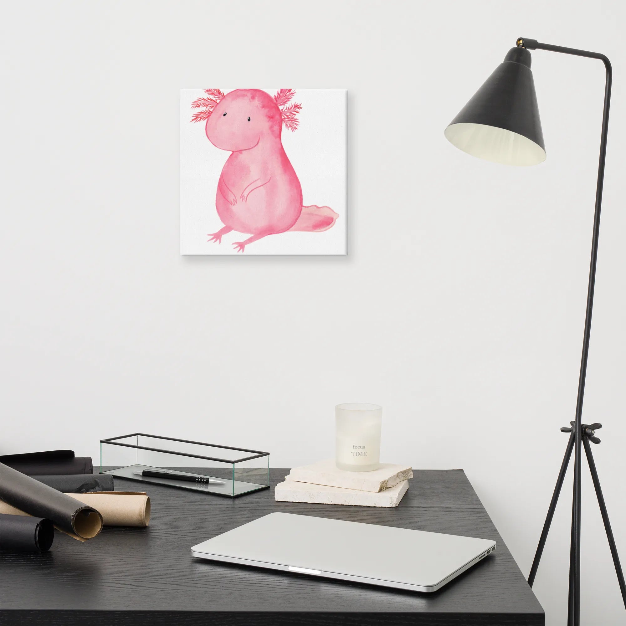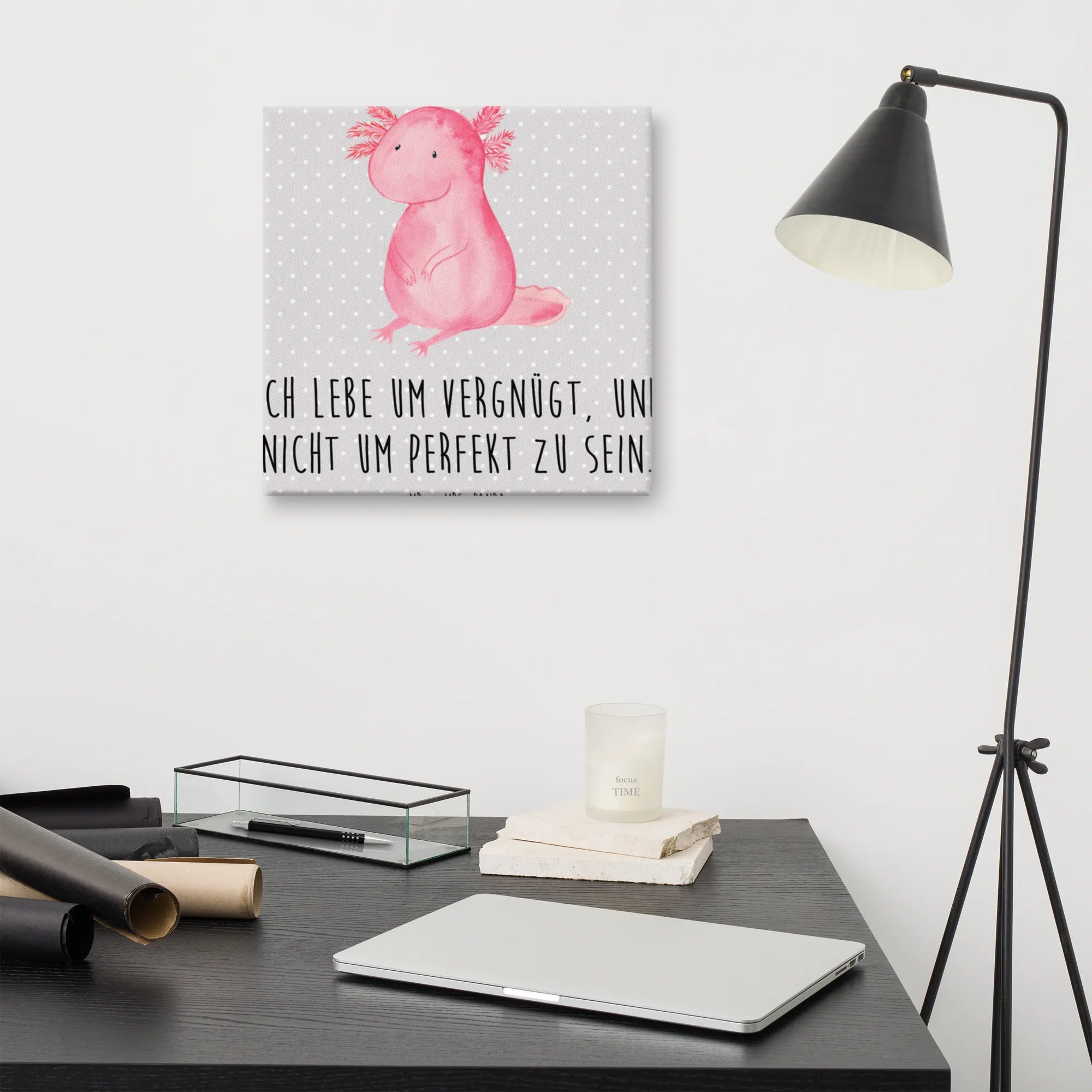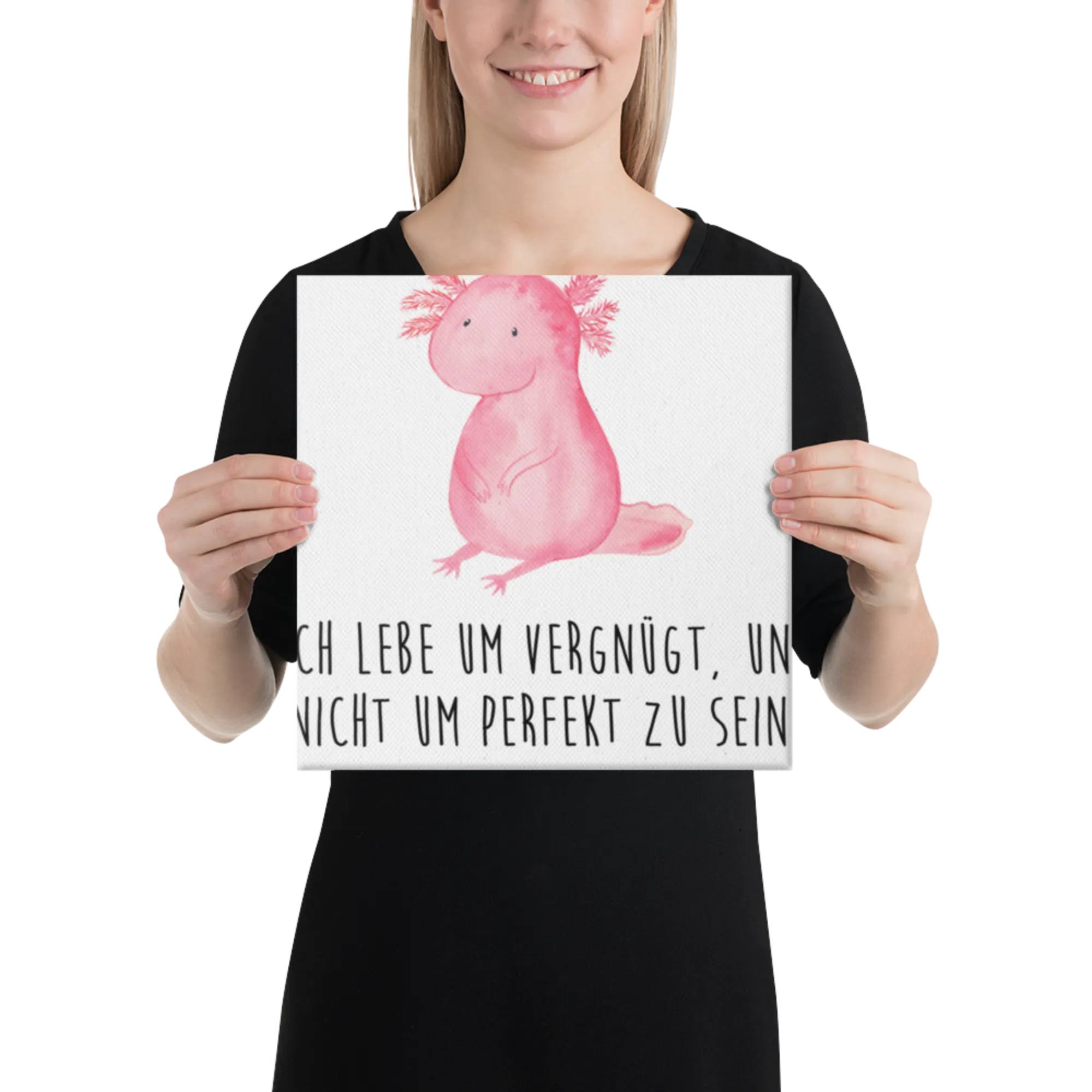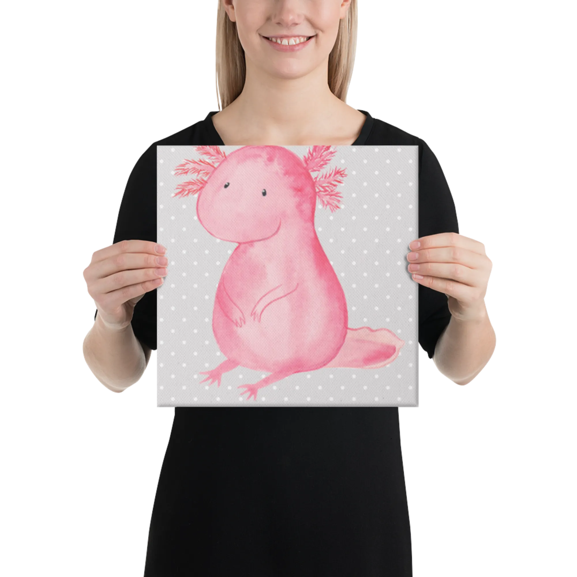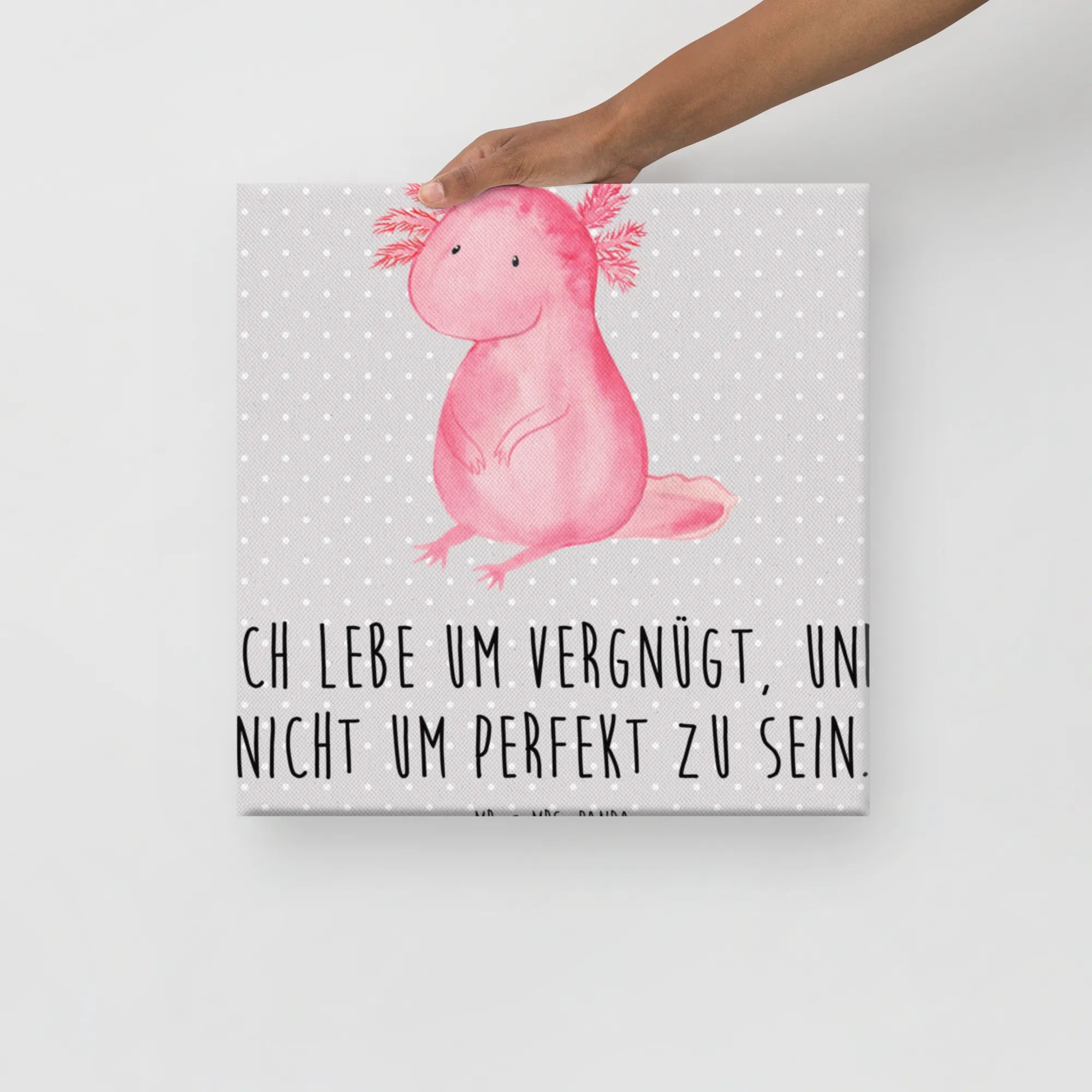 Obraz na płótnie aksolotl null - 40 x 40 cm - z napisem - Pastelowy szary