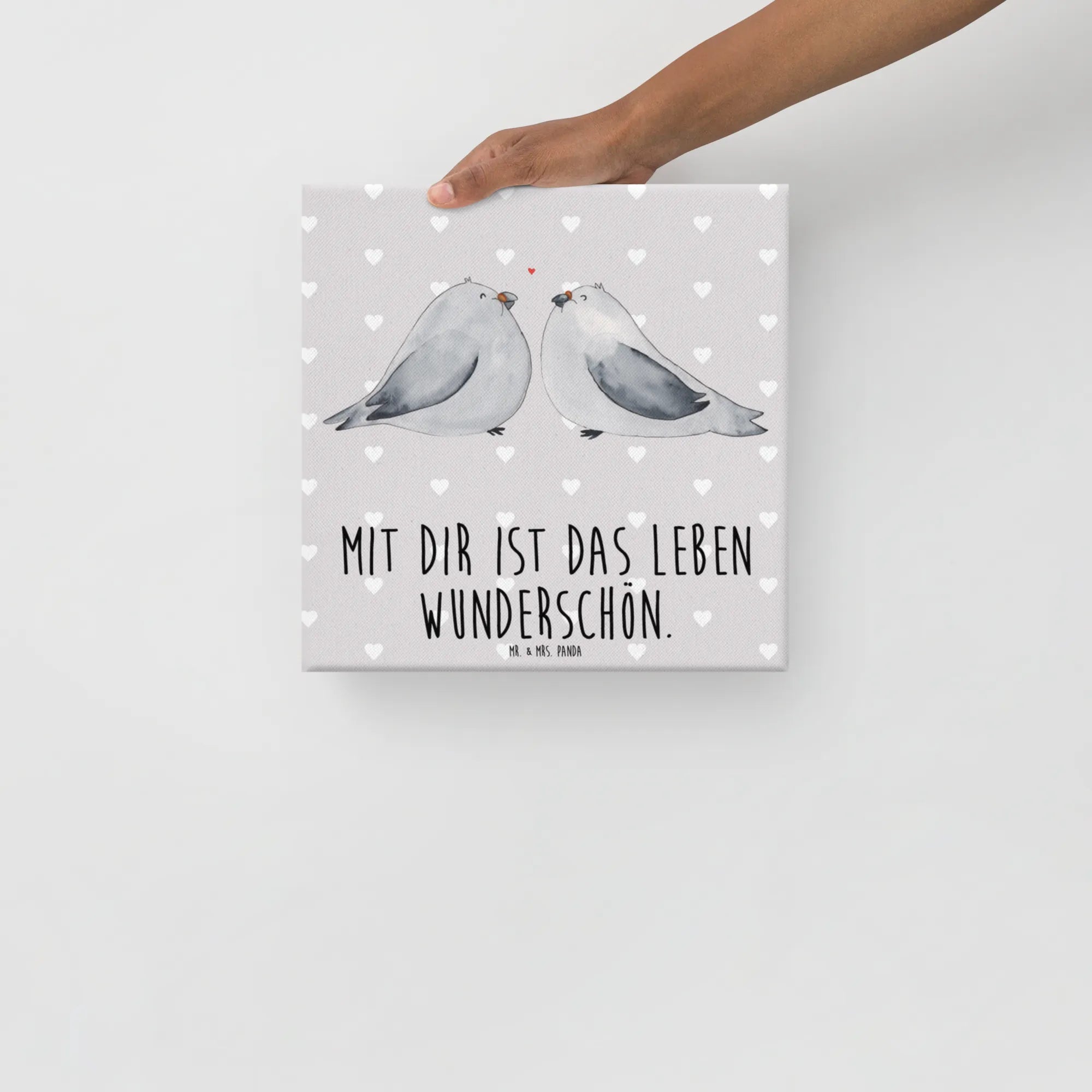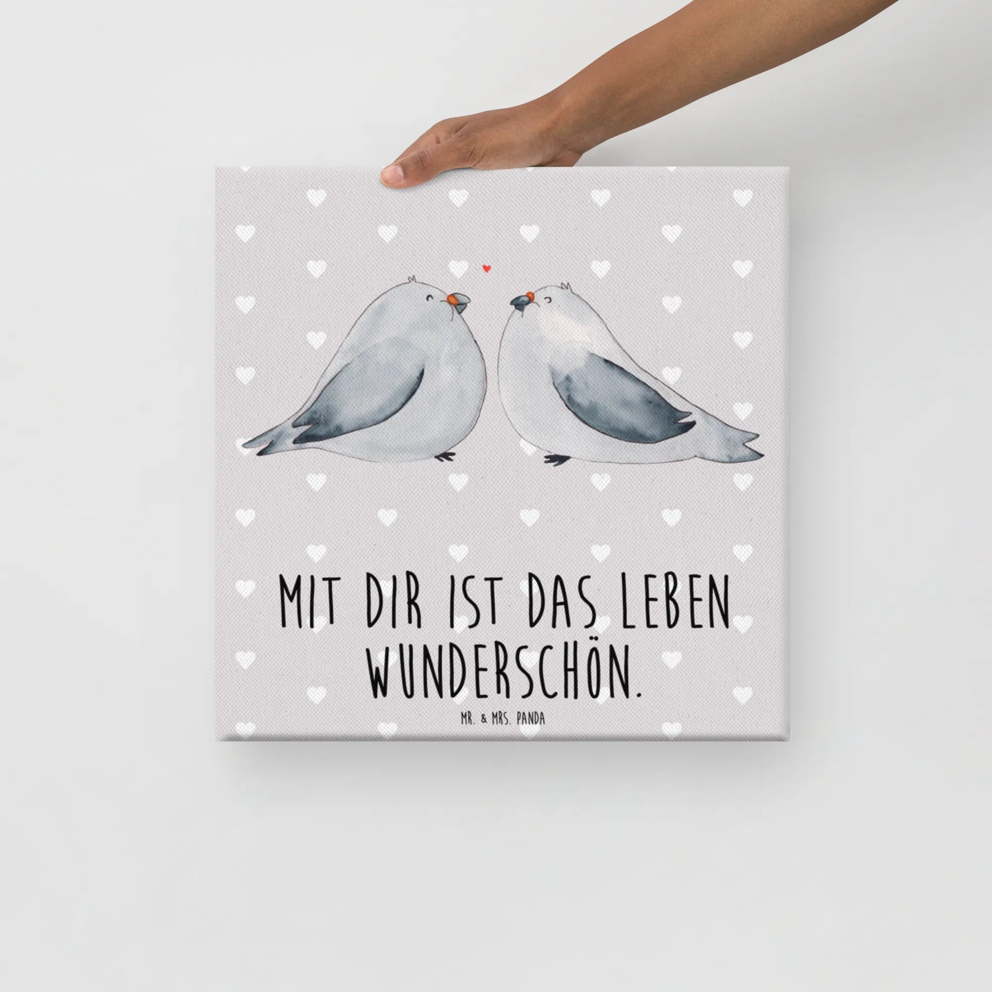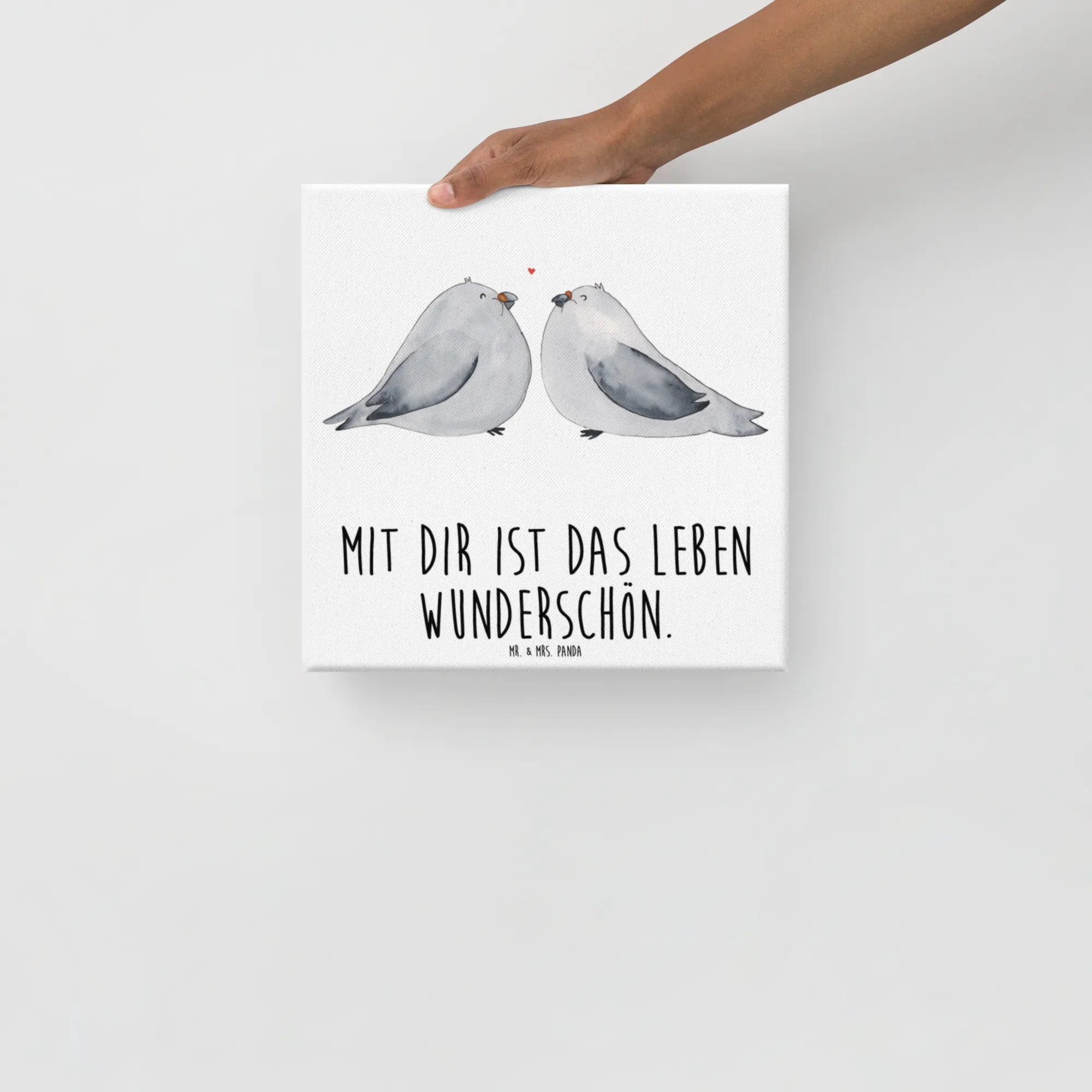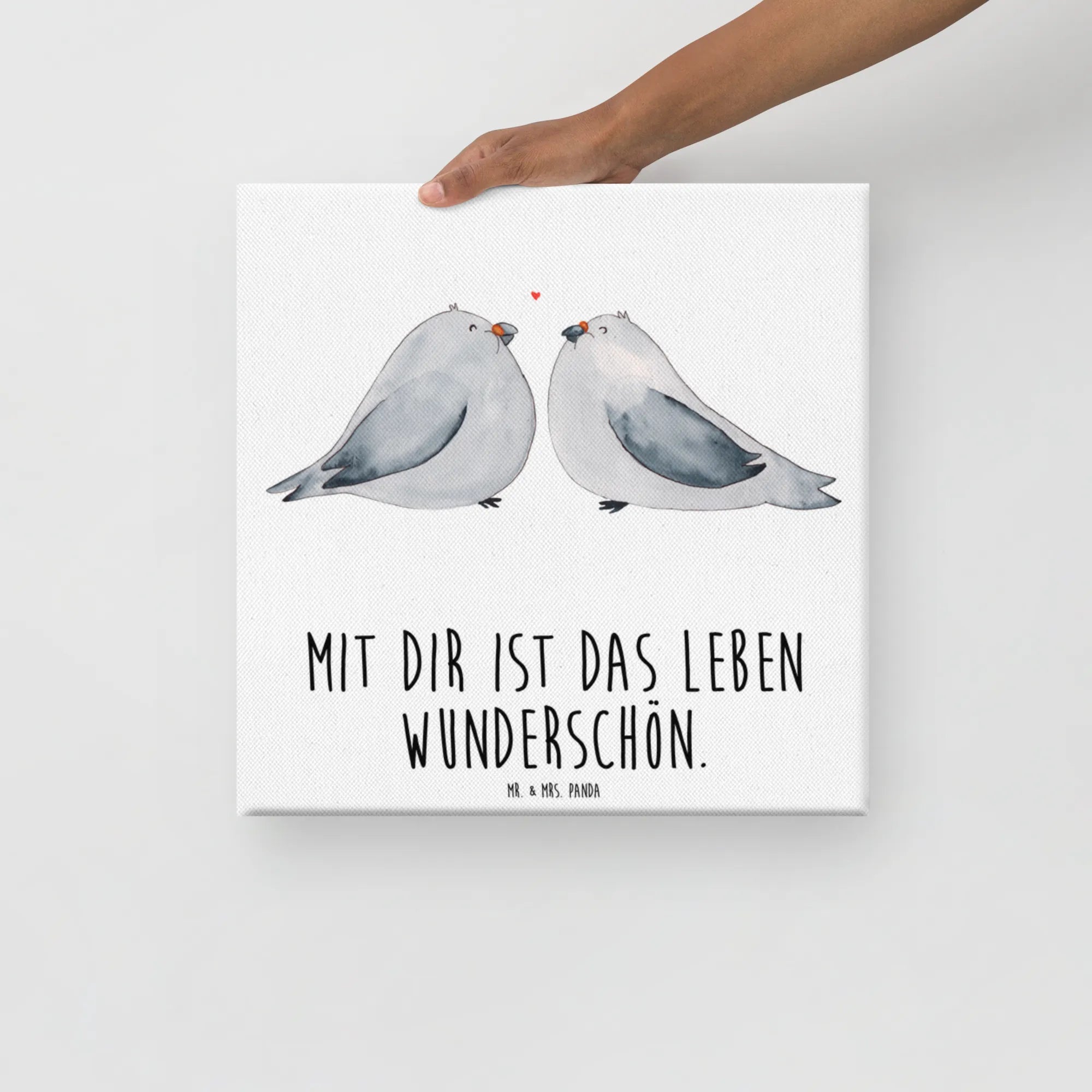 Obraz na płótnie Gołębia miłość - 40 x 40 cm - z napisem - biały