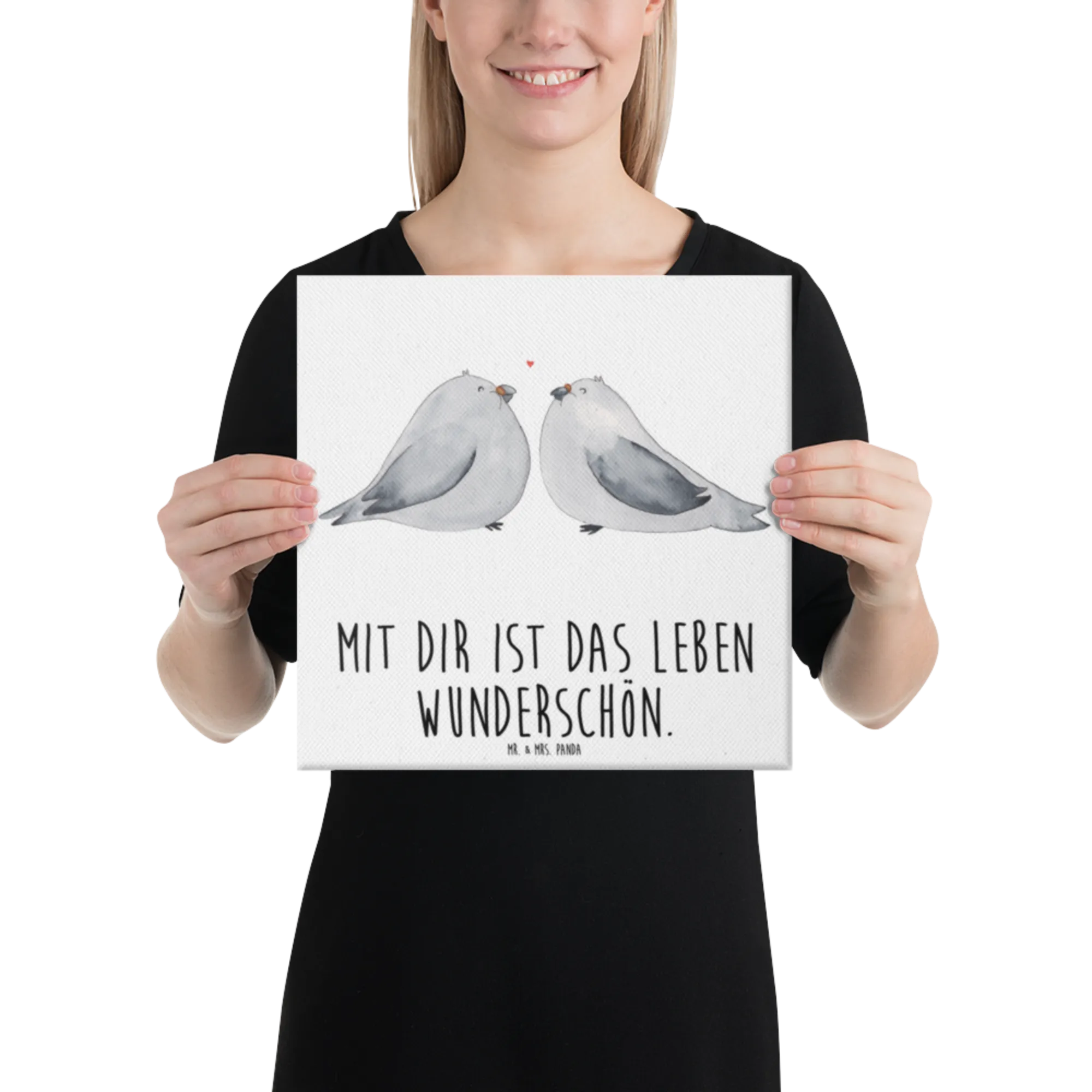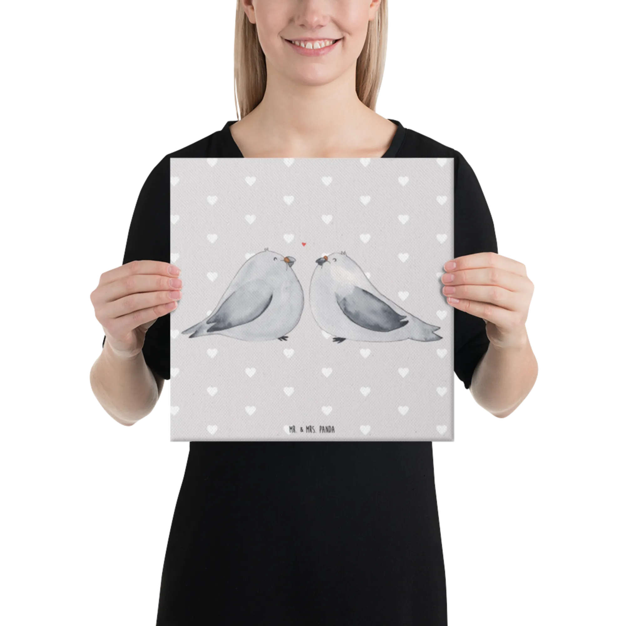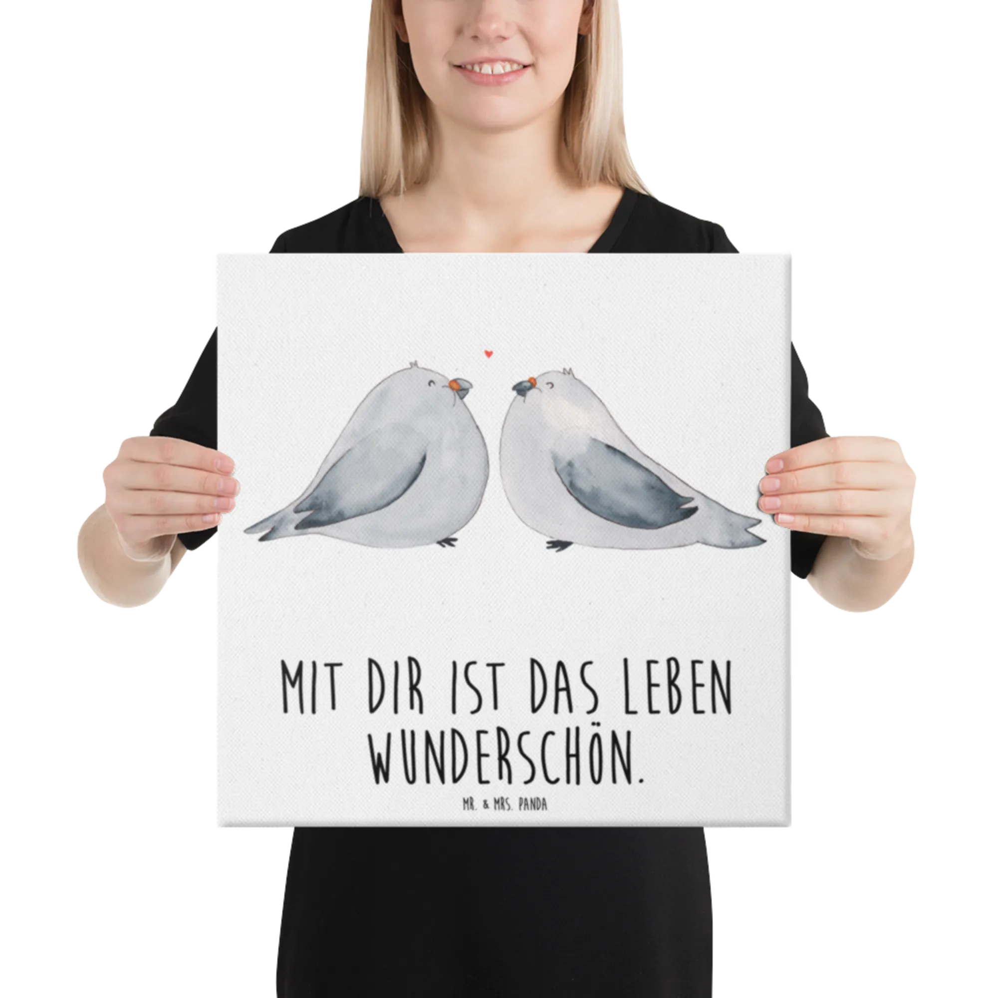 Obraz na płótnie Gołębia miłość - 40 x 40 cm - z napisem - biały