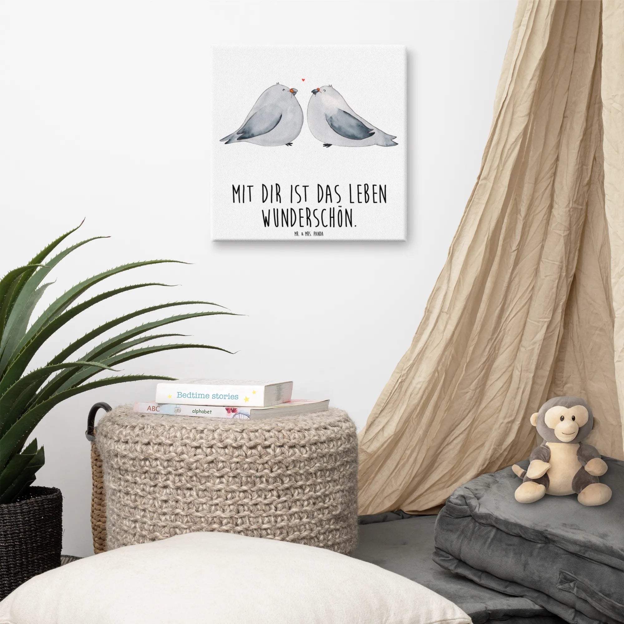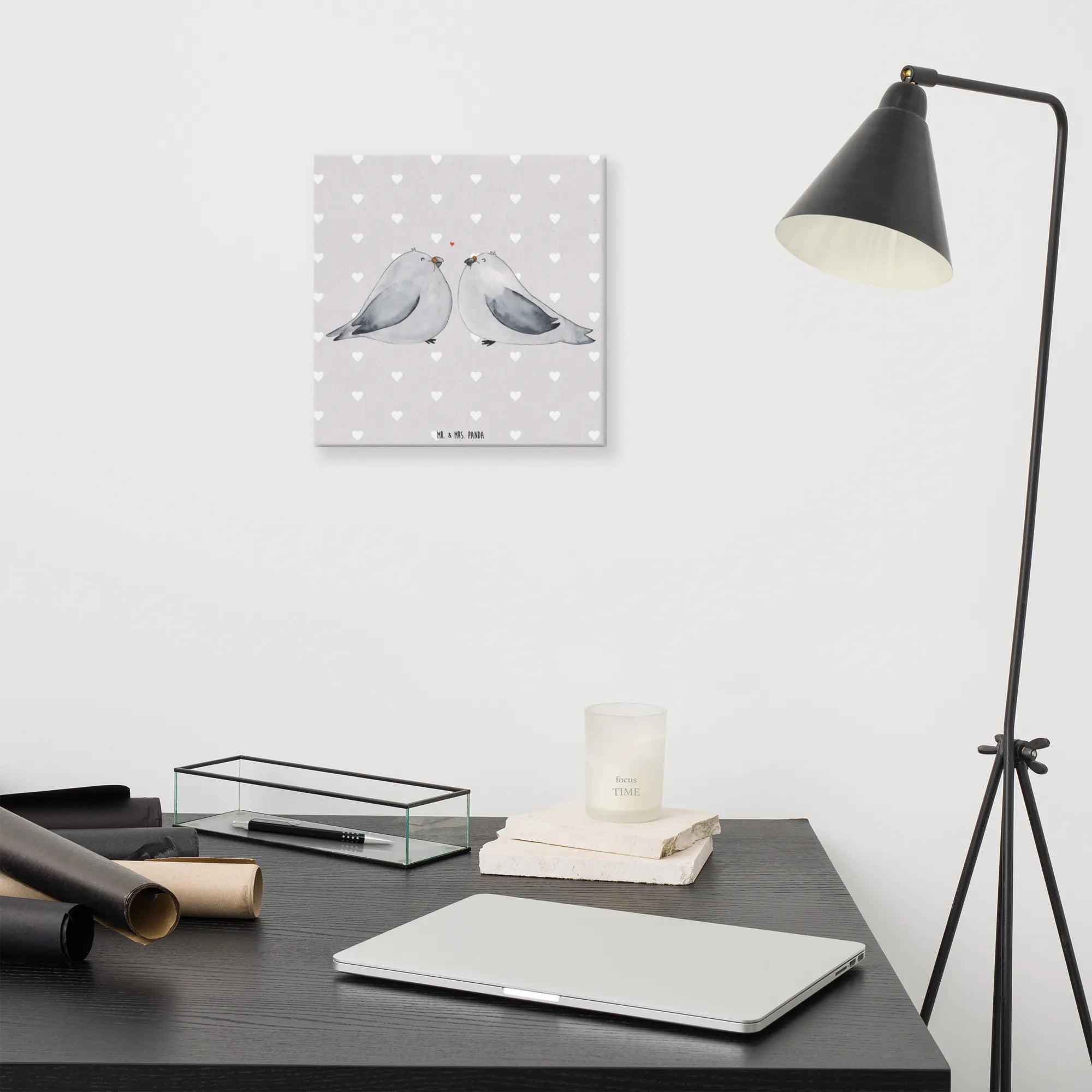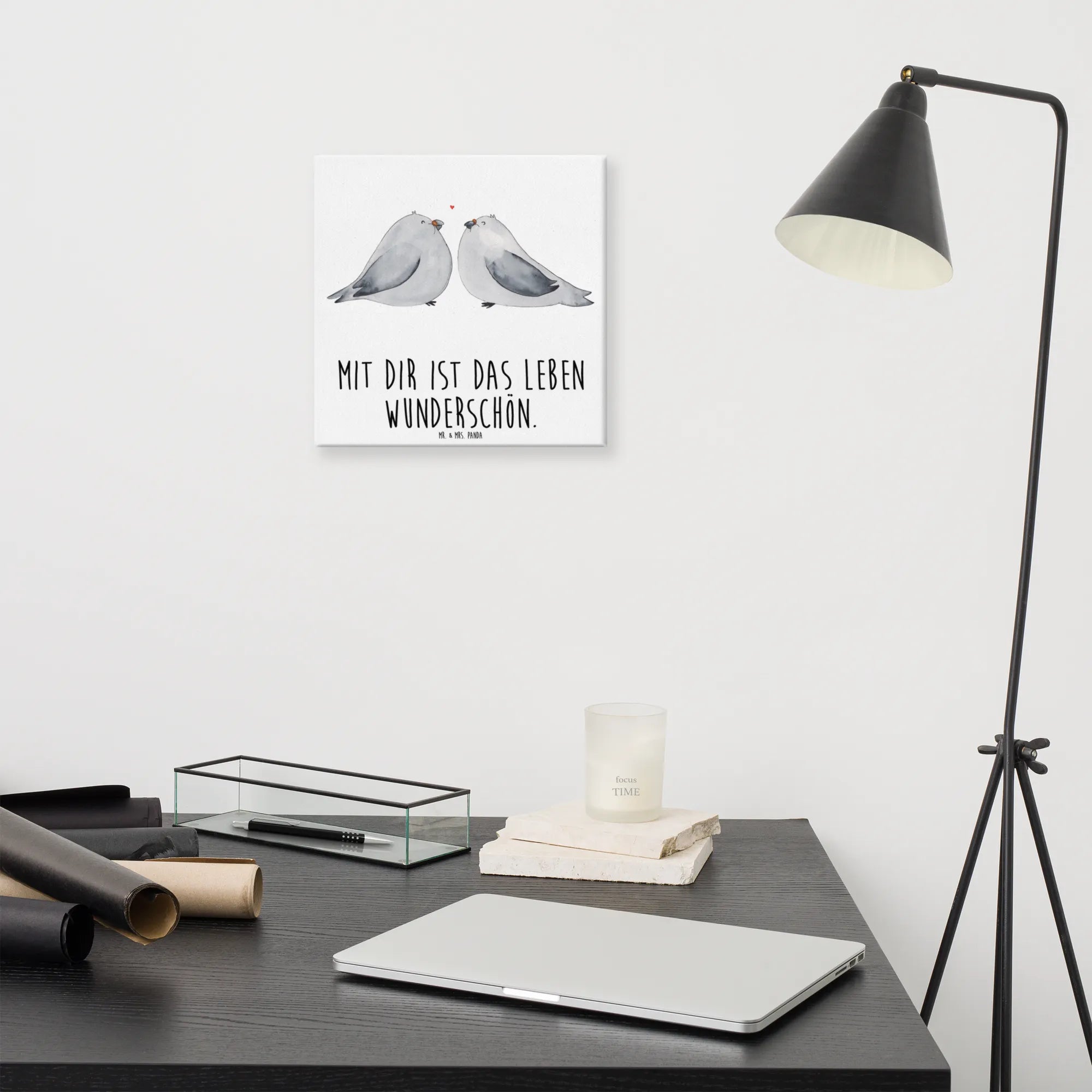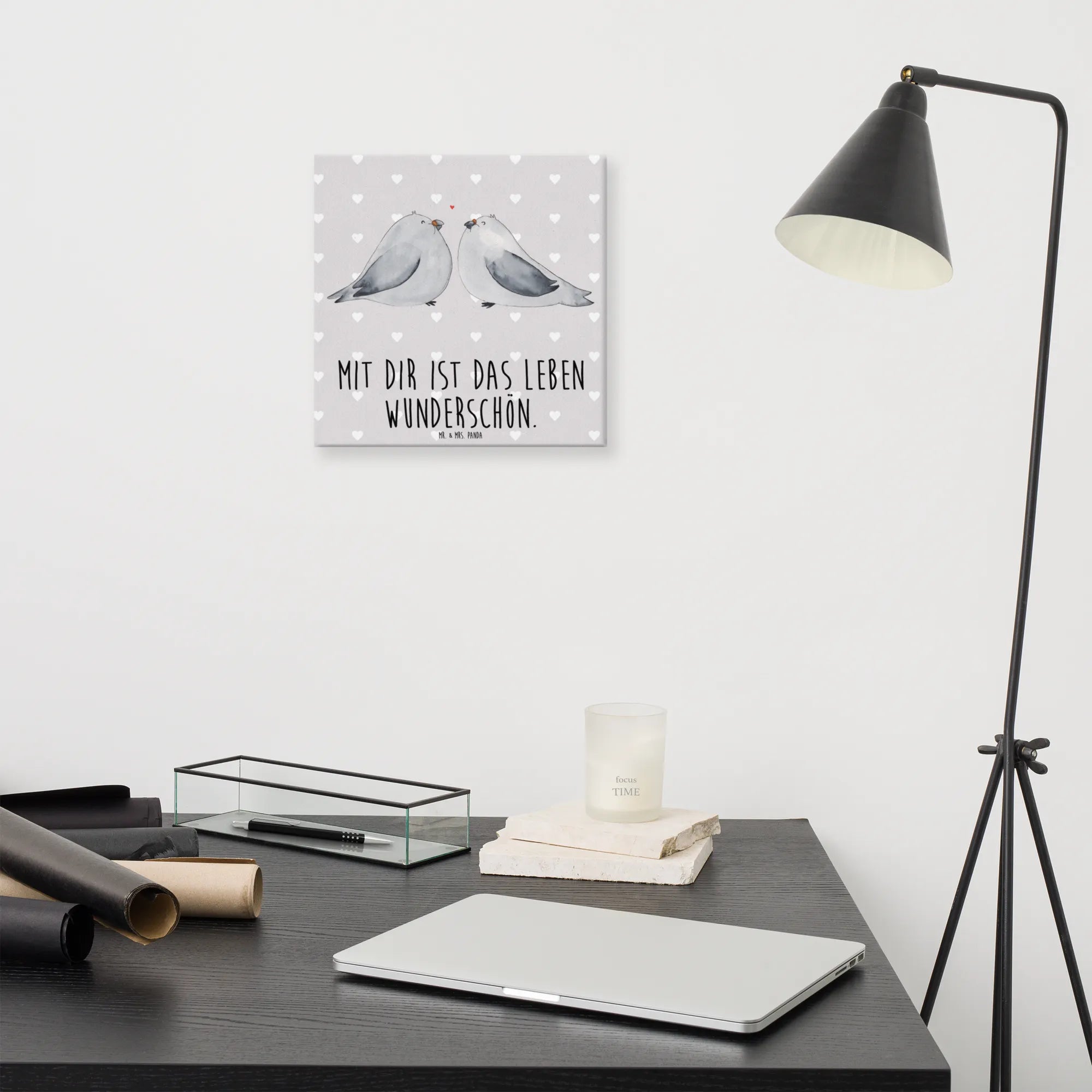 Obraz na płótnie Gołębia miłość - 40 x 40 cm - z napisem - biały