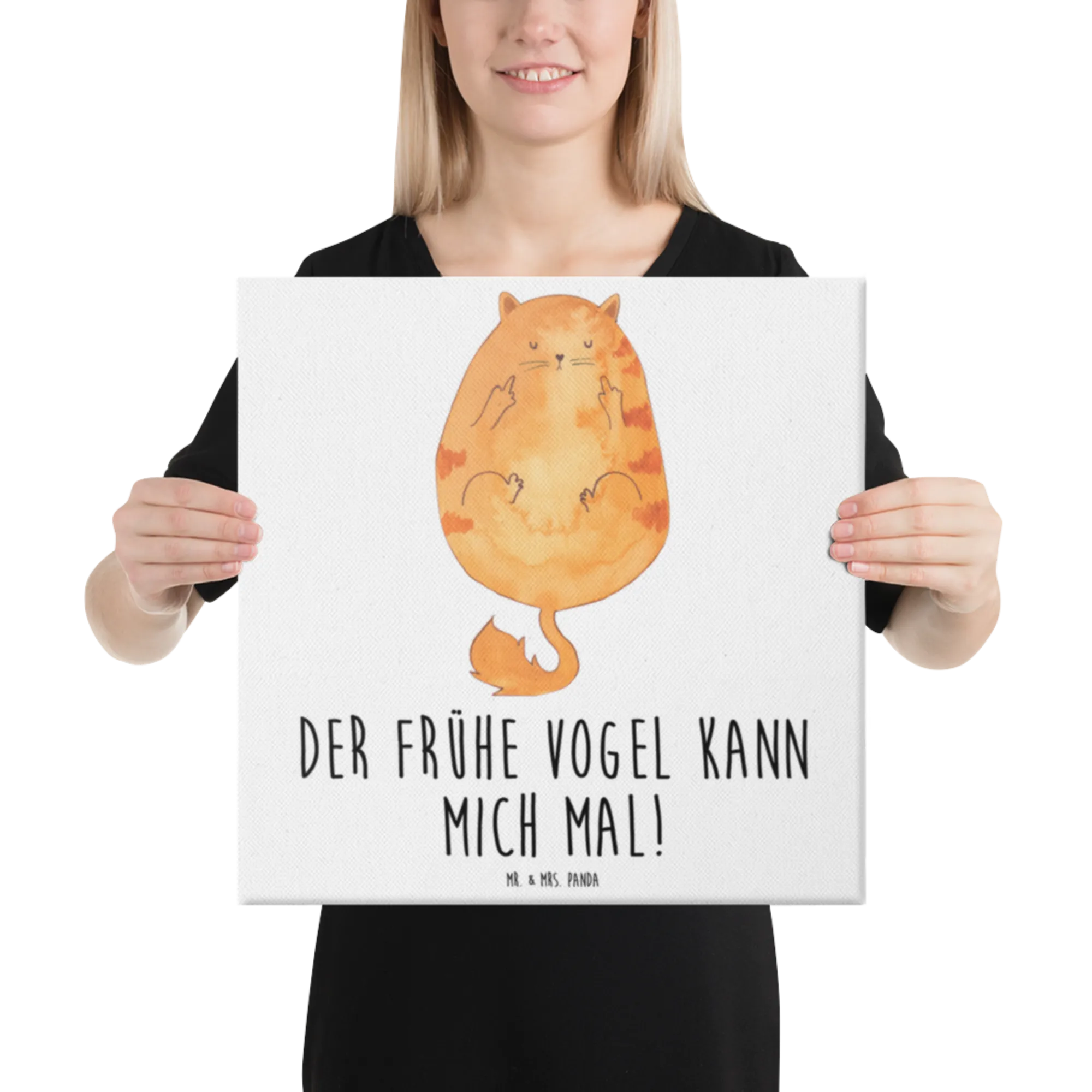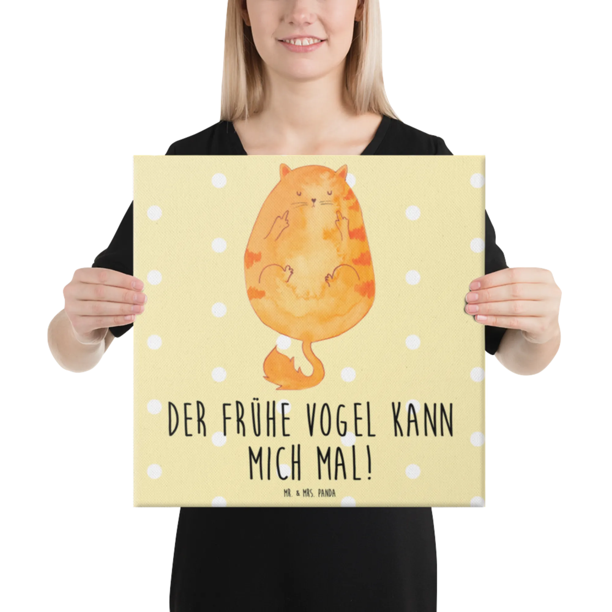 Obraz na płótnie Kot ranny ptaszek - z napisem - Pastelowy żółty