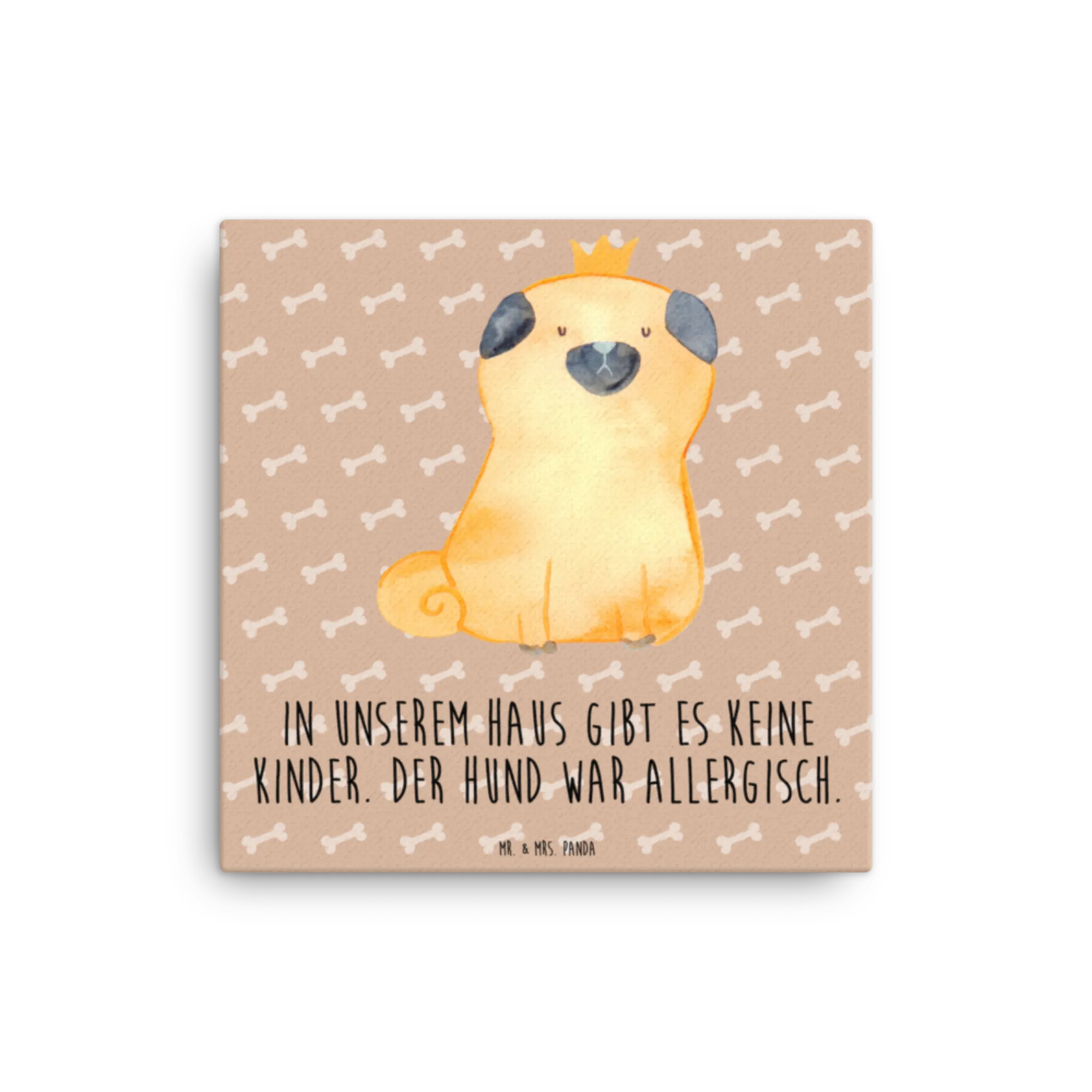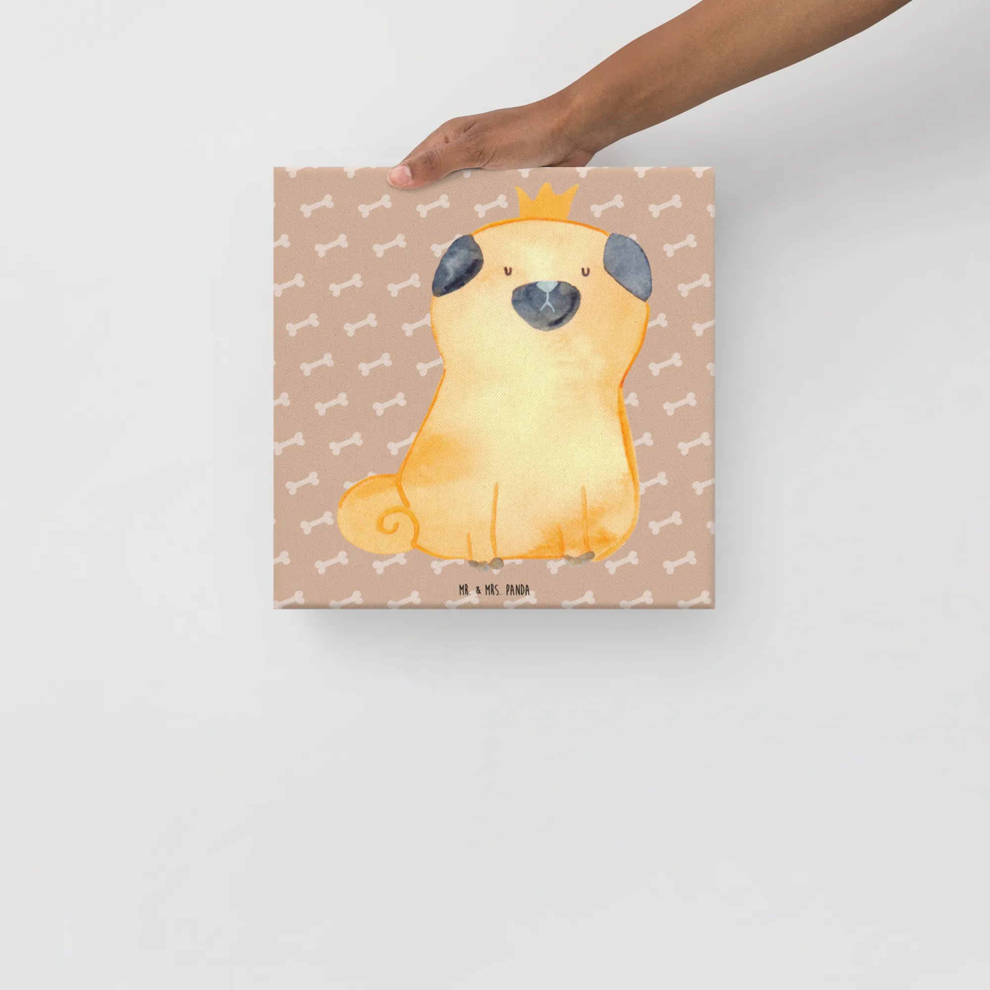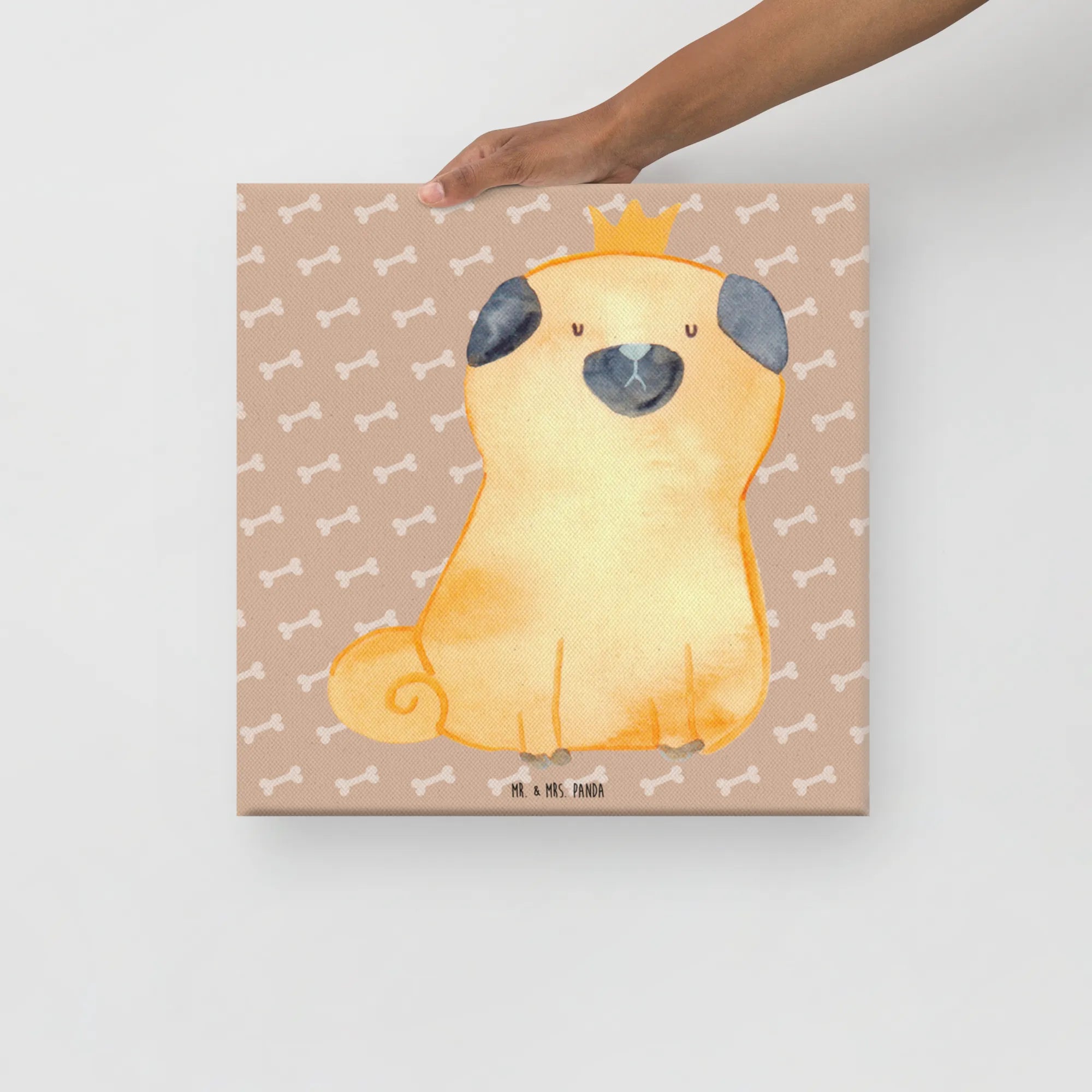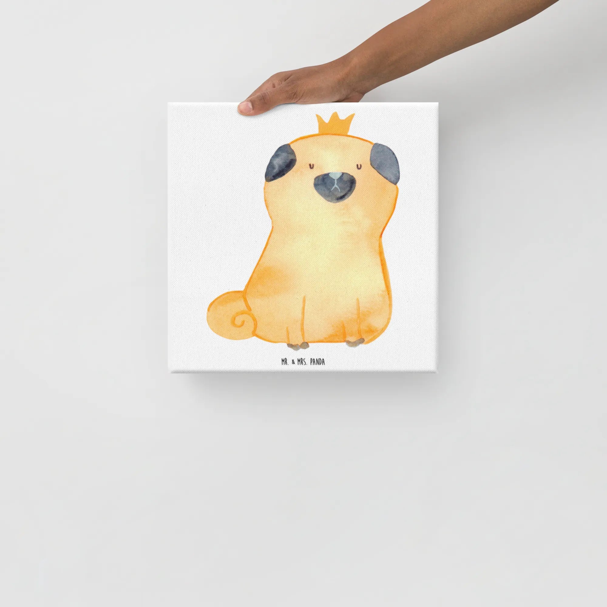 Obraz na płótnie mops korona - 40 x 40 cm - z napisem - biały