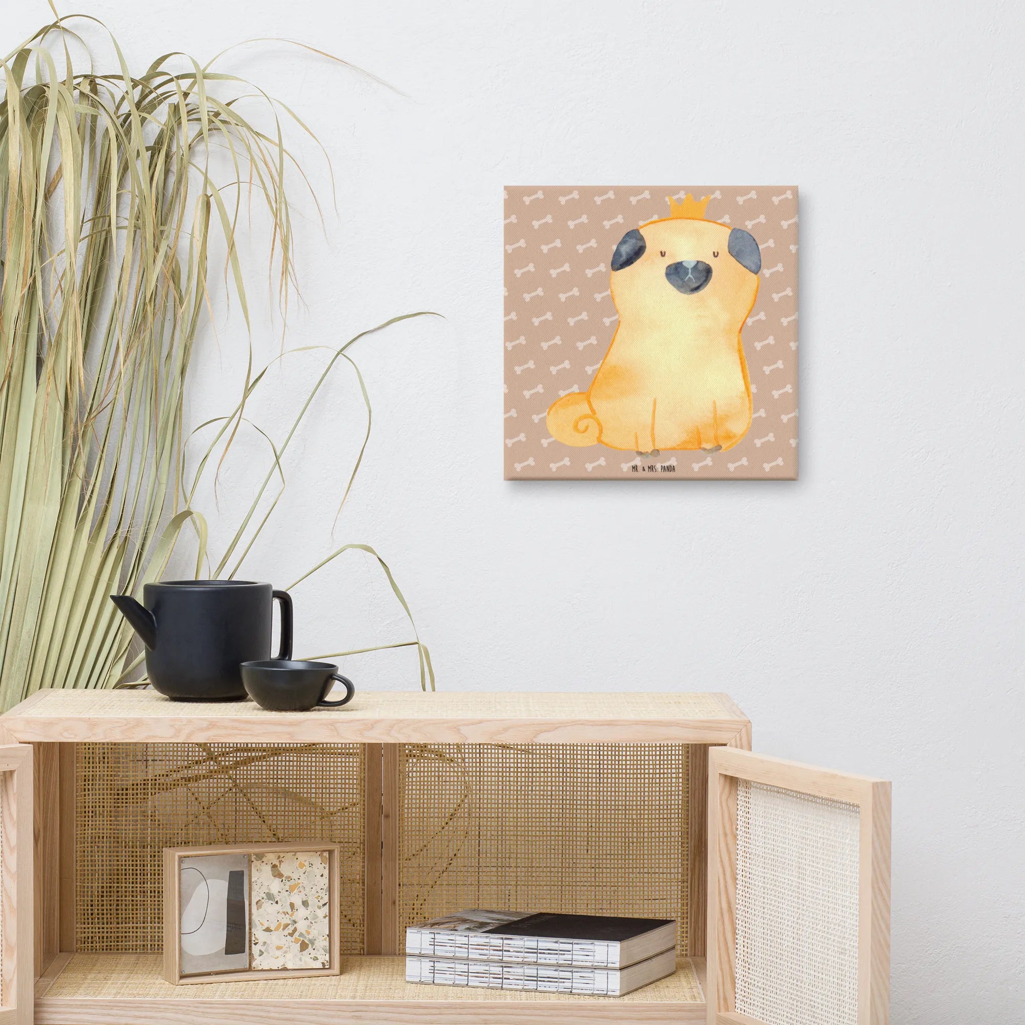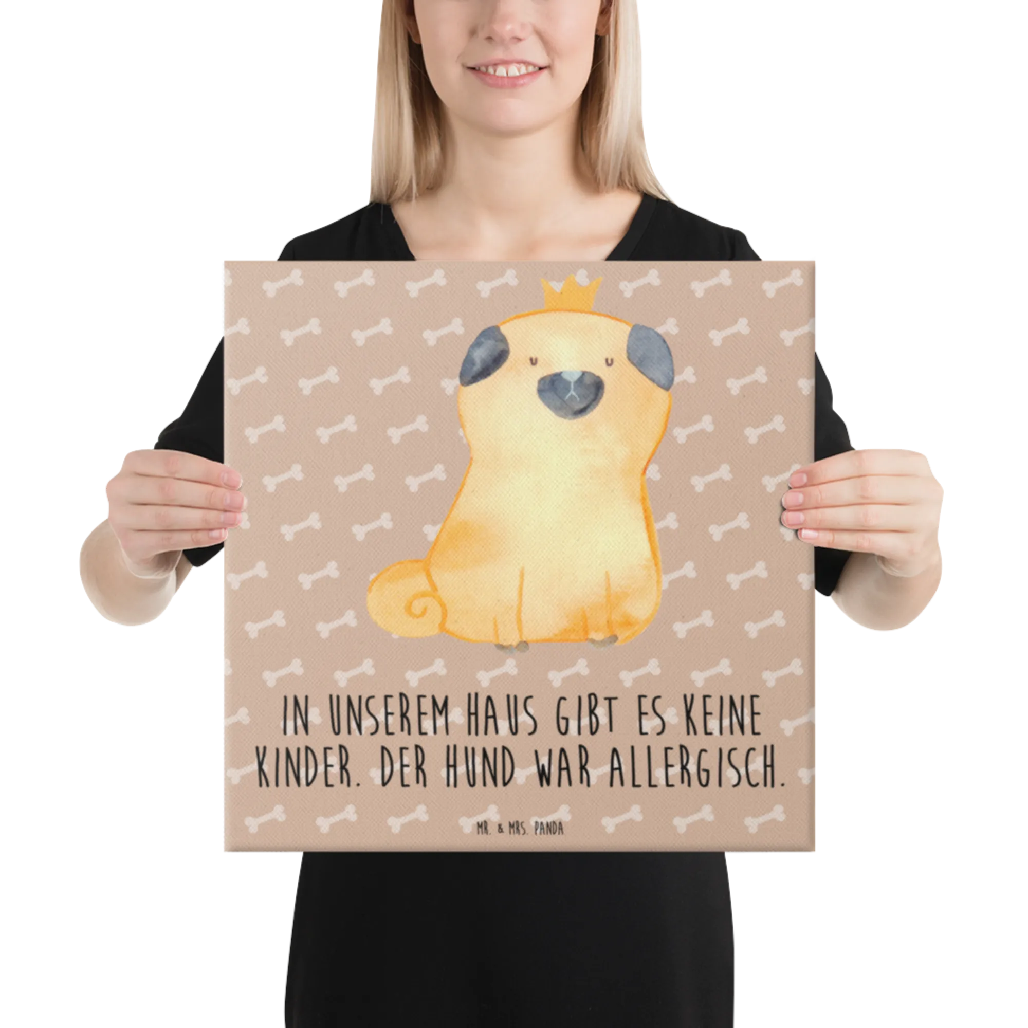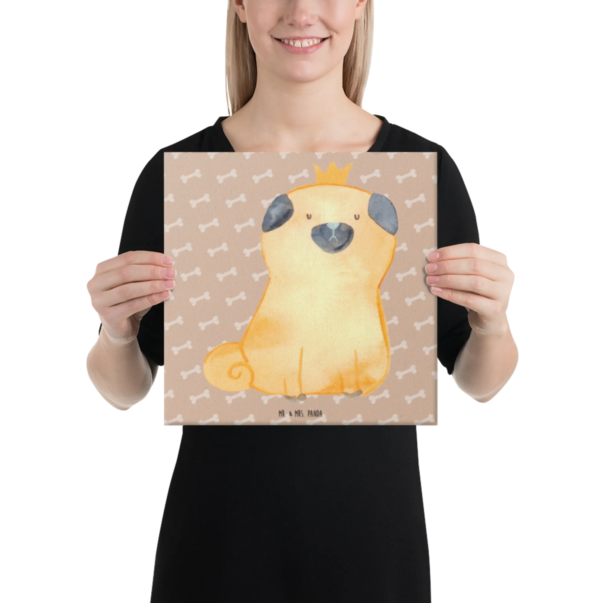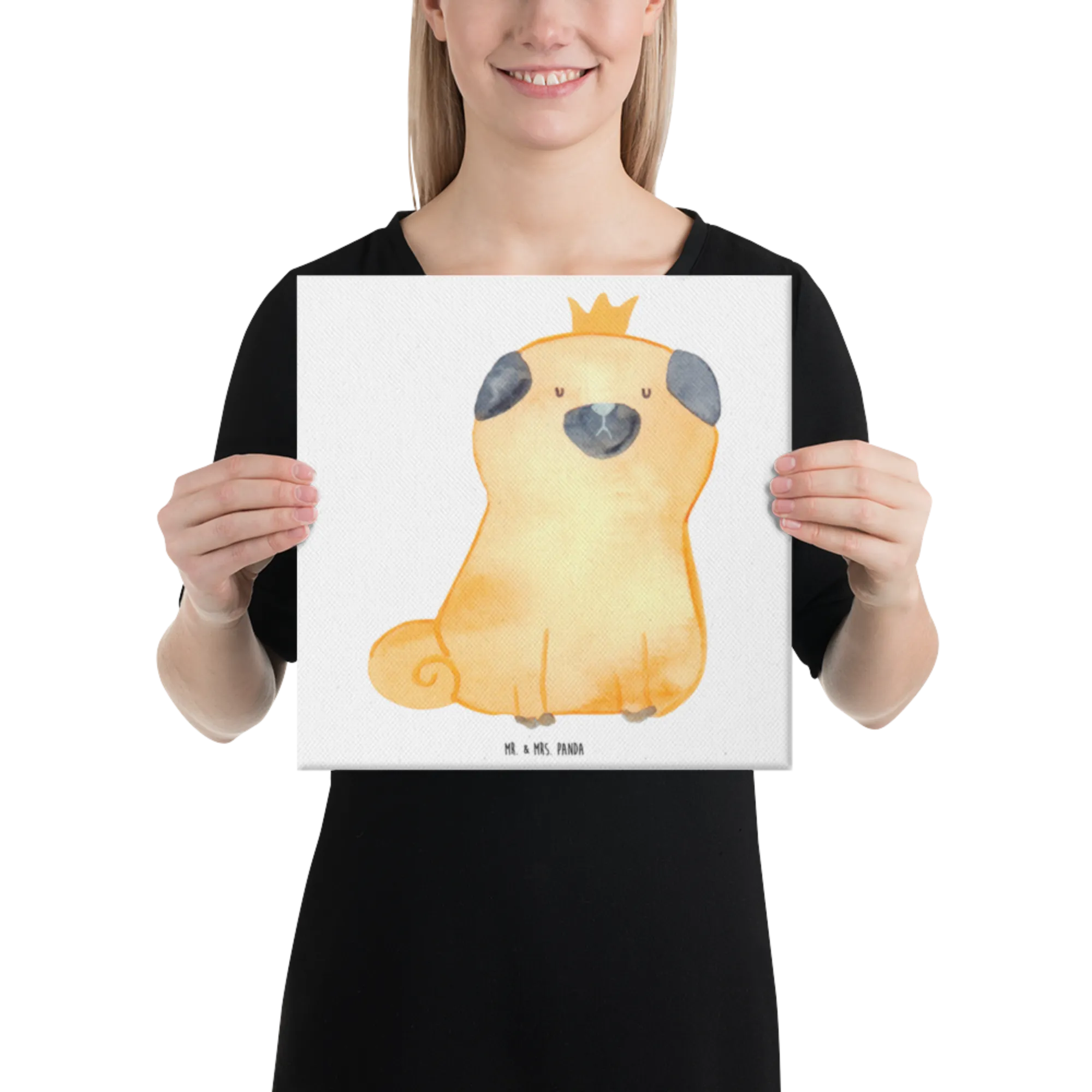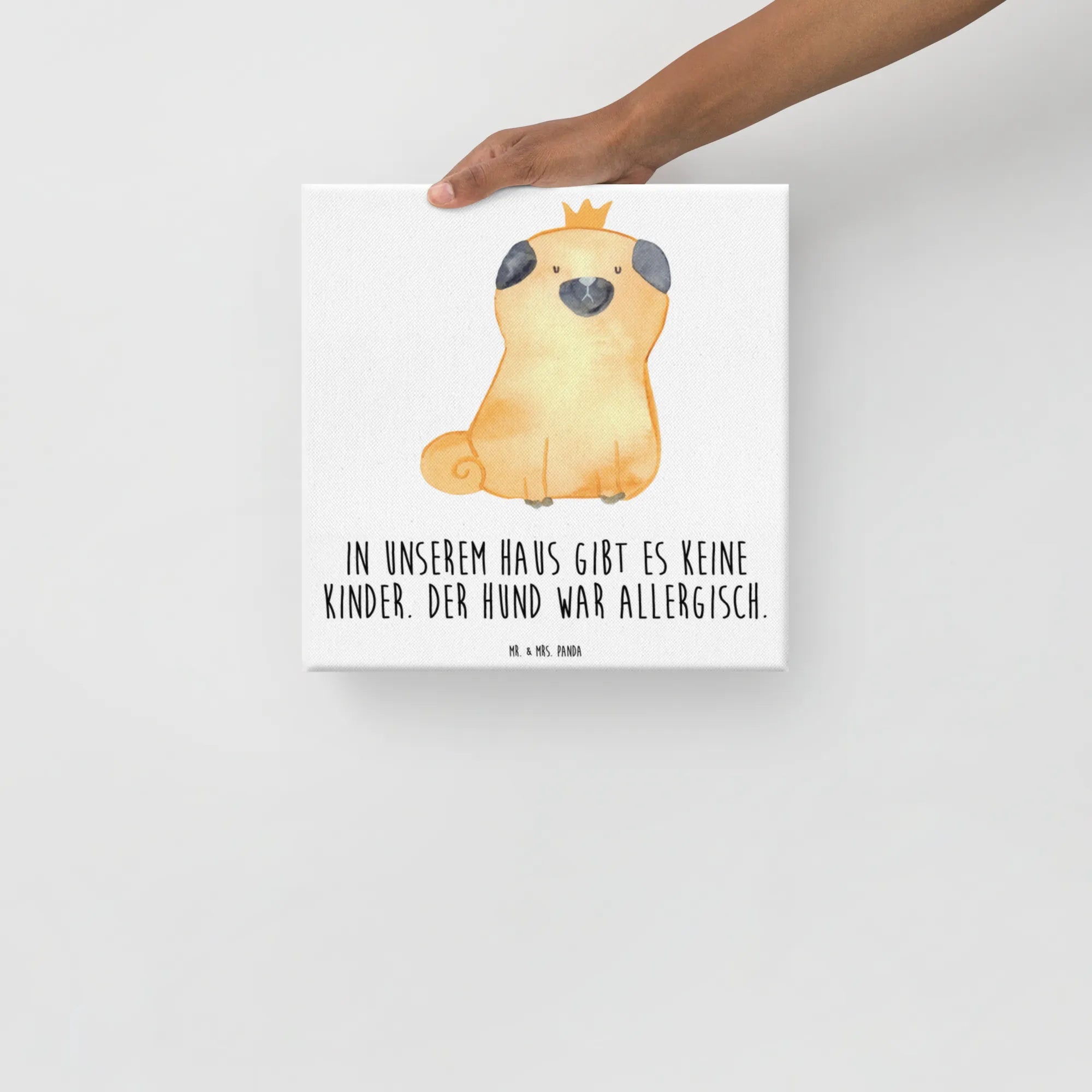 Obraz na płótnie mops korona - 40 x 40 cm - z napisem - biały