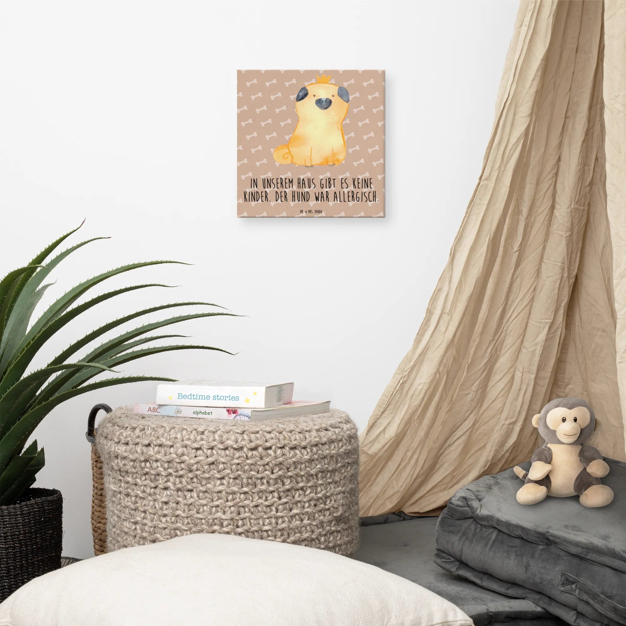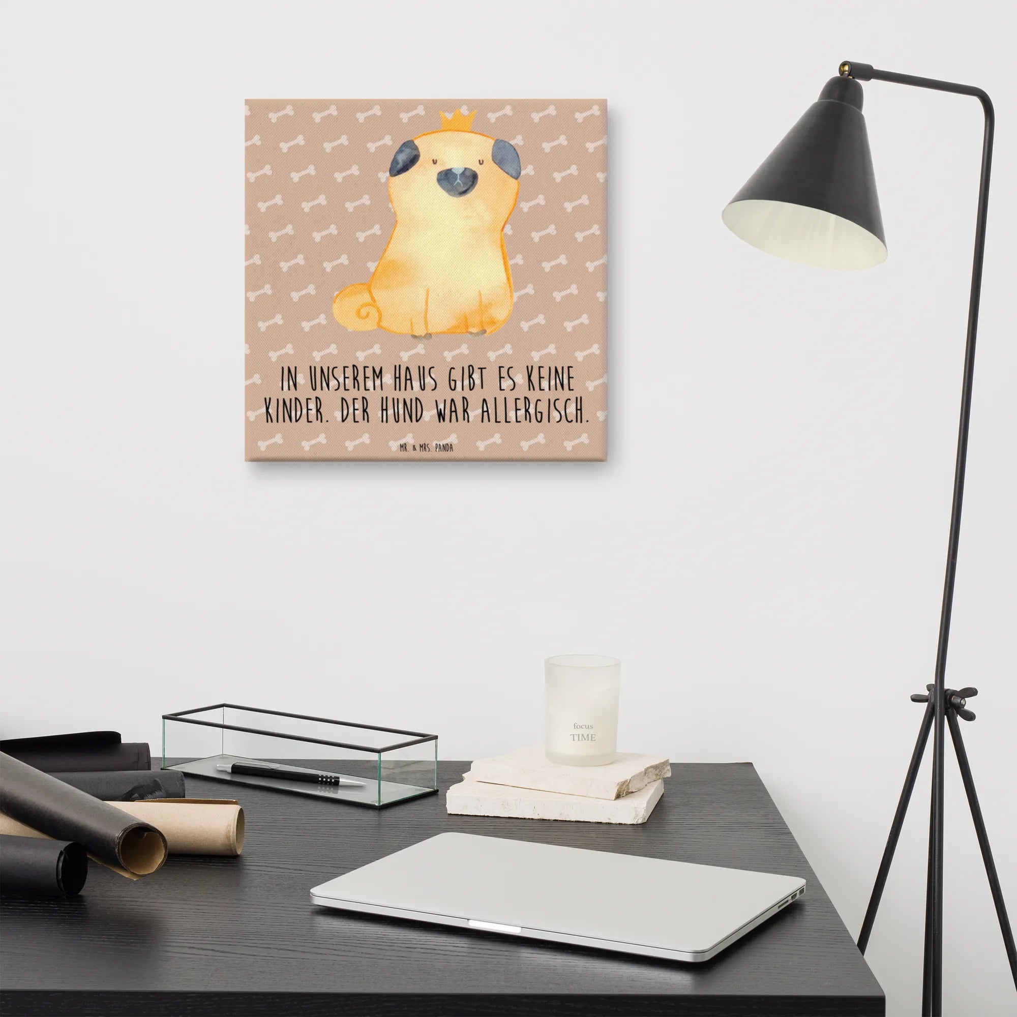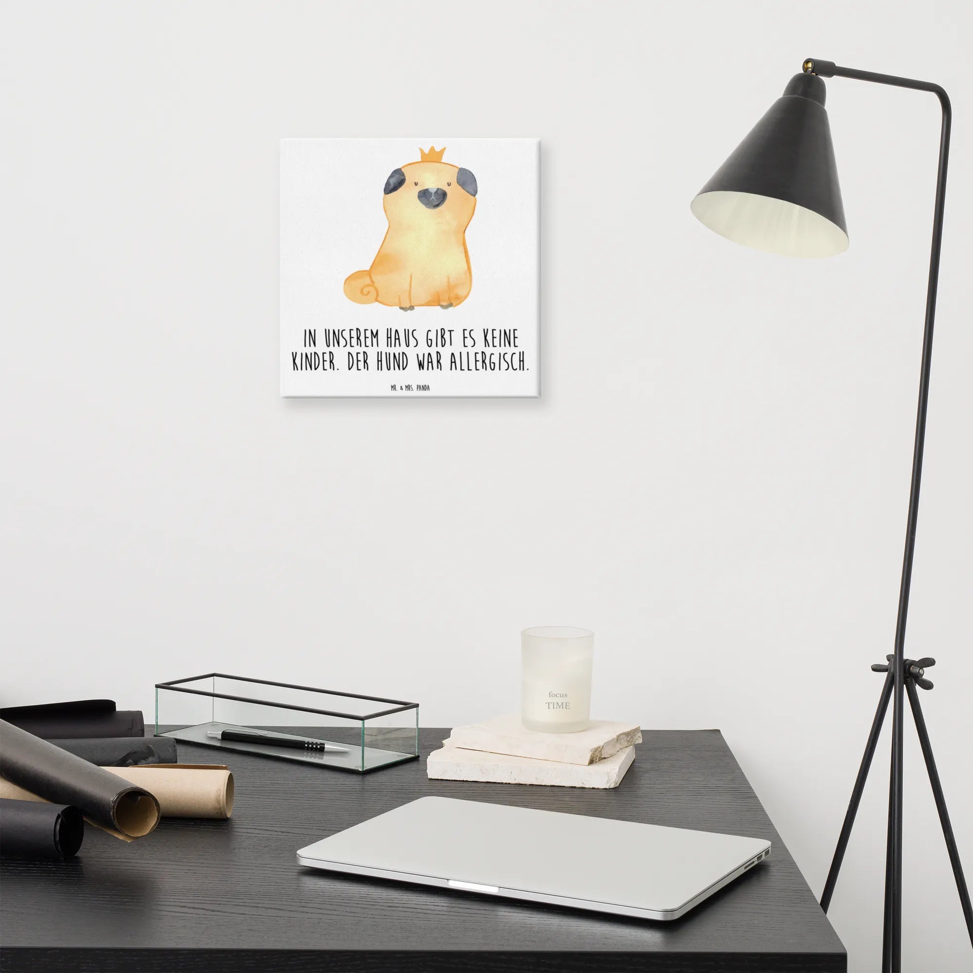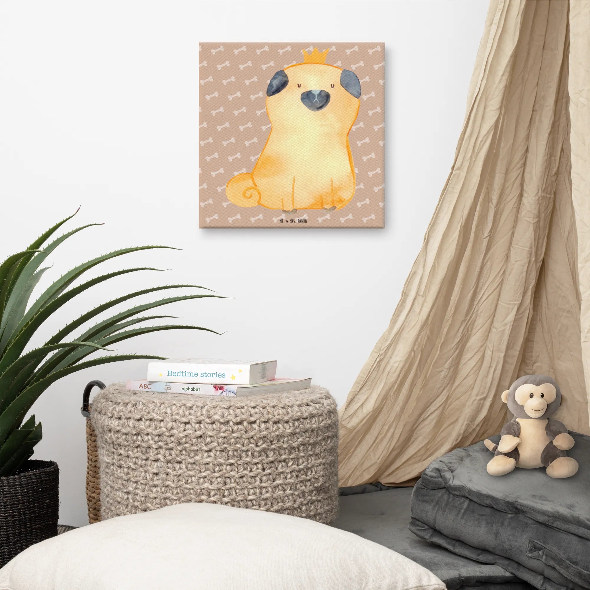 Obraz na płótnie mops korona - 40 x 40 cm - z napisem - biały