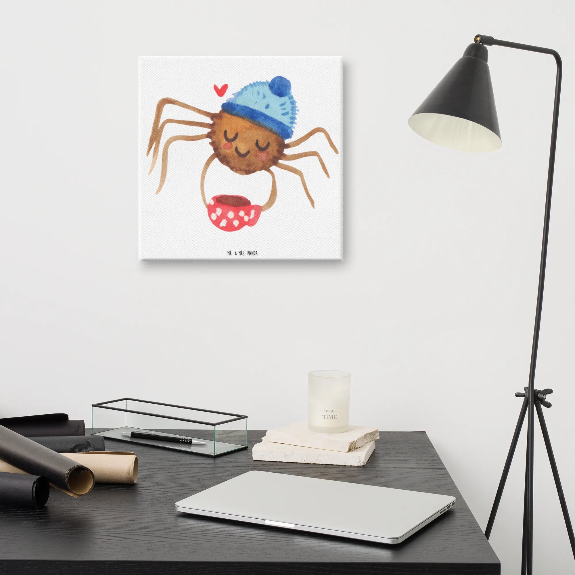 Obraz na płótnie Pająk Agata kawa - 40 x 40 cm - z napisem - Pastelowy żółty