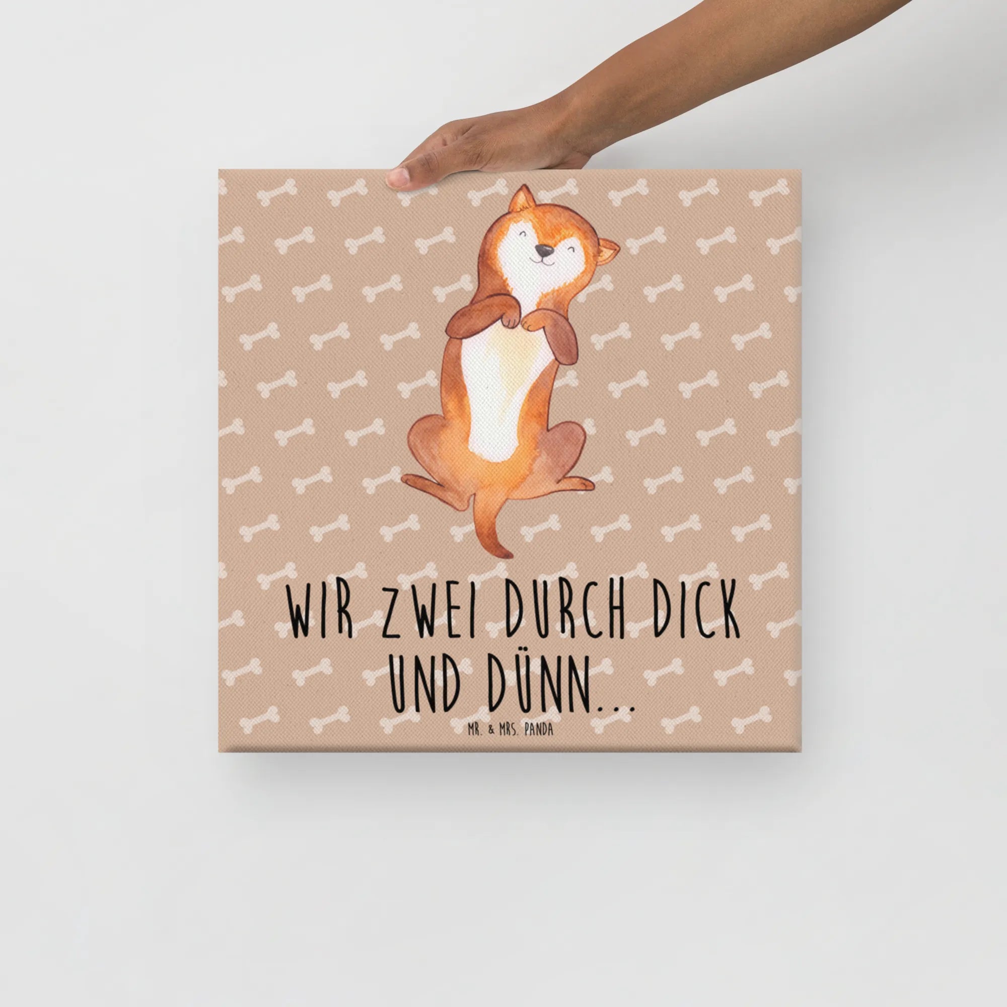 Obraz na płótnie pies głaskać - 40 x 40 cm - z napisem - biały