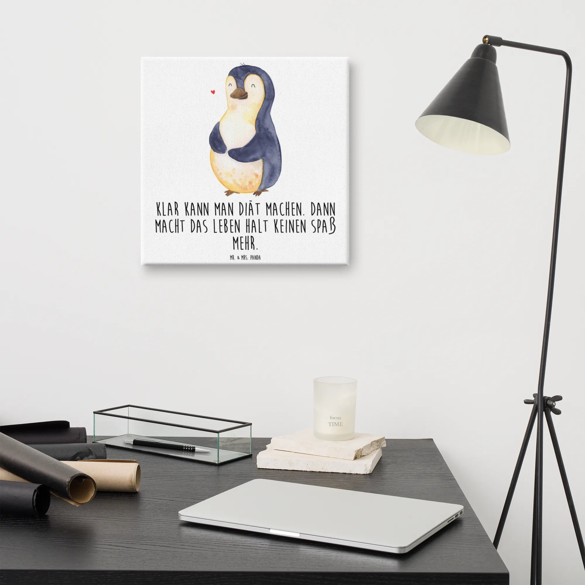 Obraz na płótnie Pingwin dieta - 40 x 40 cm - z napisem - biały