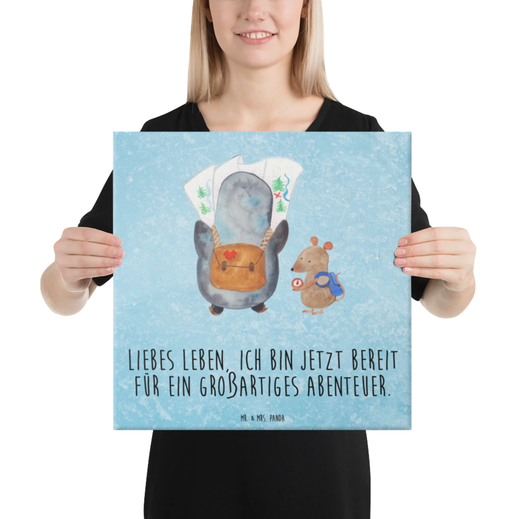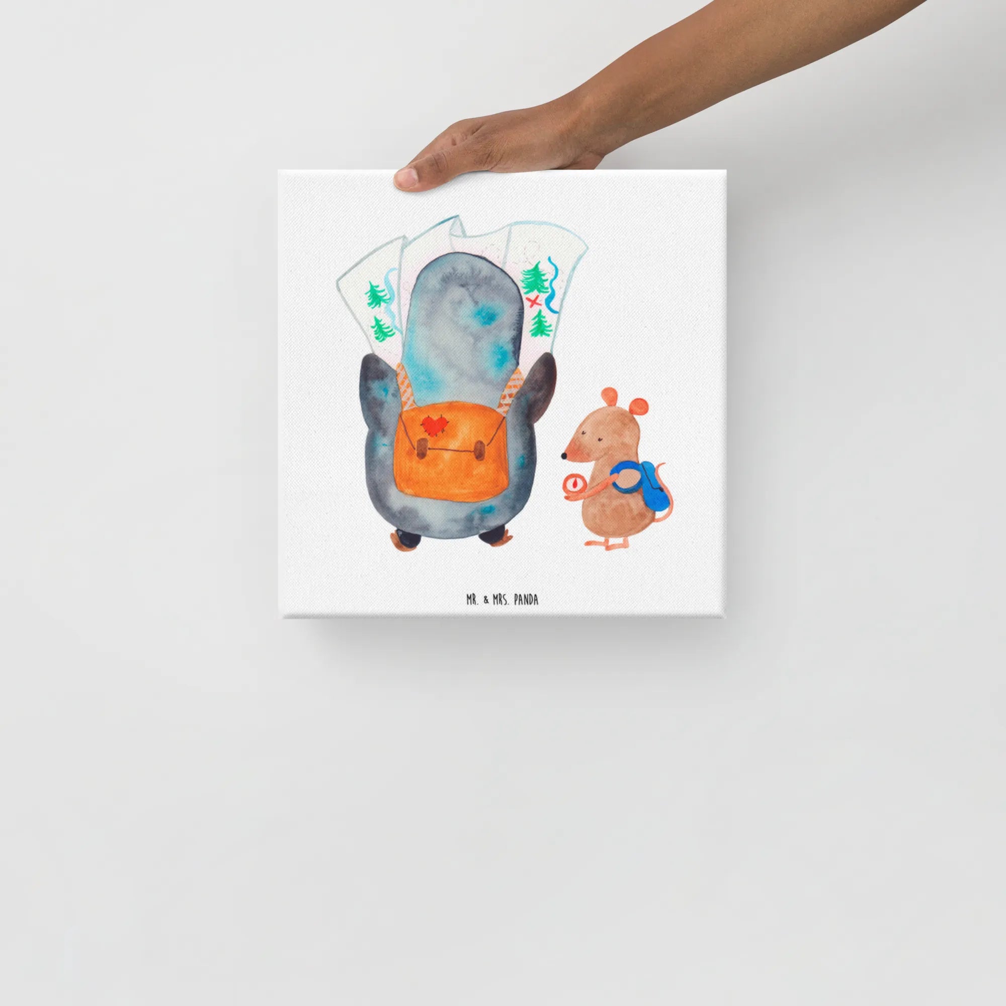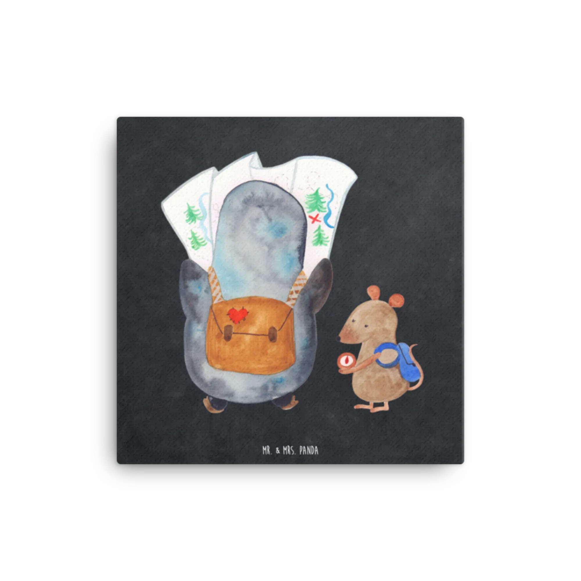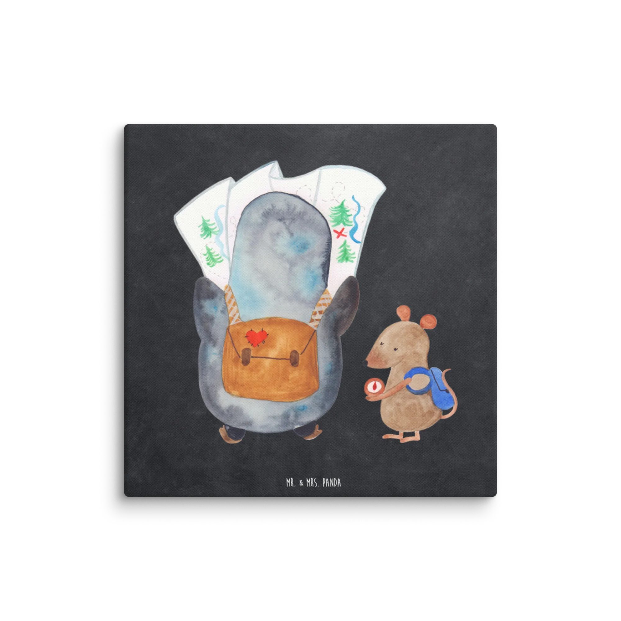 Obraz na płótnie Pingwin i Mysz Wędrowcy - 40 x 40 cm - z napisem - biały