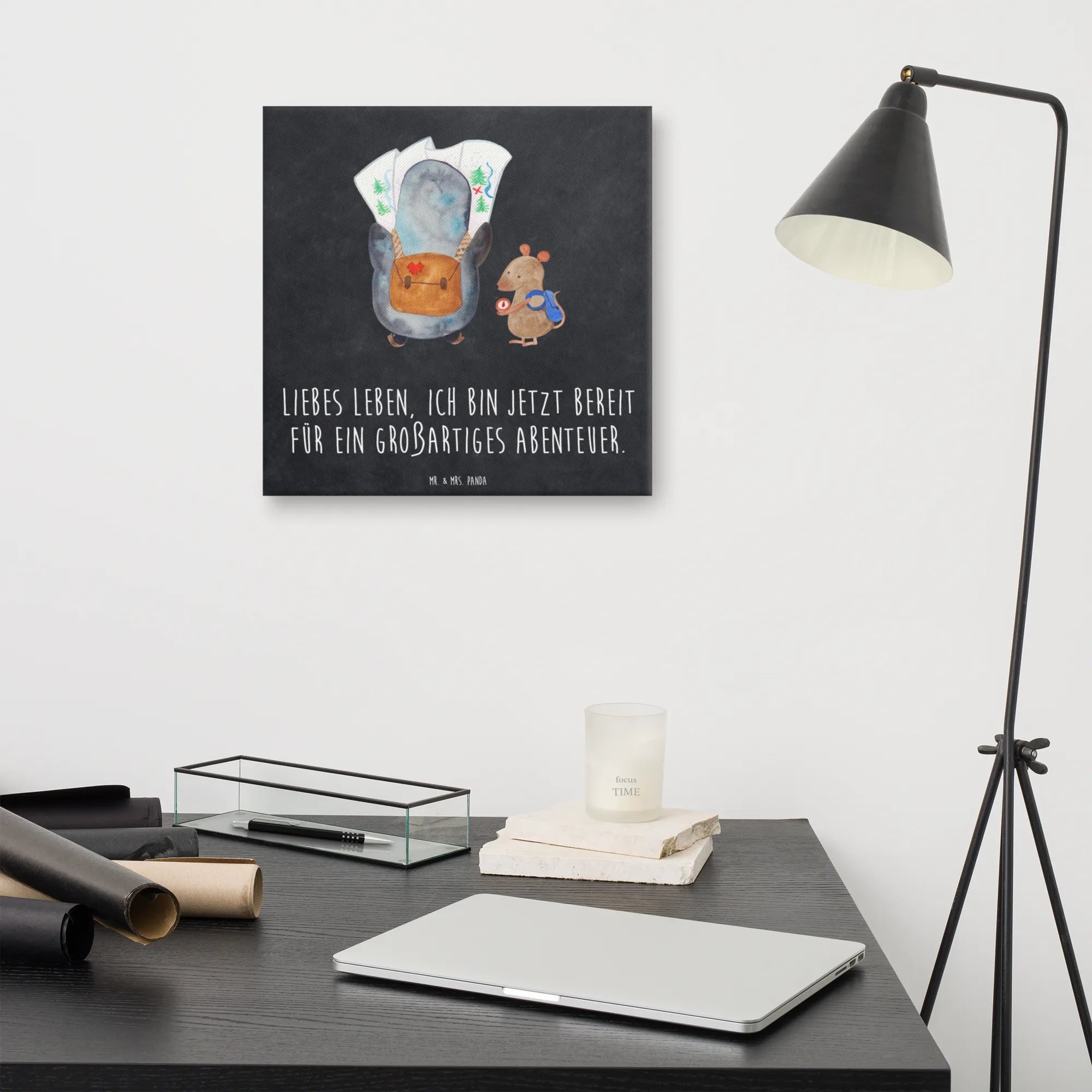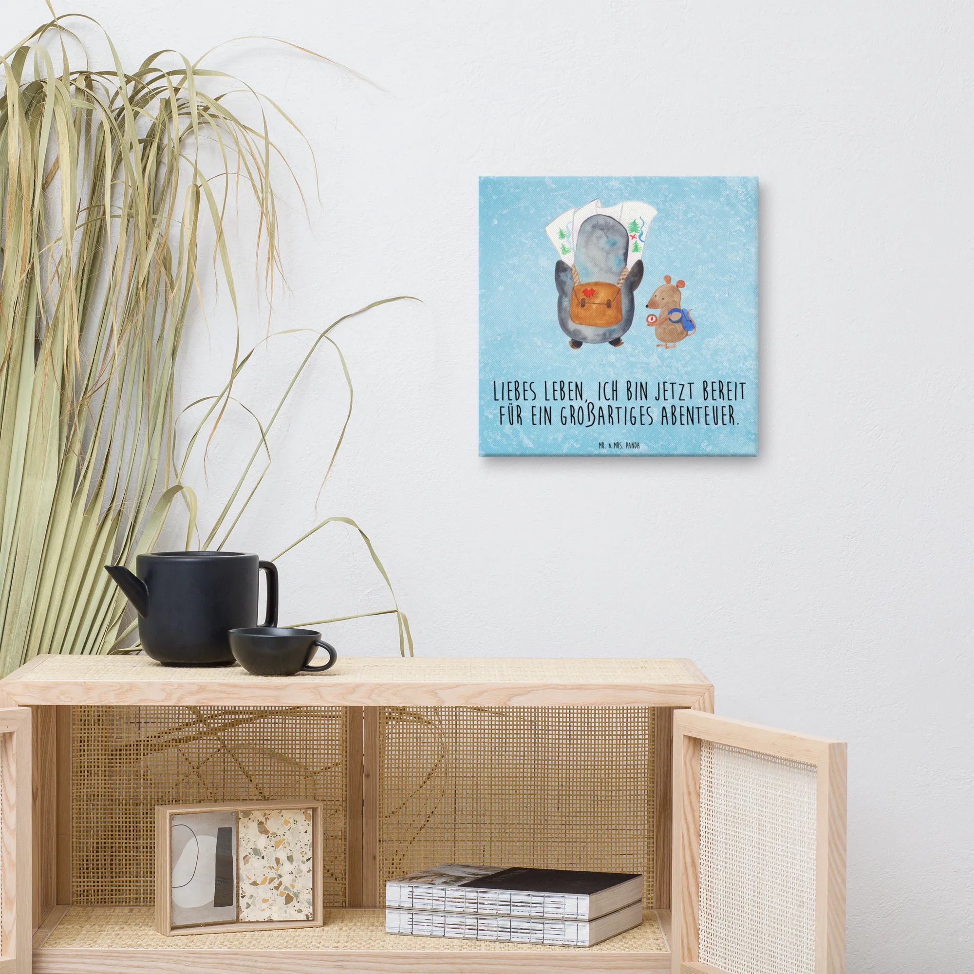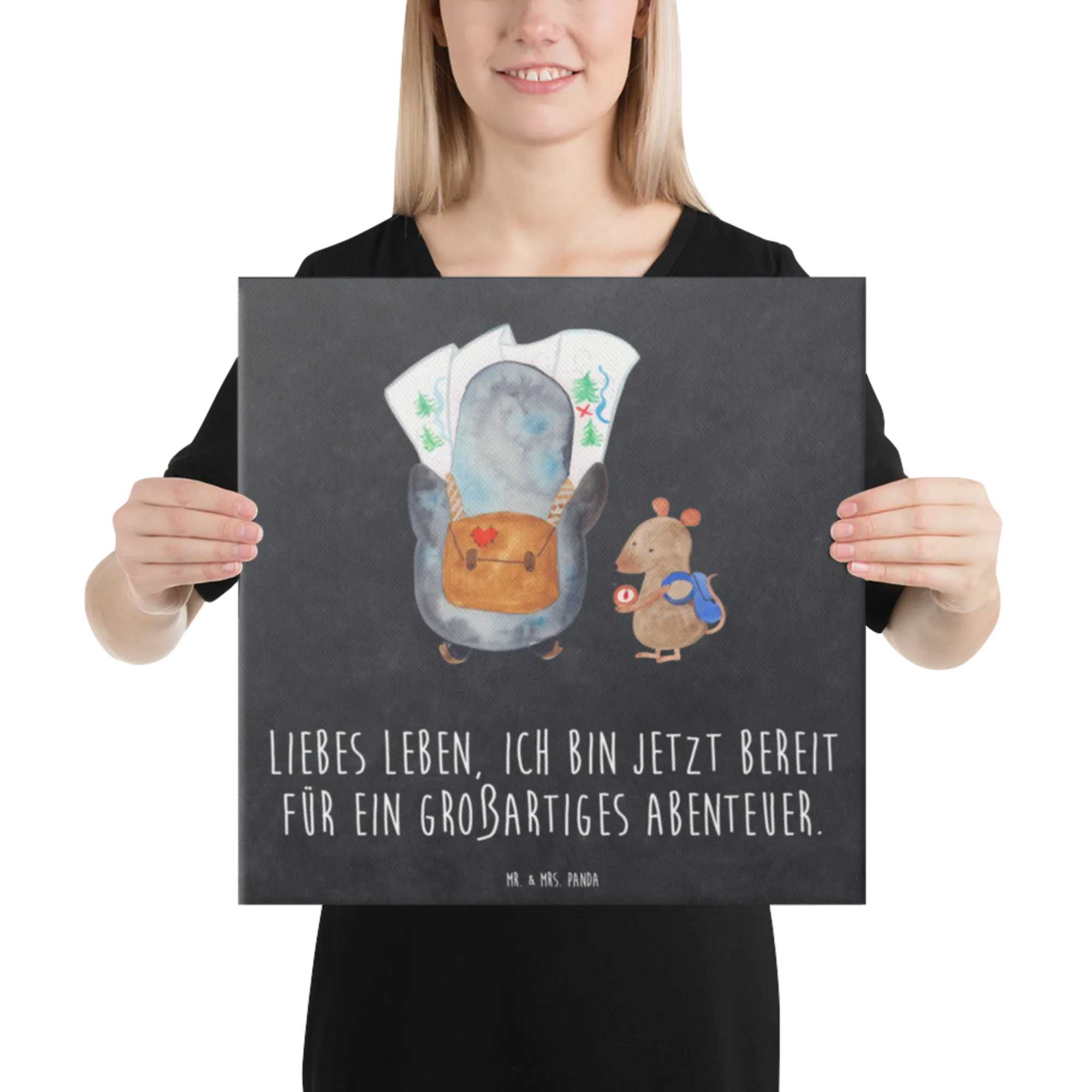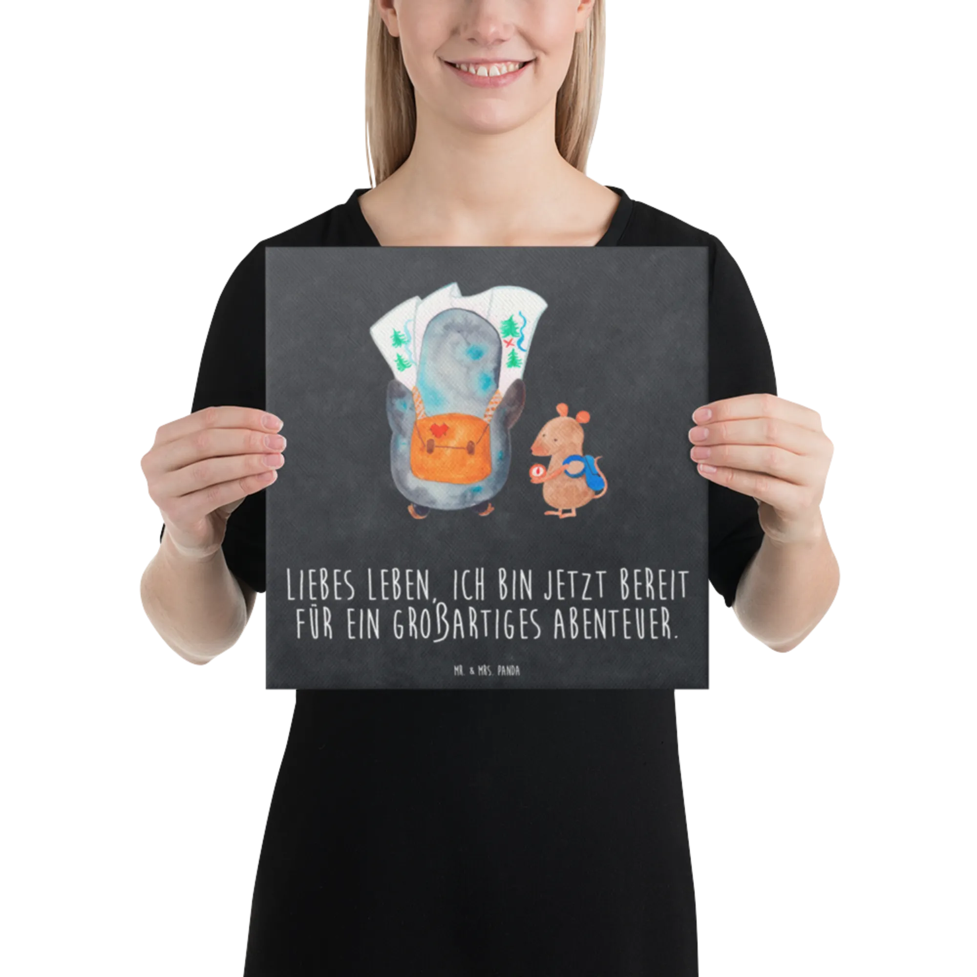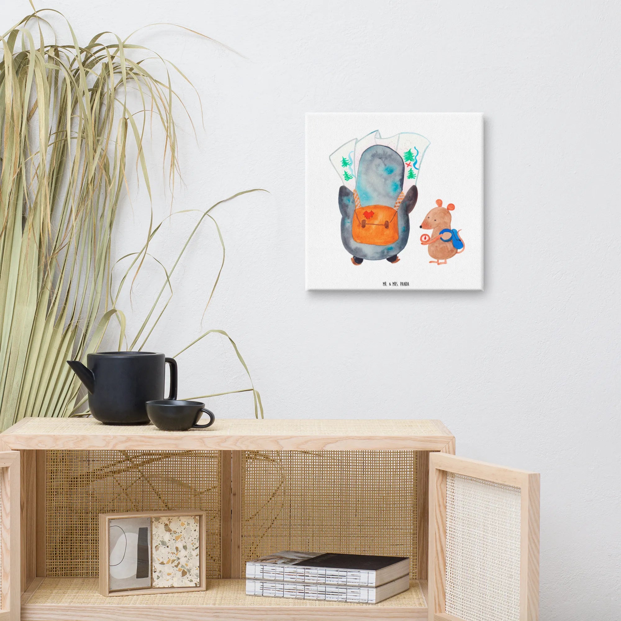 Obraz na płótnie Pingwin i Mysz Wędrowcy - 40 x 40 cm - z napisem - biały