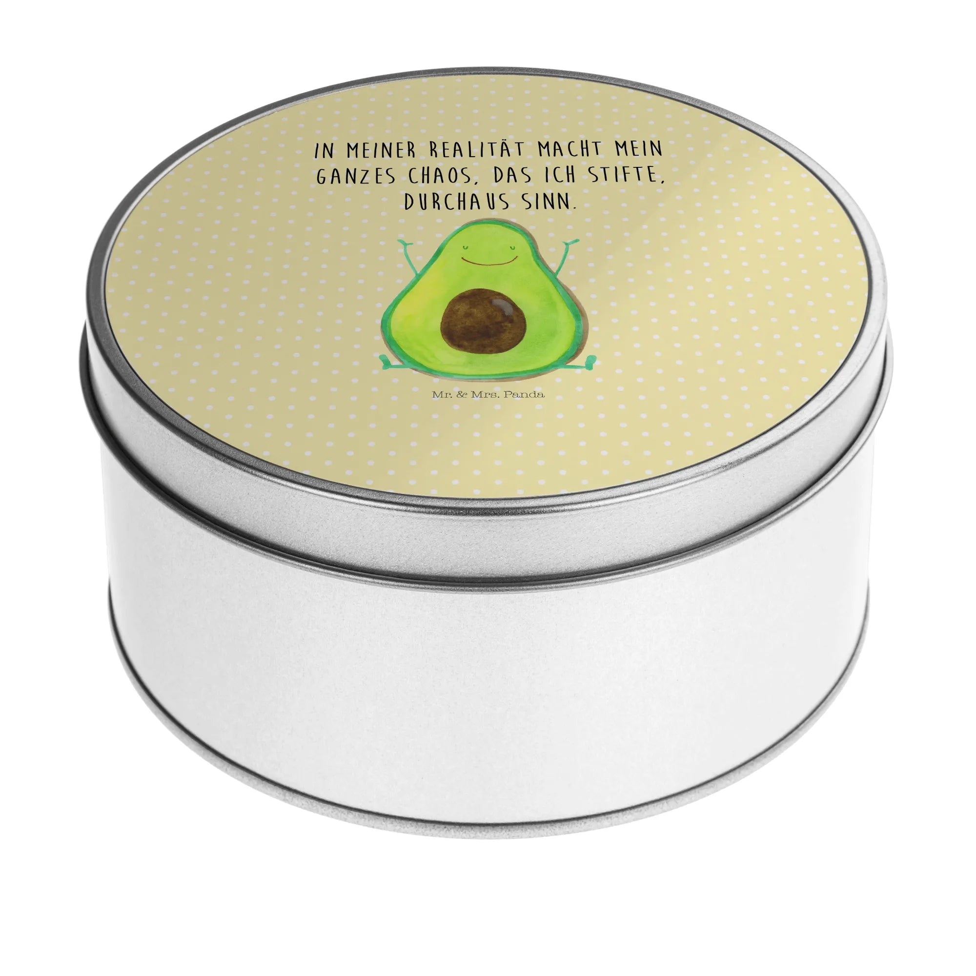 okrągła puszka z blachy Awokado Szczęśliwy - z napisem