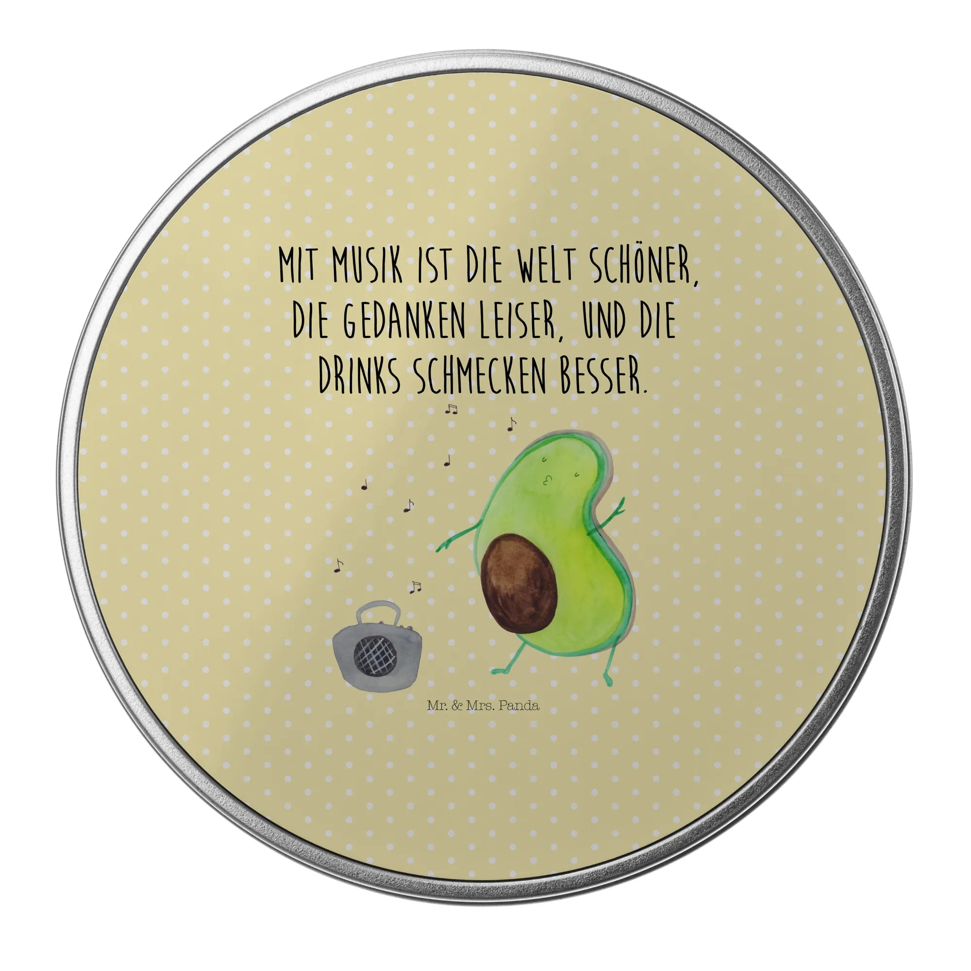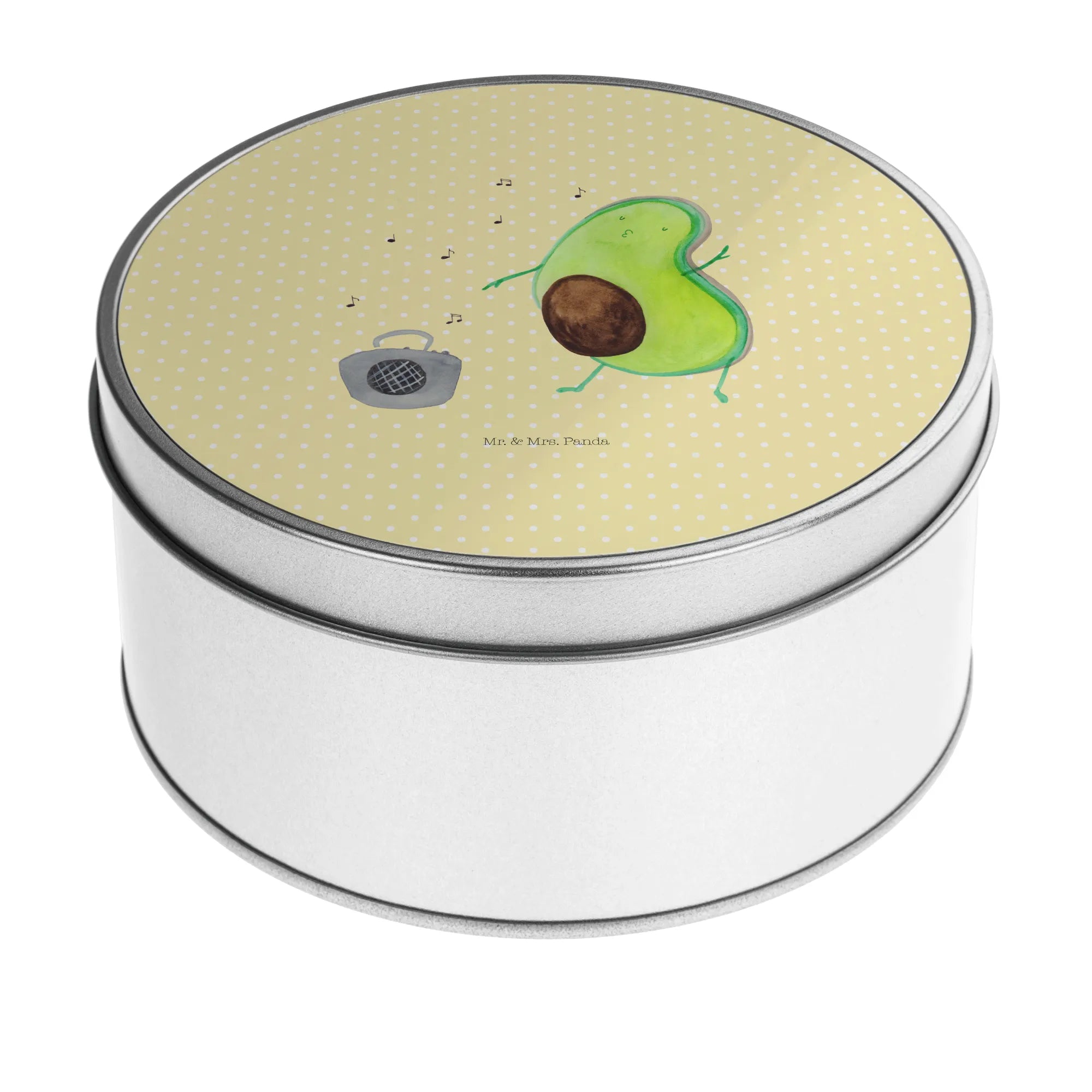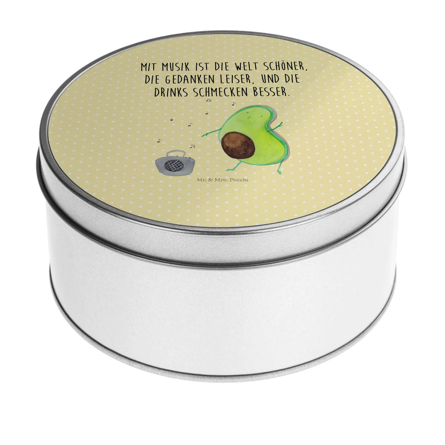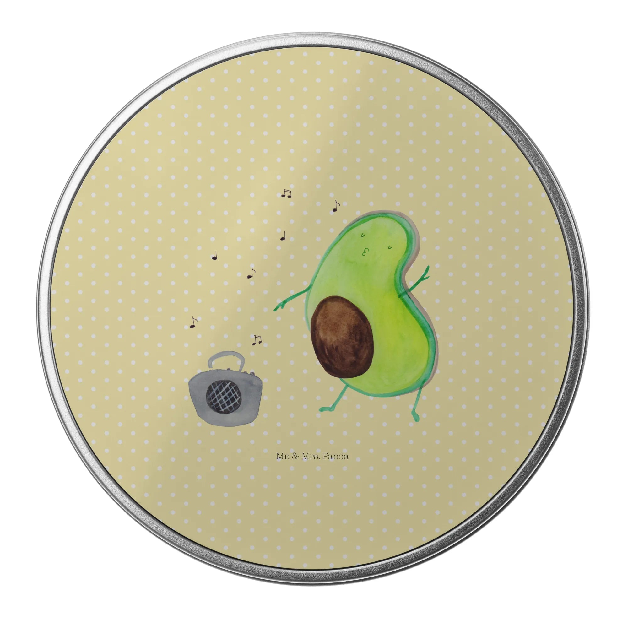 okrągła puszka z blachy Awokado tańczyć - z napisem