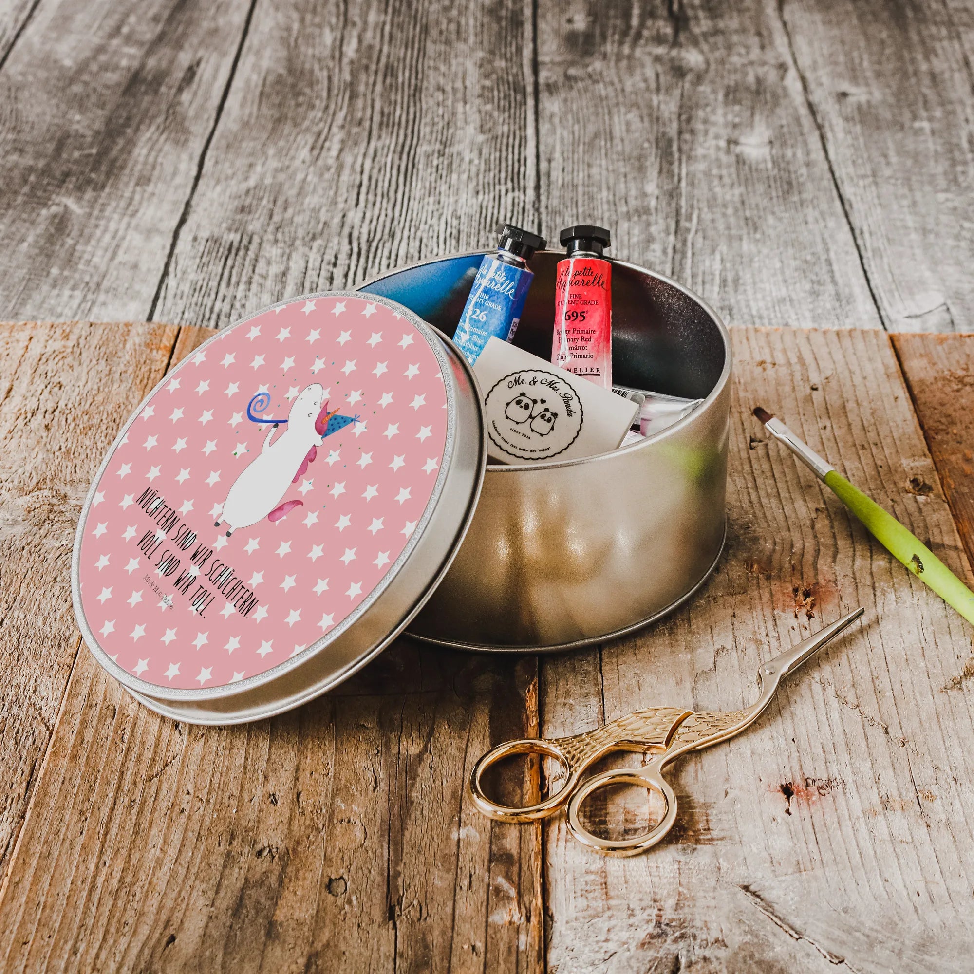 okrągła puszka z blachy Jednorożec Impreza – Mr. & Mrs. Panda