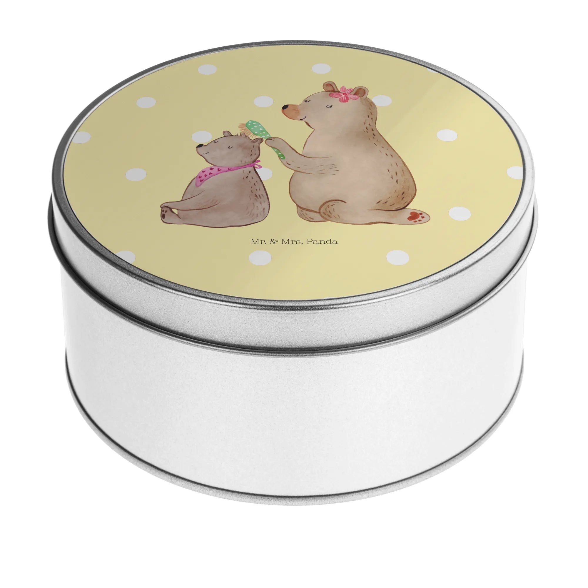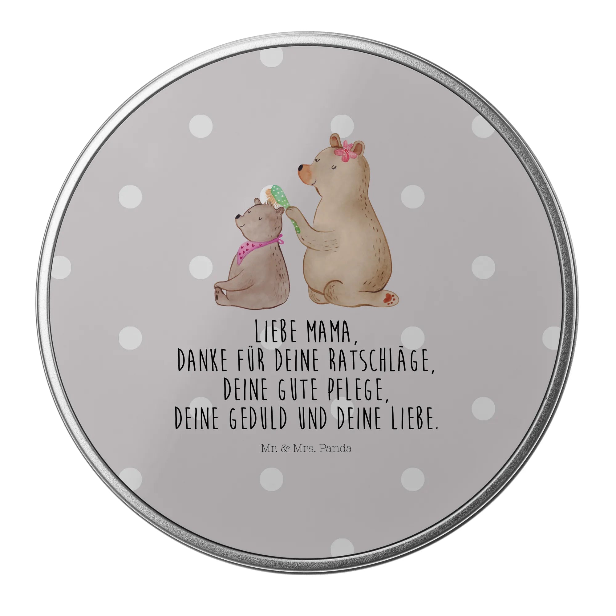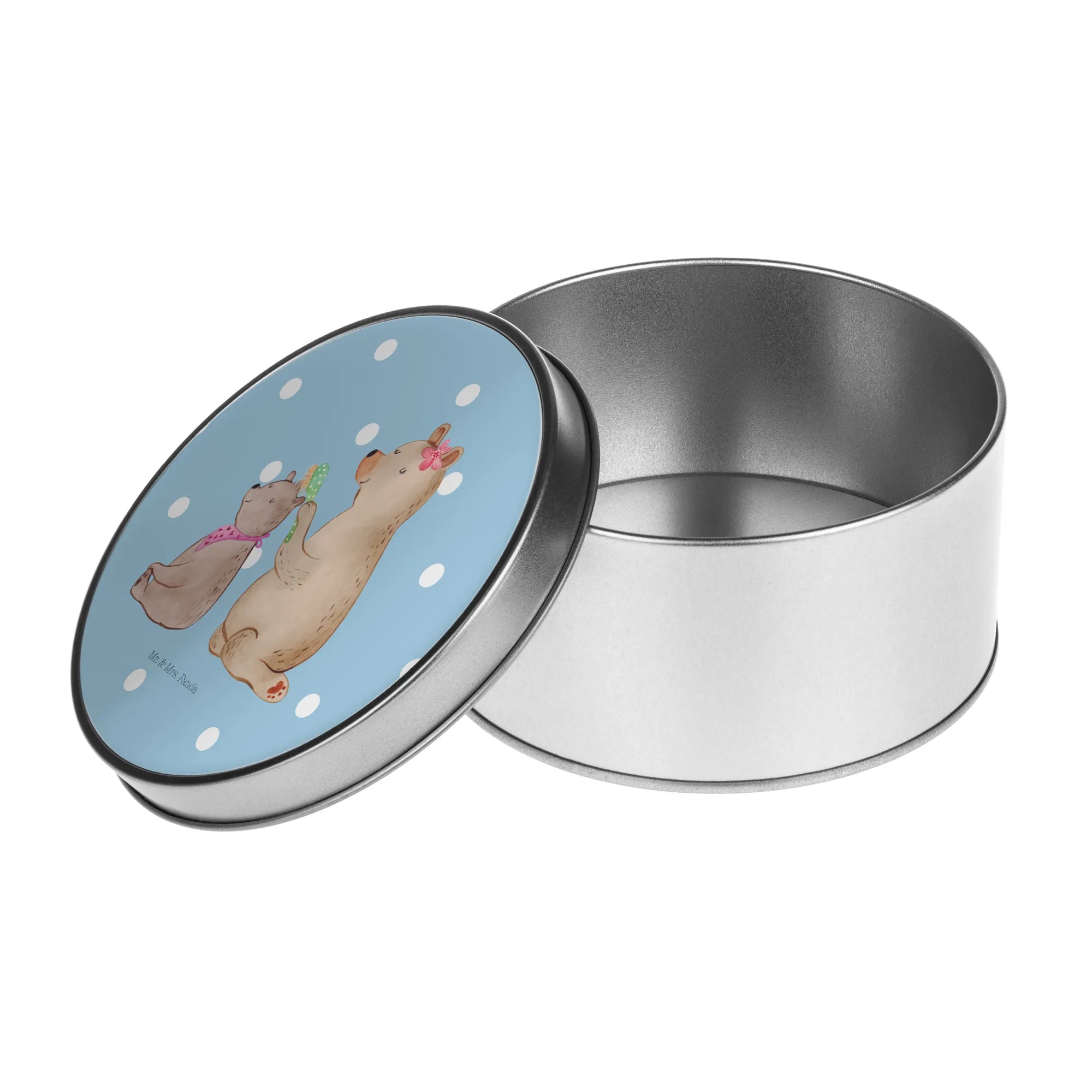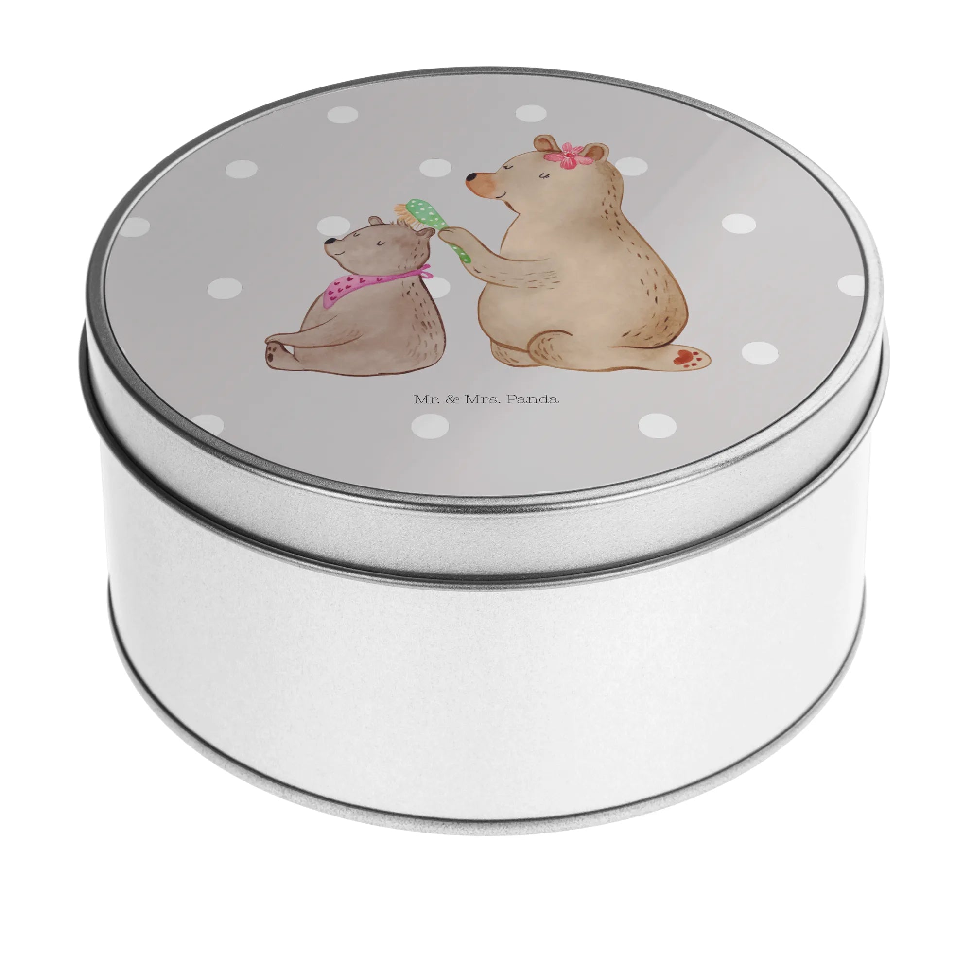 okrągła puszka z blachy niedźwiedź dziecko - z napisem - Pastelowy szary