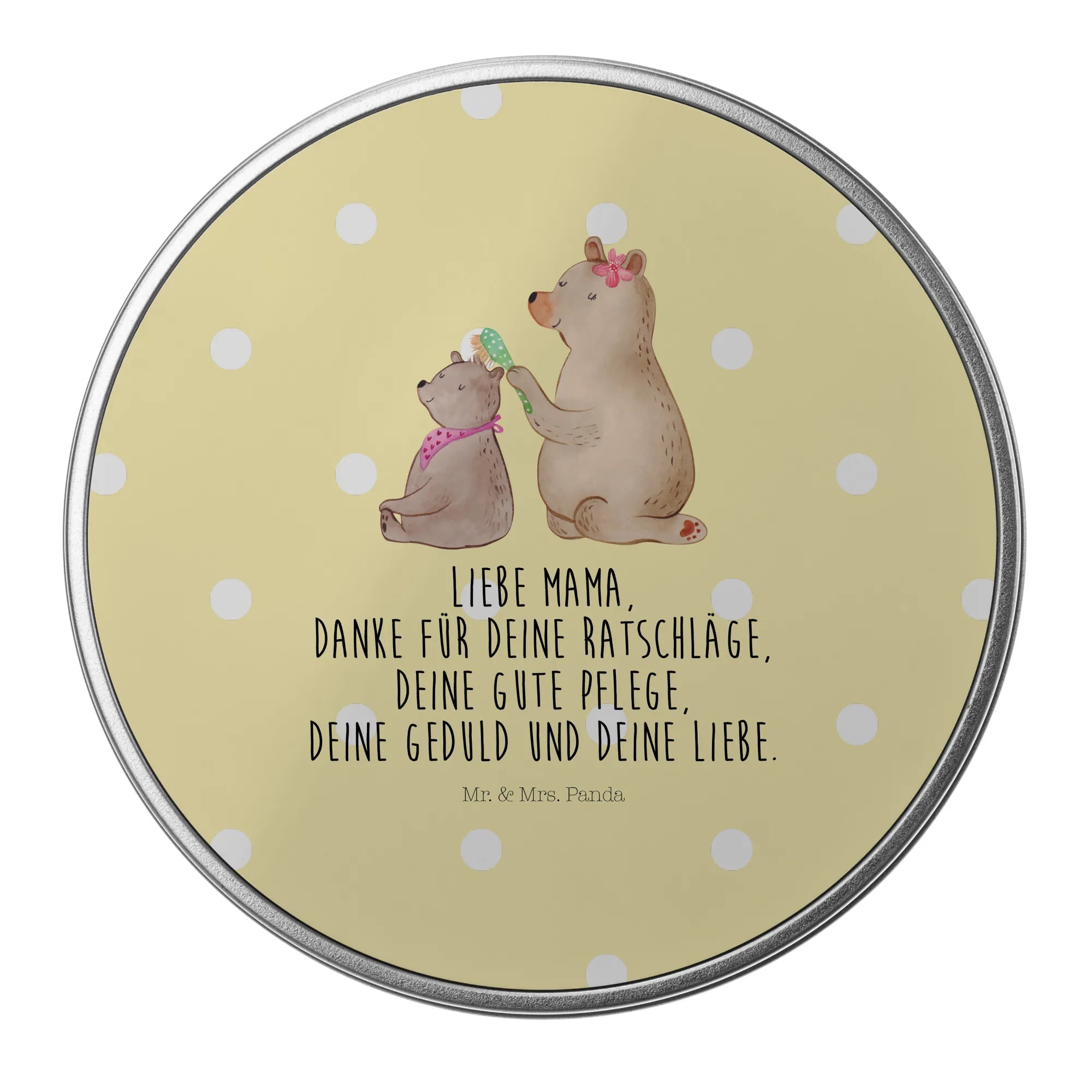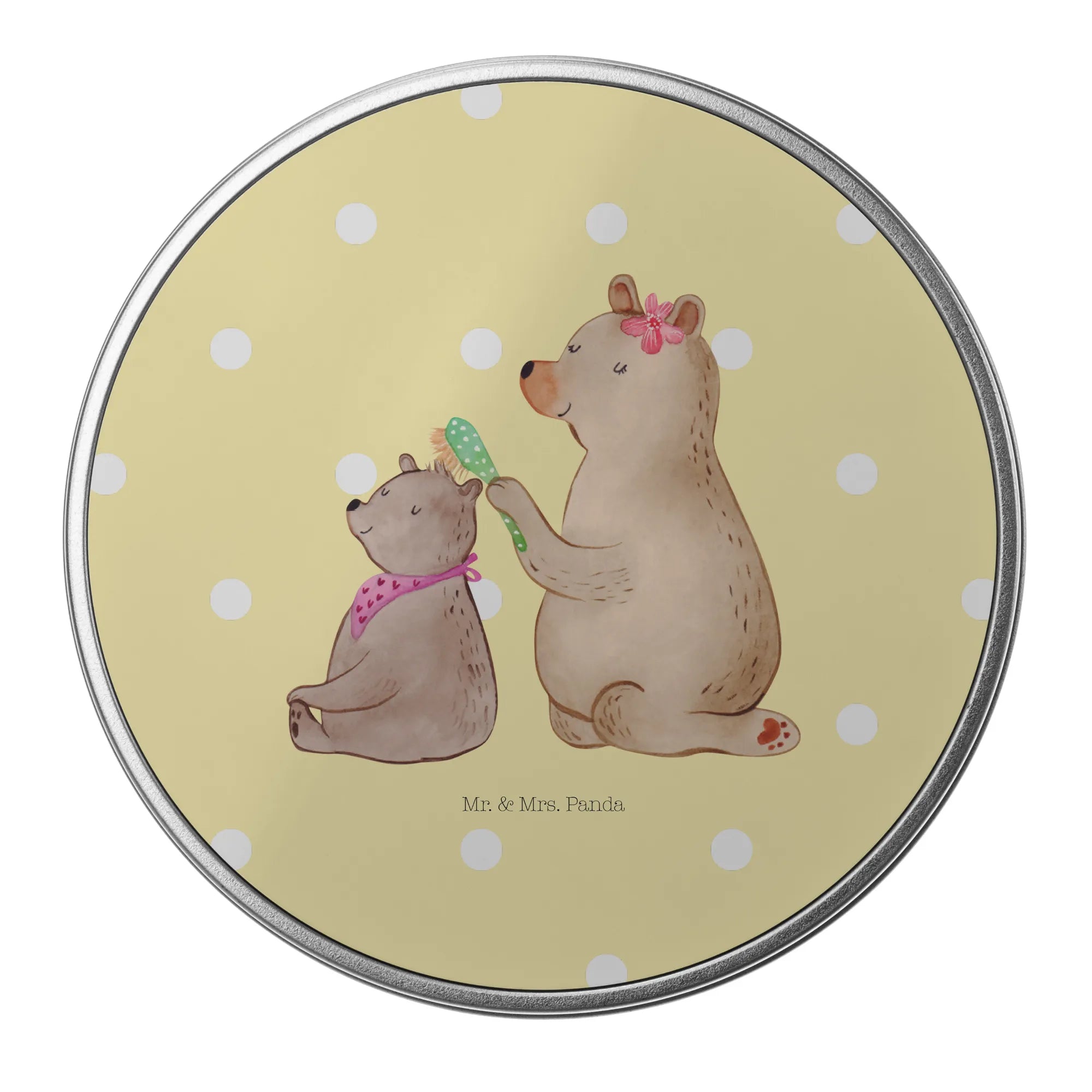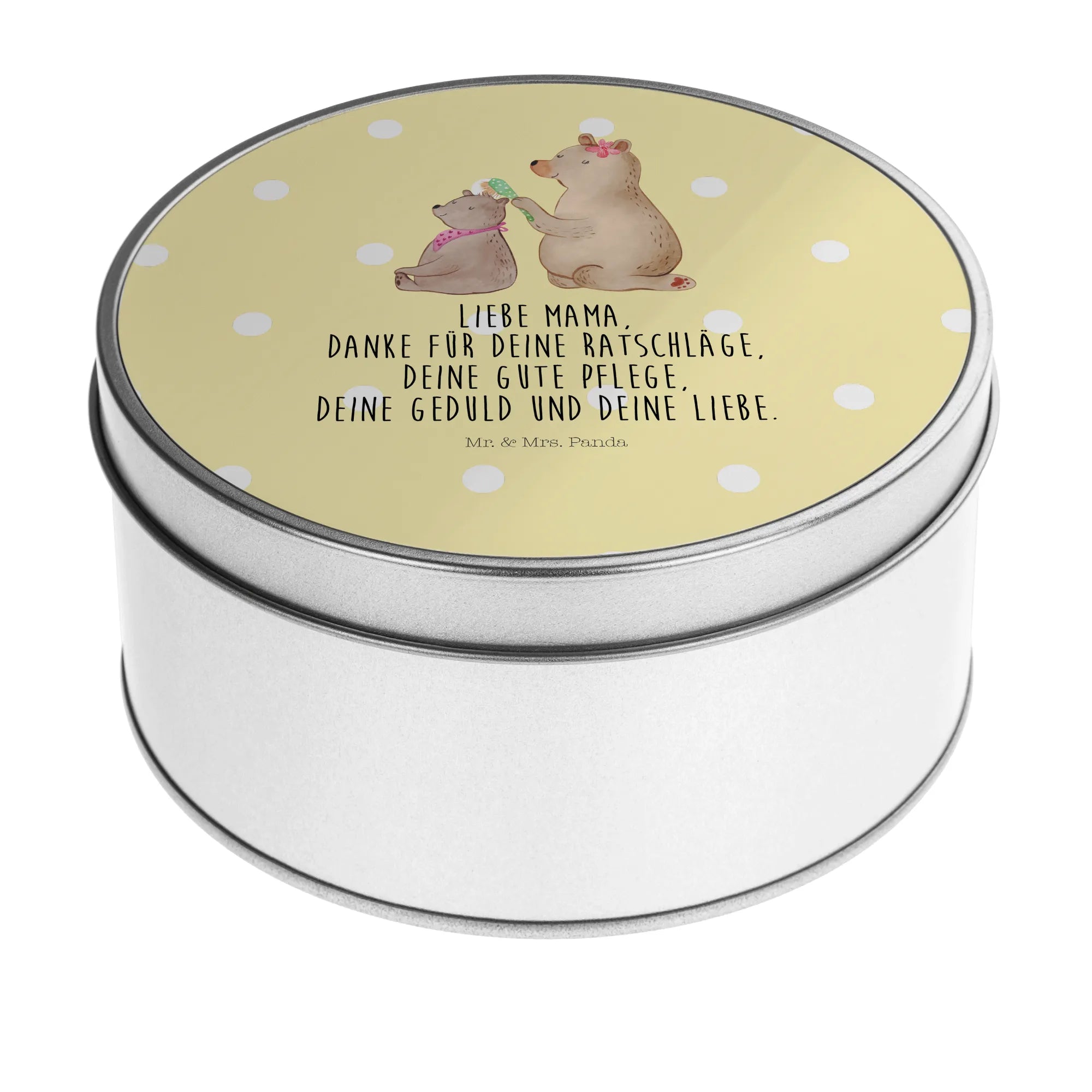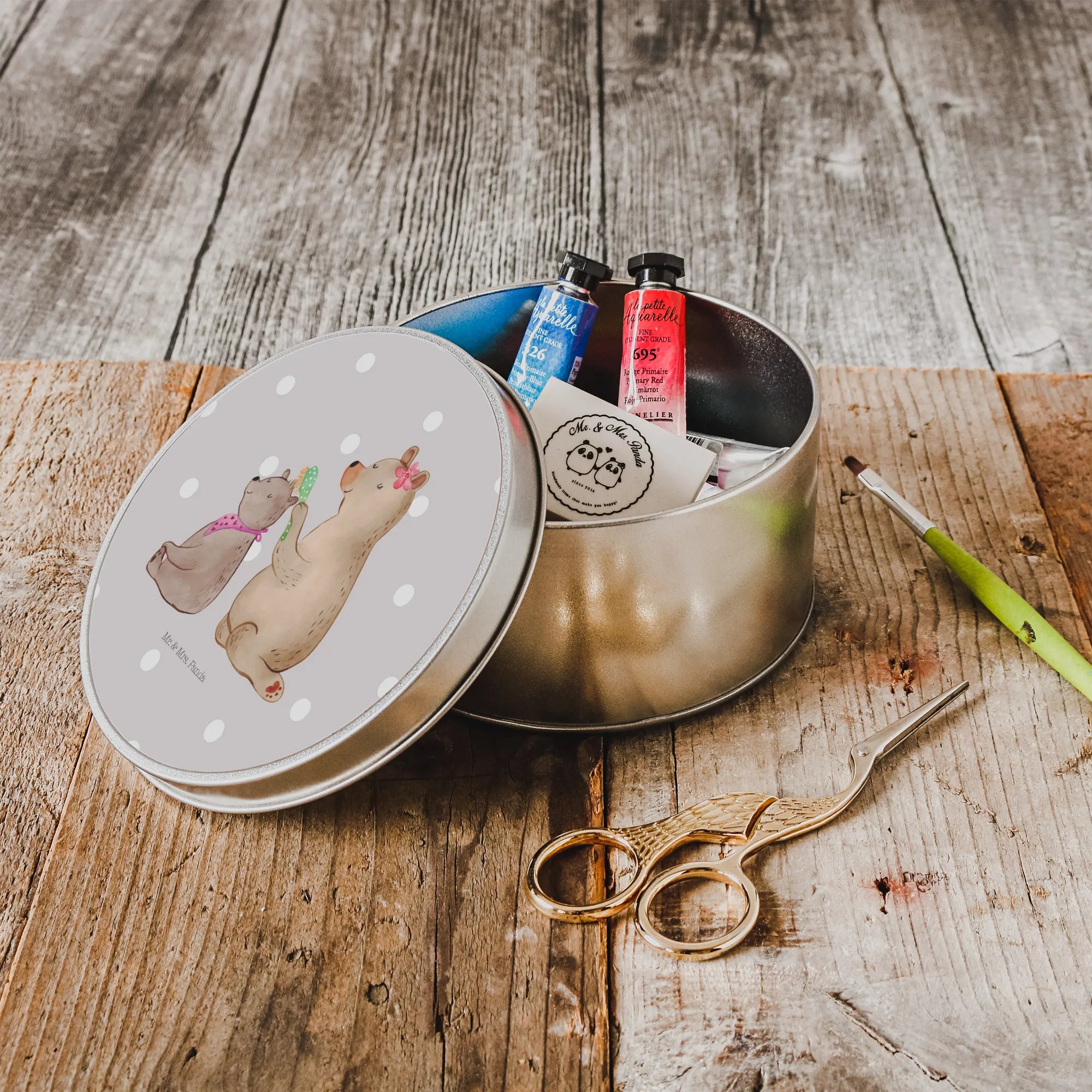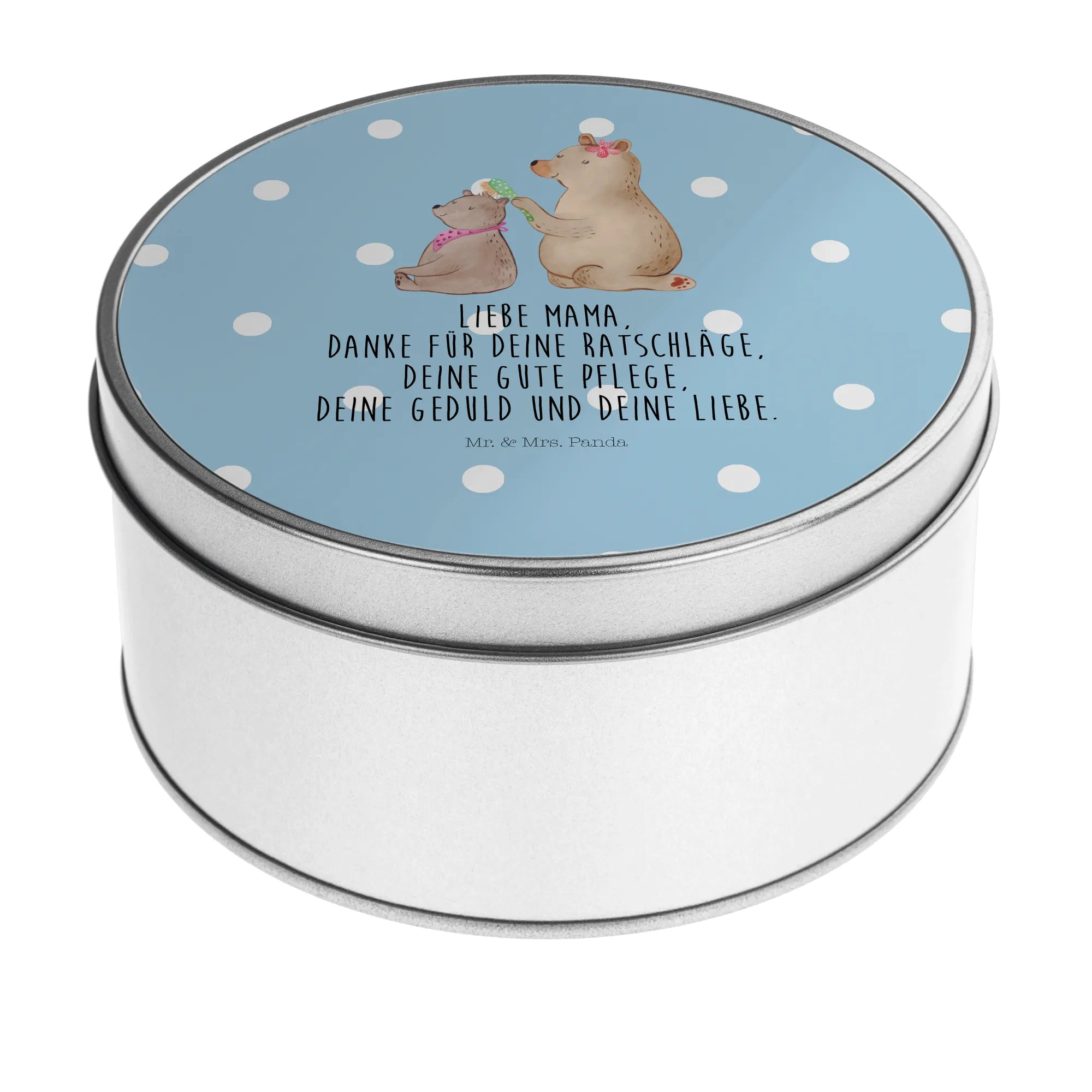 okrągła puszka z blachy niedźwiedź dziecko - z napisem - Pastelowy szary