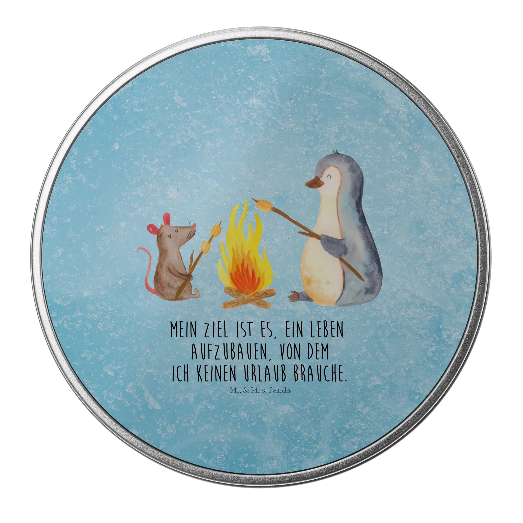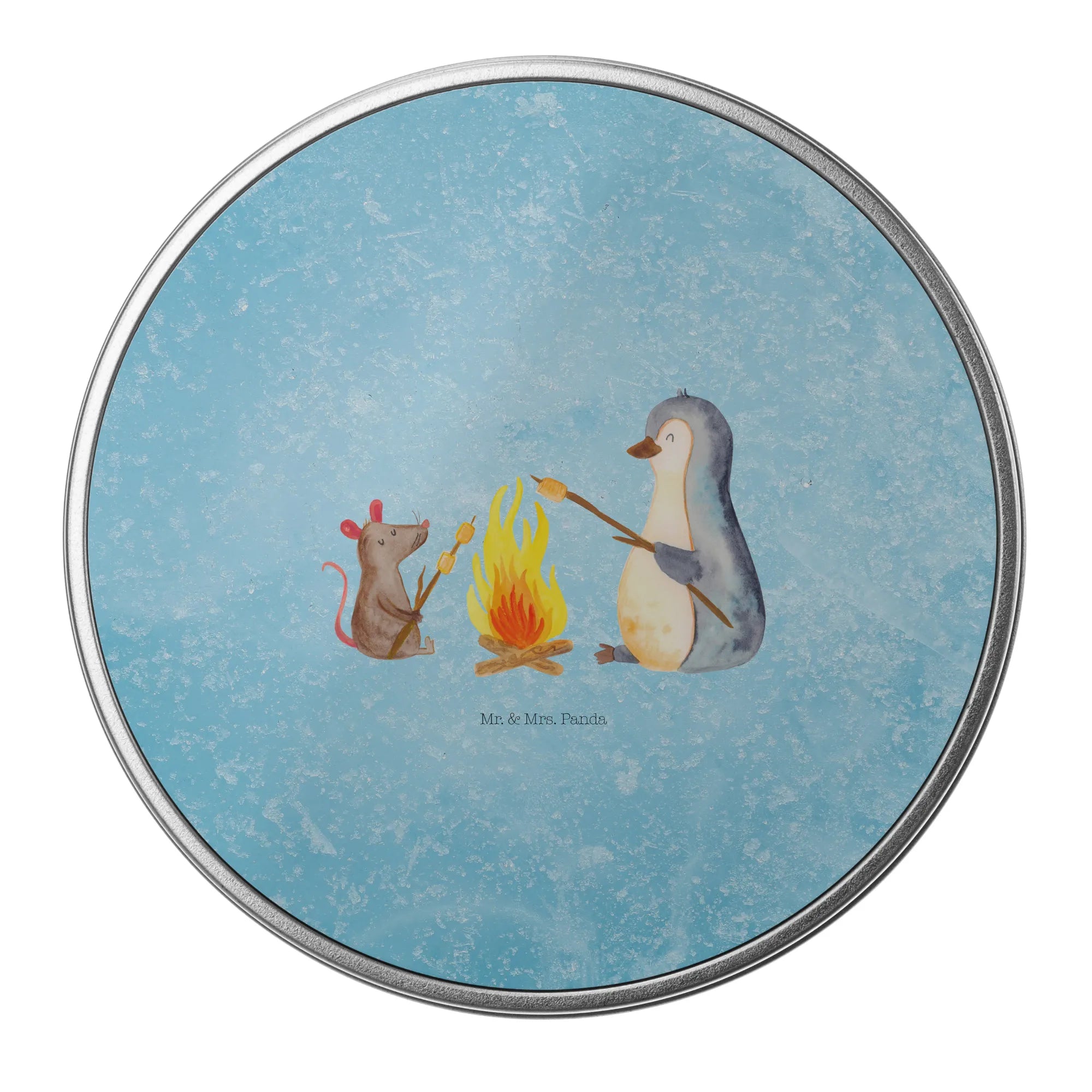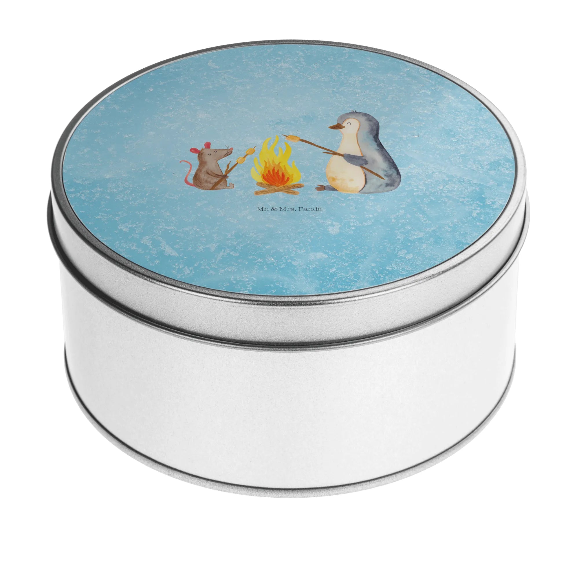 okrągła puszka z blachy pingwin ognisko - z napisem