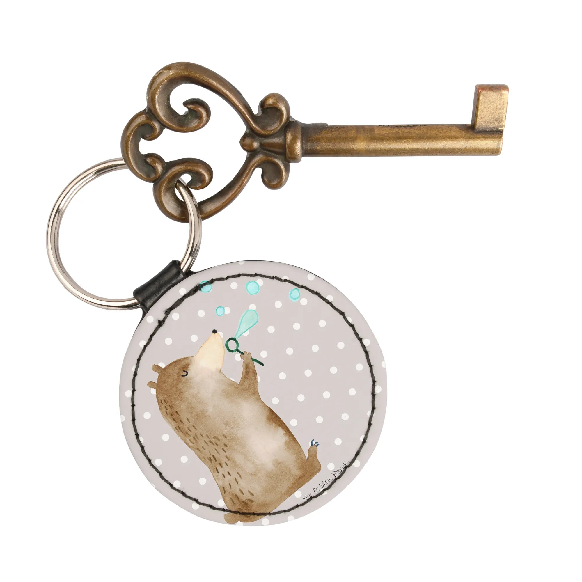 Okrągły brelok niedźwiedź bańki mydlane - biały