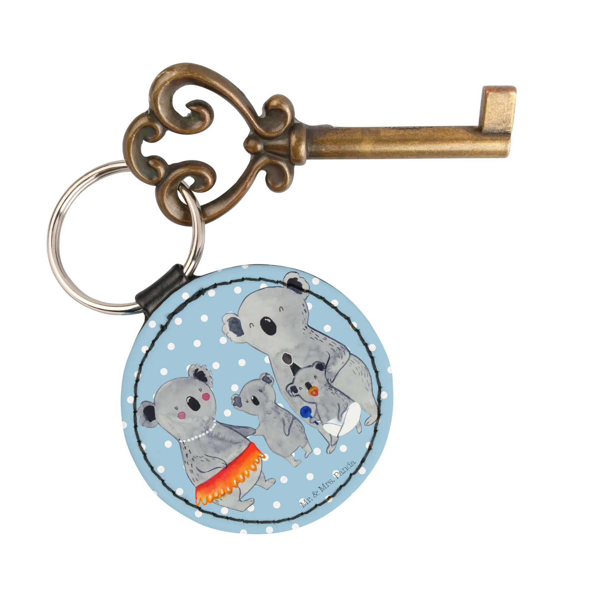 Okrągły brelok Rodzina koali - Pastelowy niebieski